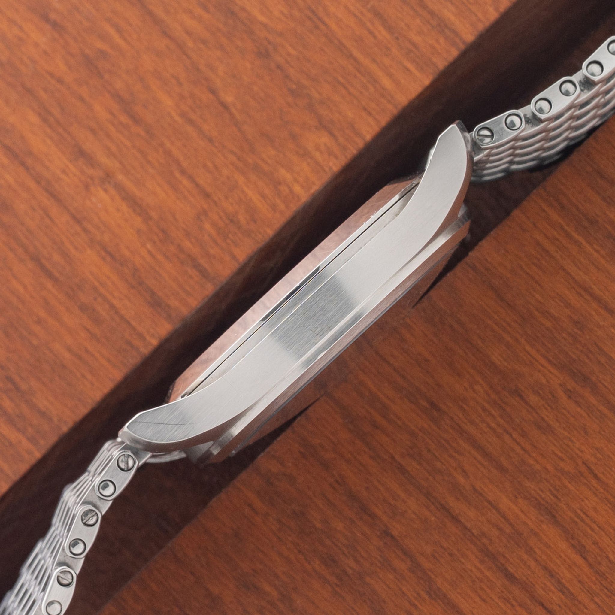 The Mark XII is arguably one of the most coveted iterations due to its highly wearable and discreet proportions. At 36mm the case fits perfectly for active wear in the field and this example comes with the desirable "beads of rice" bracelet which is extremely comfortable on the wrist. This piece also remains in fantastic neo-vintage condition with a mint dial and handset that have aged to an attractive "buttermilk" patina. To boot, the case also remains unpolished and this set comes delivered as a full set, making it a true collector's gem.
