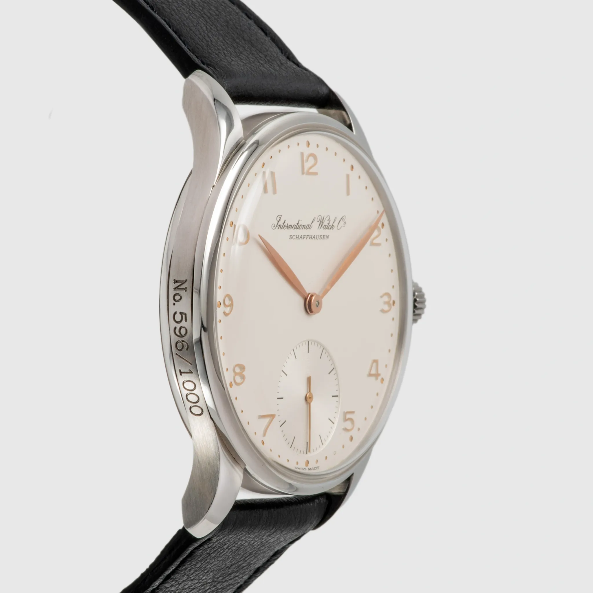 The ref. 5441 Portugieser was launched in 1993 in celebration of IWC's 125 year anniversary. It was made in a total of 1750 pieces, of which 1000 were stainless steel, 500 rose gold and 250 in platinum. The 42mm case wears very contemporary and bears the iconic Portugieser case design.