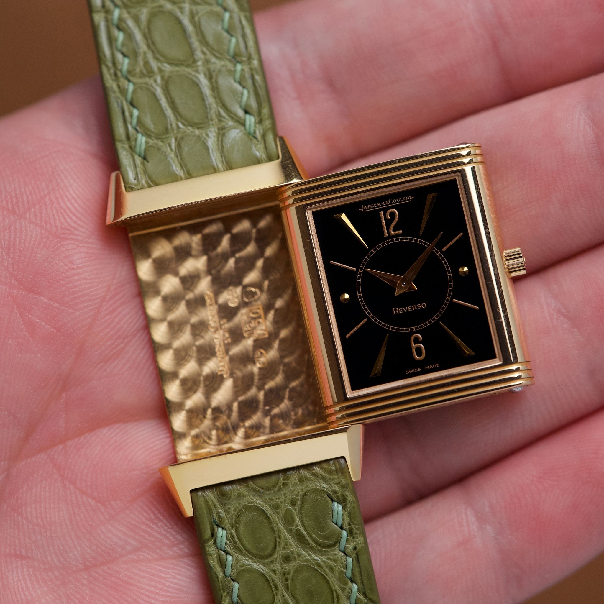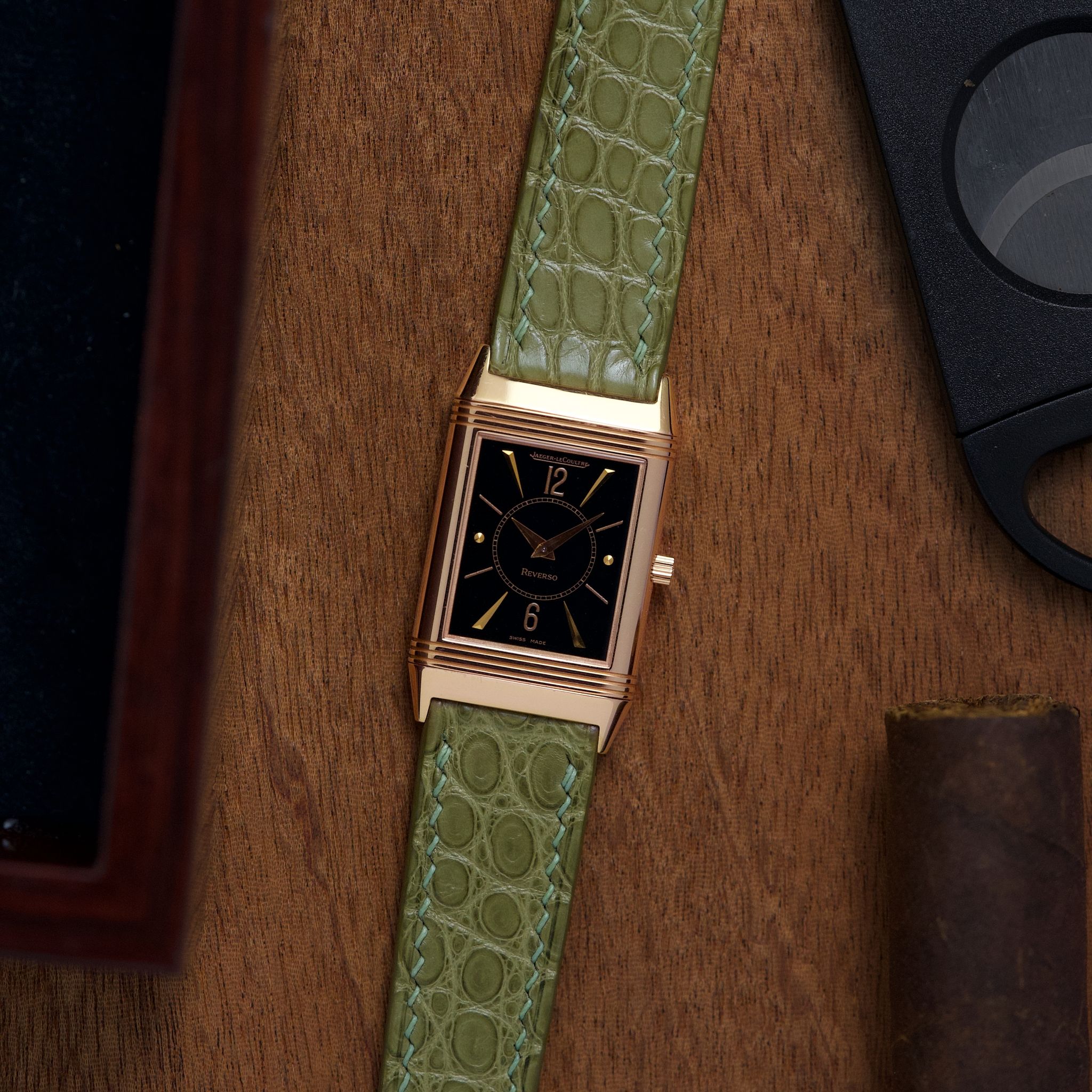 Case: The 23 by 38.5mm case is 18k rose gold. The Classique medium case size is perfect. The watch houses a manual movement which keeps it thin even with the Reverso function. The rose gold is a light tone and not as aggressive as rose gold seen from similar brands.