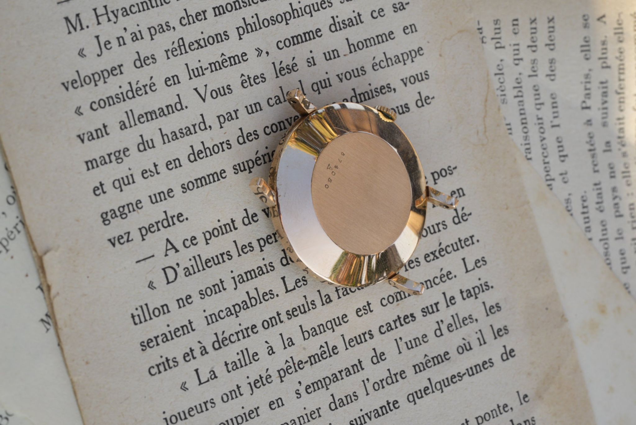 Fitted with a leather strap and signed gilt metal pin buckle.