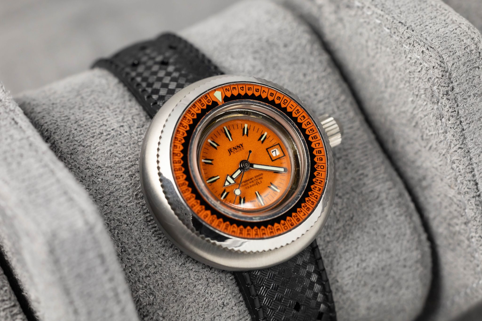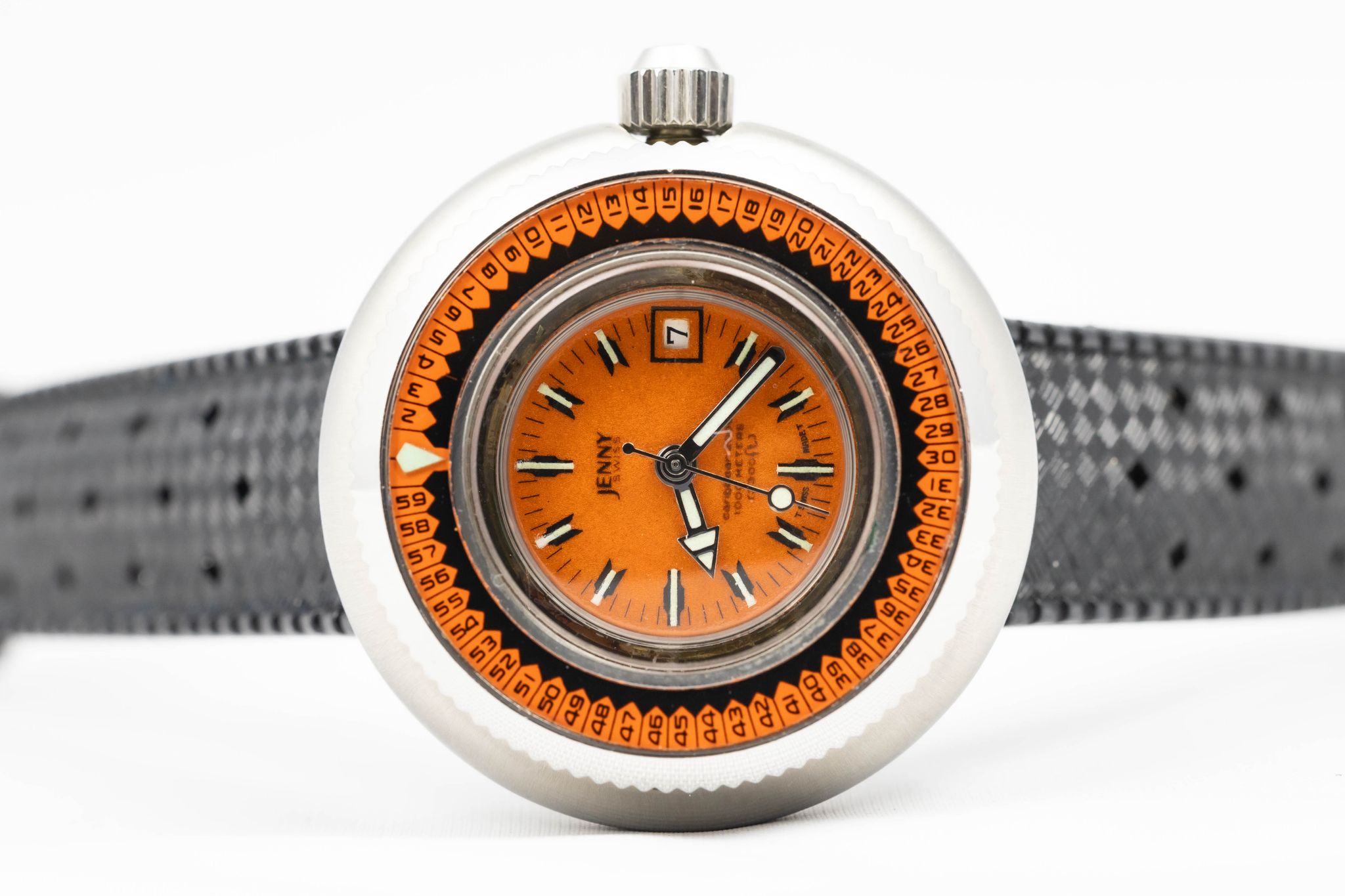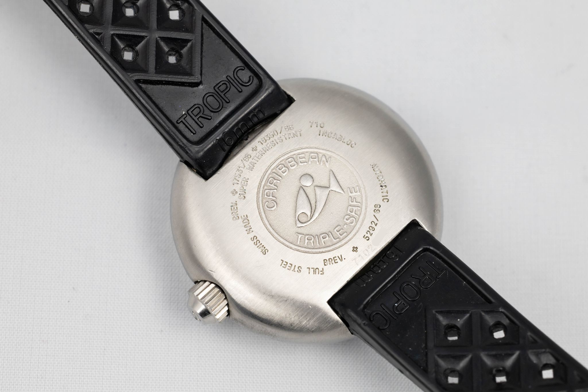 A rare and sought-after piece, this Jenny Caribbean stands out, especially in the versatile and wearable 36mm size. Known as one of the first commercially available dive watches rated for 1,000 meters of water resistance, the Caribbean holds a special place in horological history.
