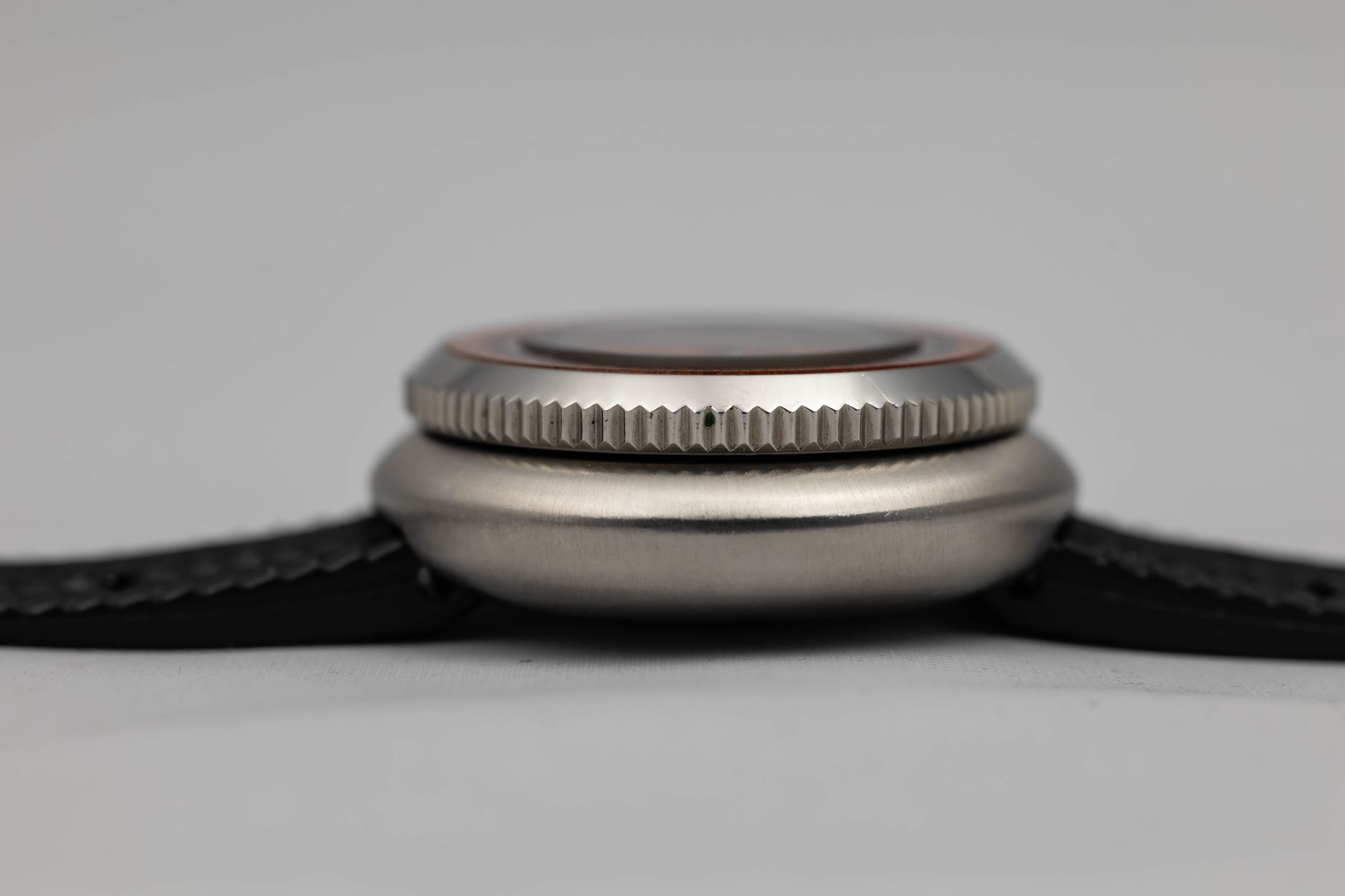 This example is in impressive vintage condition, with a well-preserved case and dial. The tritium lume markers and hands remain intact The Bakelite bezel is also in very good condition, complementing the overall vintage aesthetic. Adding to its authenticity, the watch is fitted with what appears to be its original Tropic rubber strap.