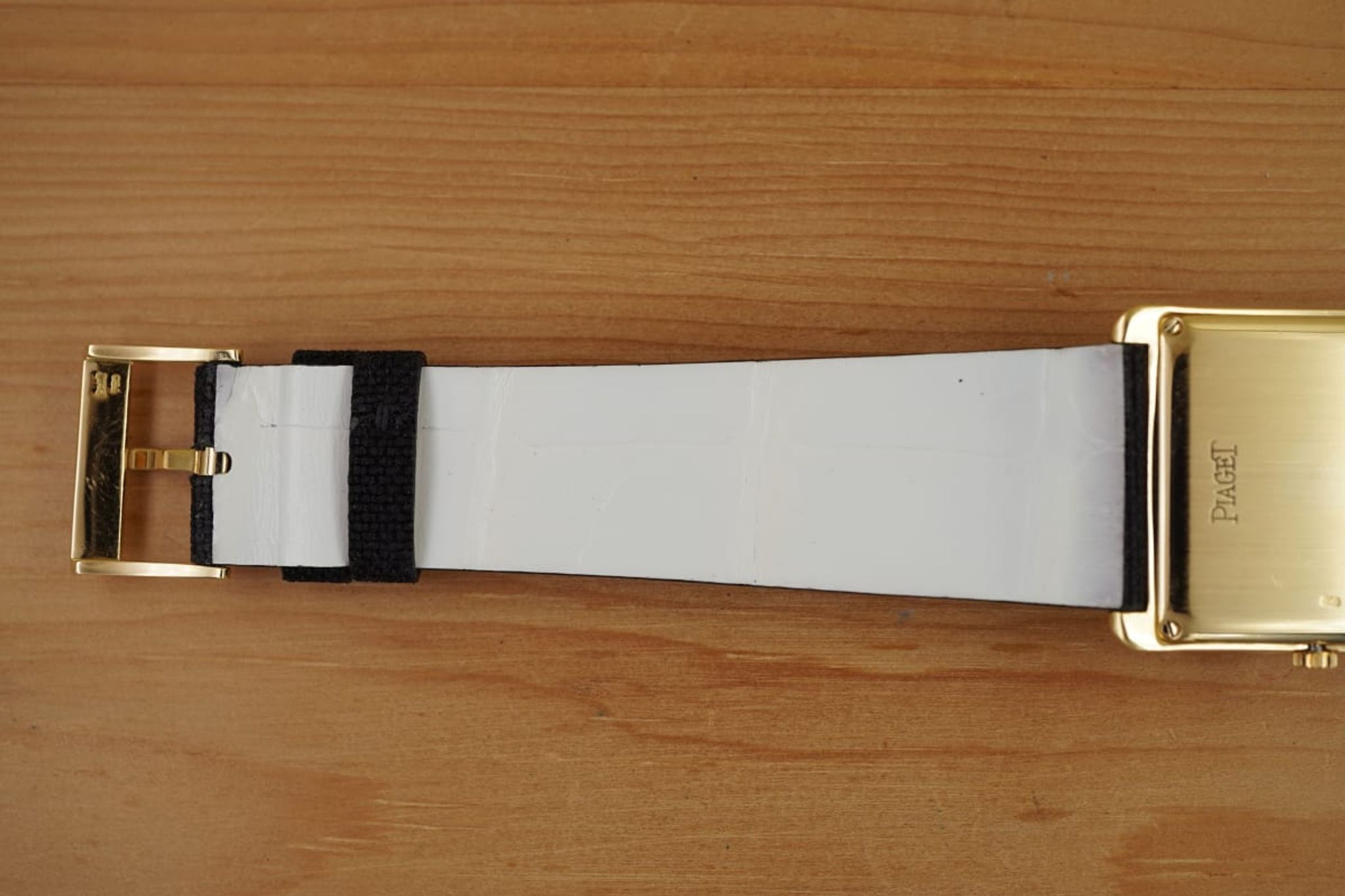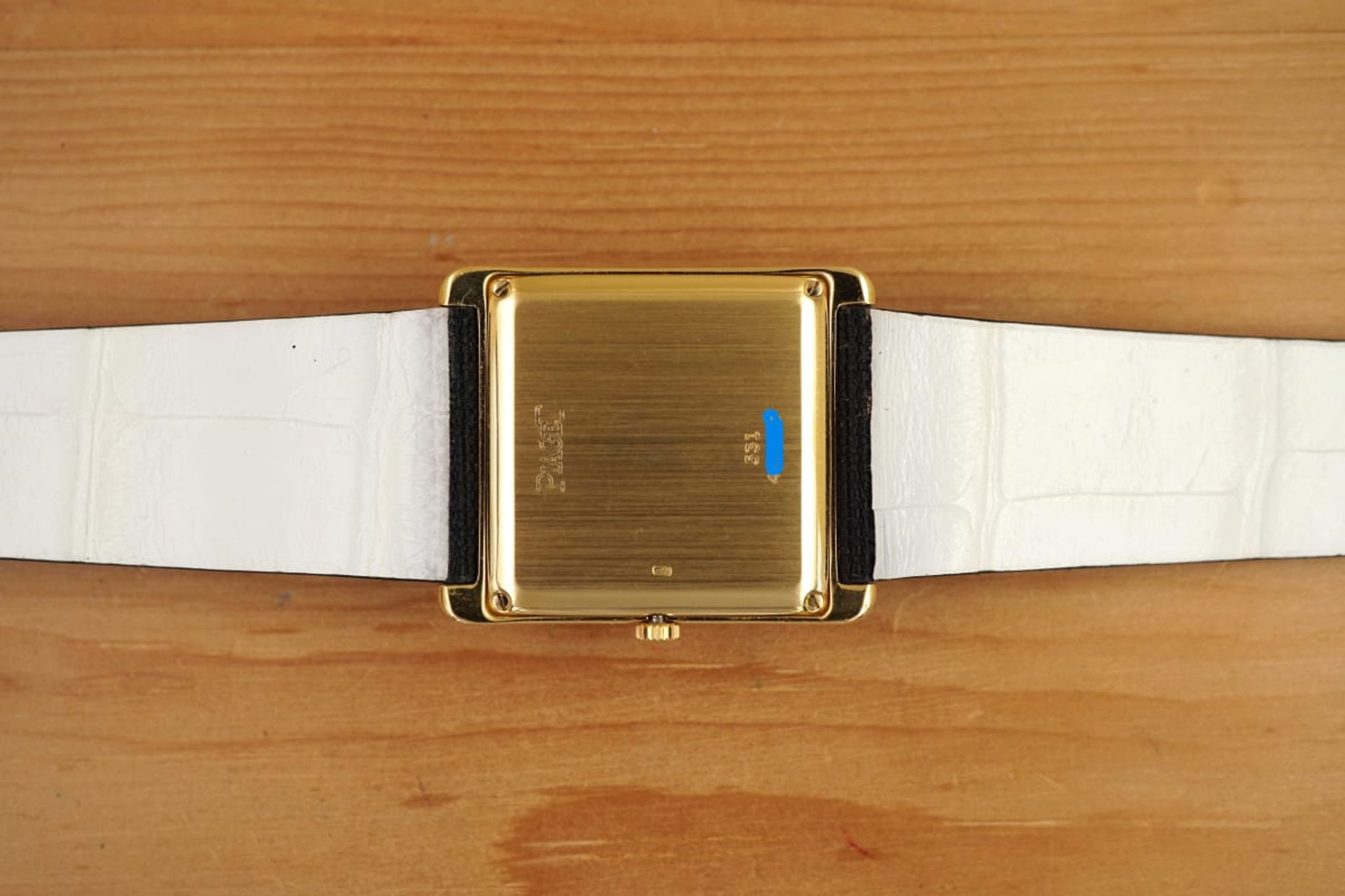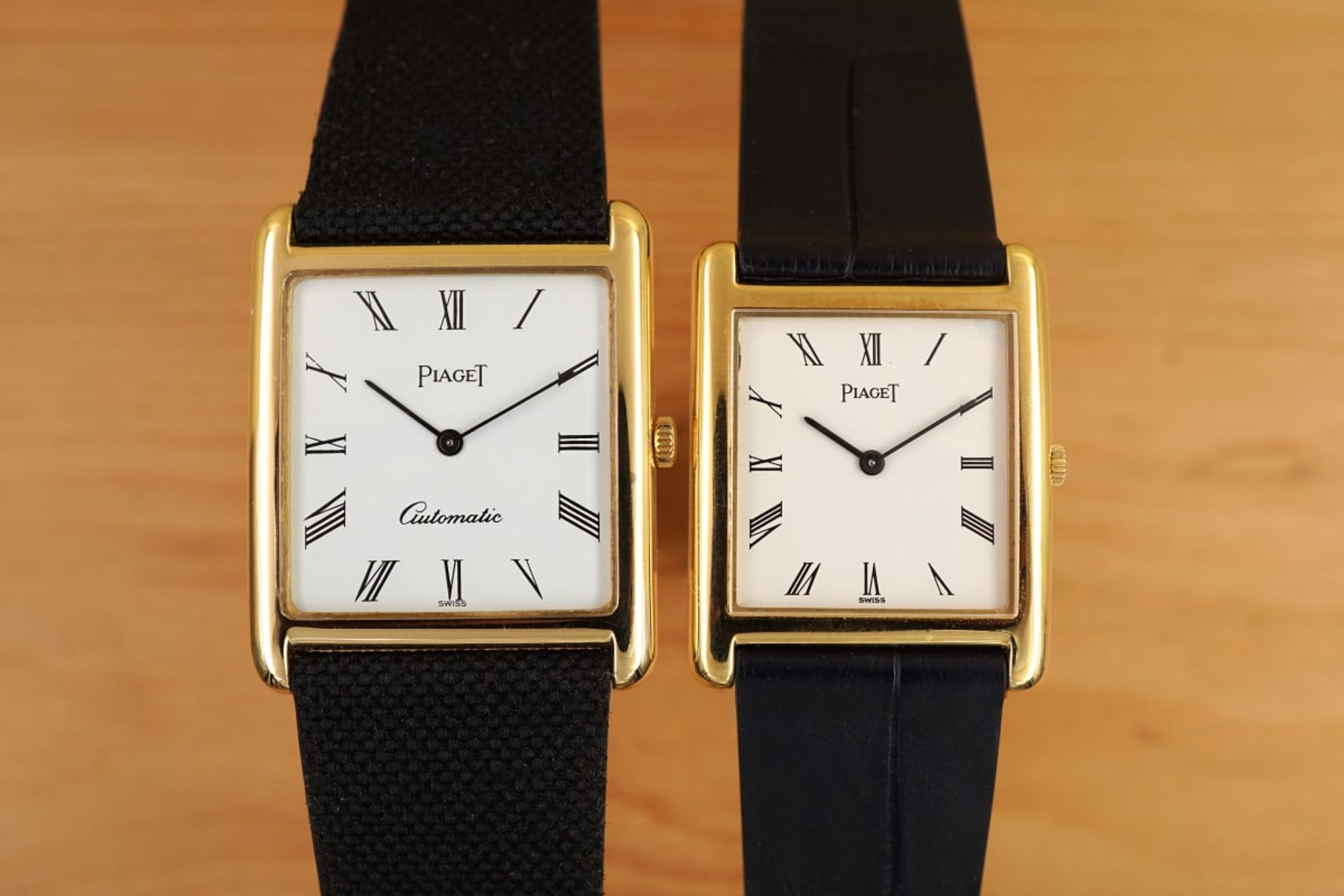 We all know the Cartier Jumbo Tank with the strange bubble-back to cover the rotor of the ETA-automatic movement. A bit quirky, sure but it has its merits, because of being significantly bigger than the Tank Normale. Now, Piaget used the worldrecord-thin cal25P to make exactly 123 pieces of the Curved Jumbo Tank with exact same dimensions -- just thinner & curved -- between 1984 and 1987.