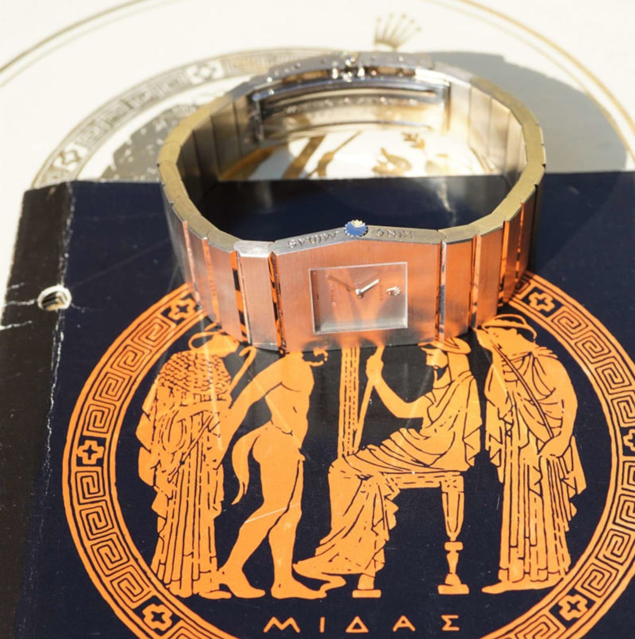 FullSet Rolex King Midas (Whitegold) sold Sep-1971: Yes, you heard that box and papers are not so important. And this might be true with your commodity-Rolex. But its different with a Rolex Midas. Of course it is the relevant 1st series, when Midas was a standalone-series in the Rolex offerings next to Oyster or Cellini: Consisting of ref9630 King Midas (weight: 200g), ref9903 Princess Midas (weight: 200g) and ref9904 Queen Midas (weight: 150g). Just in 1973 it was integrated into Cellini and then not only the weight was reduced significantly but also the quality decayed over the years.