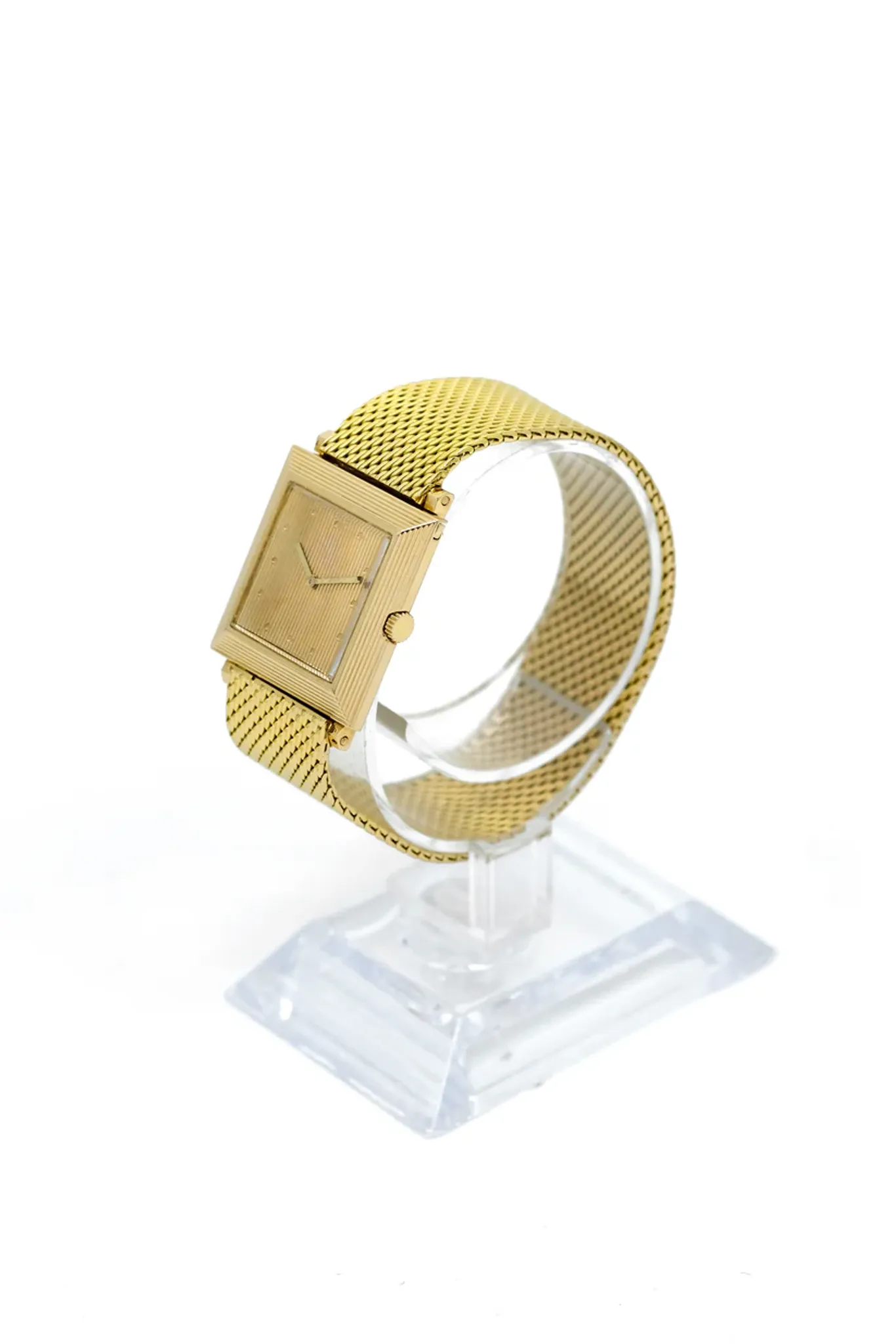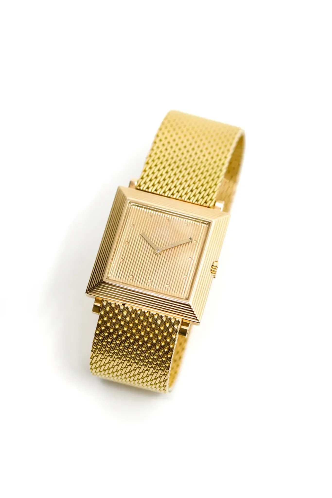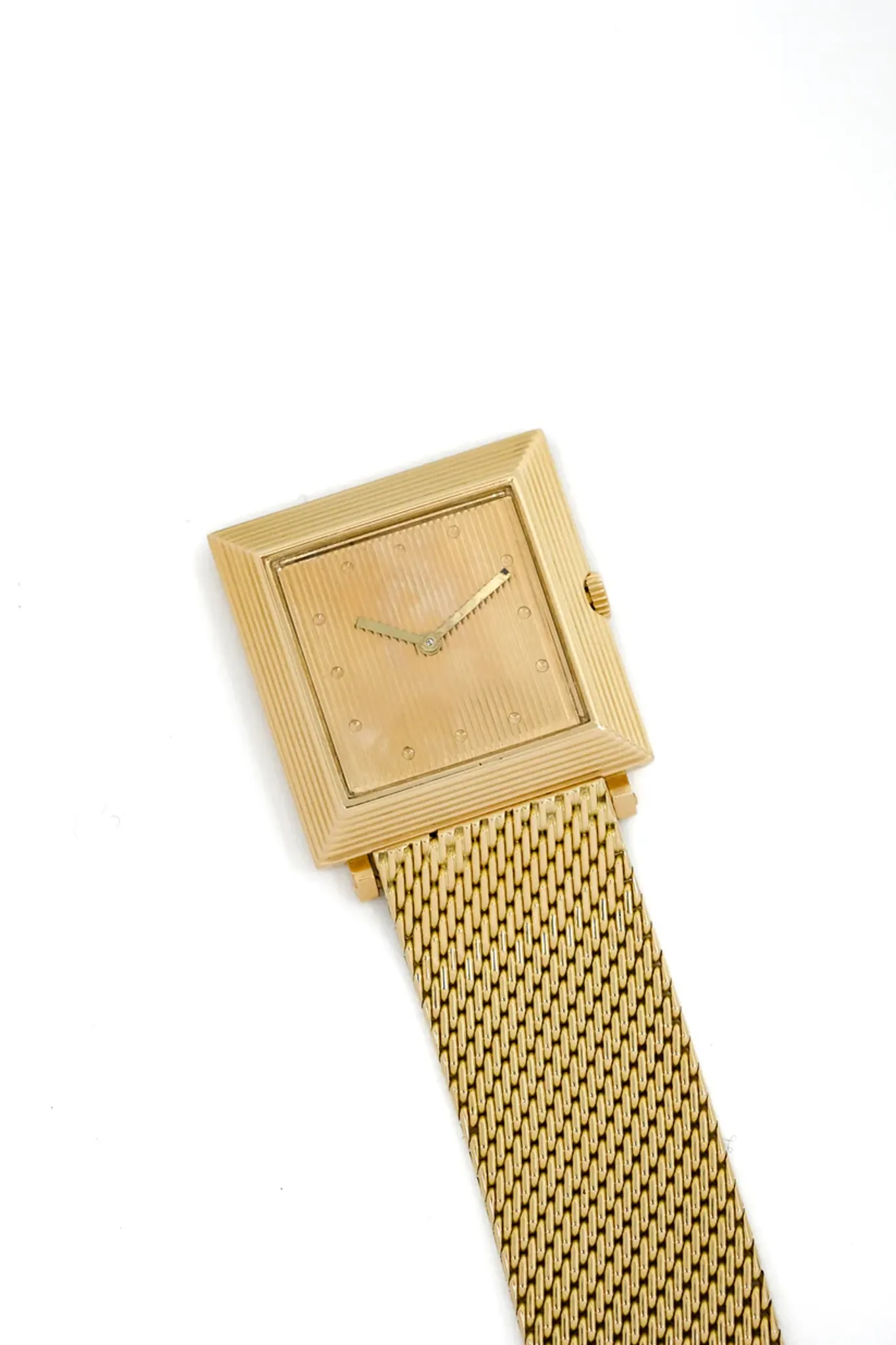 The fully articulated "Milanese mesh" bracelet, in yellow gold, continues the design of this Boucheron Carrée. A seamless custom-made bracelet that completes the creation of this watch as a jewel of great refinement. This large Carrée will suit both women and men looking for an original and precious watch.