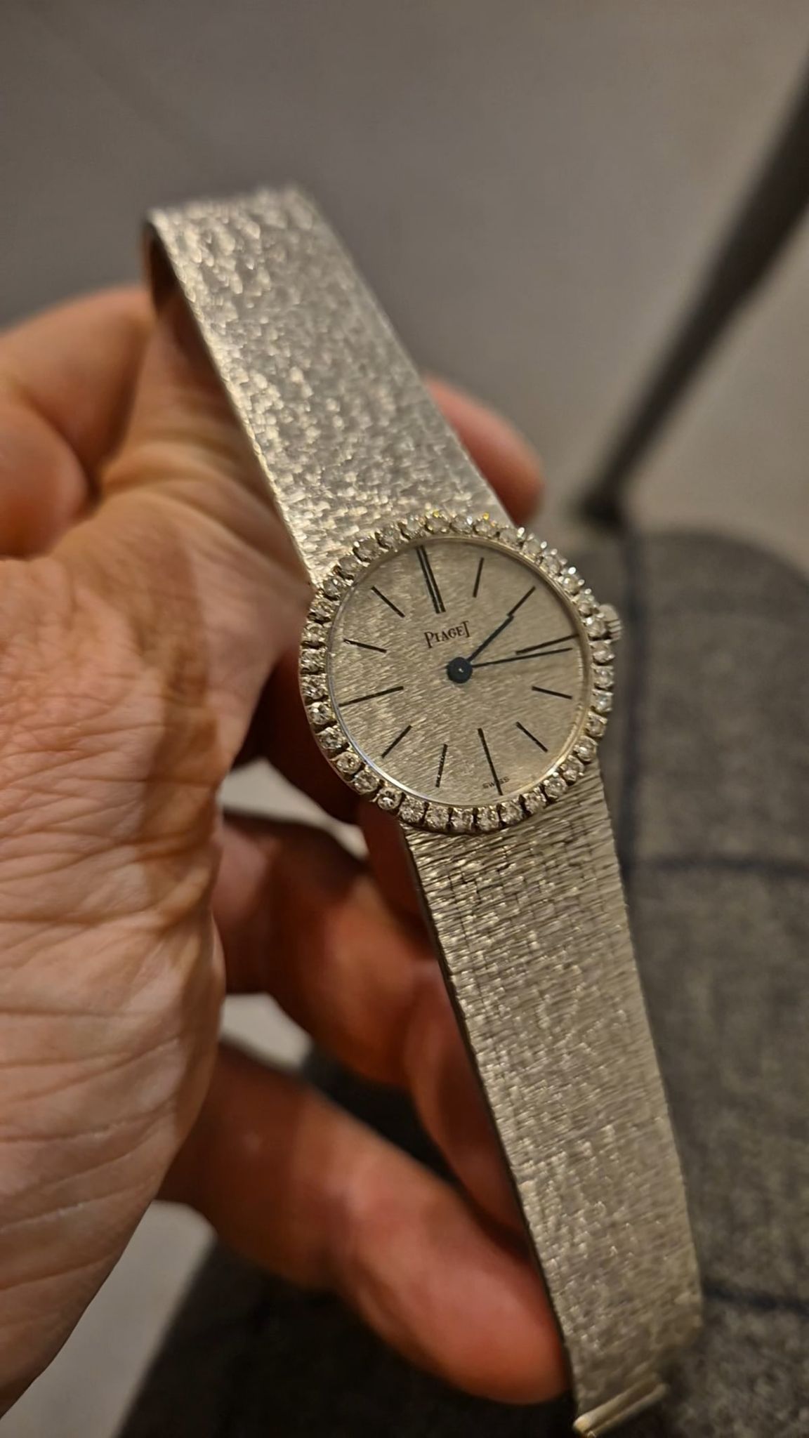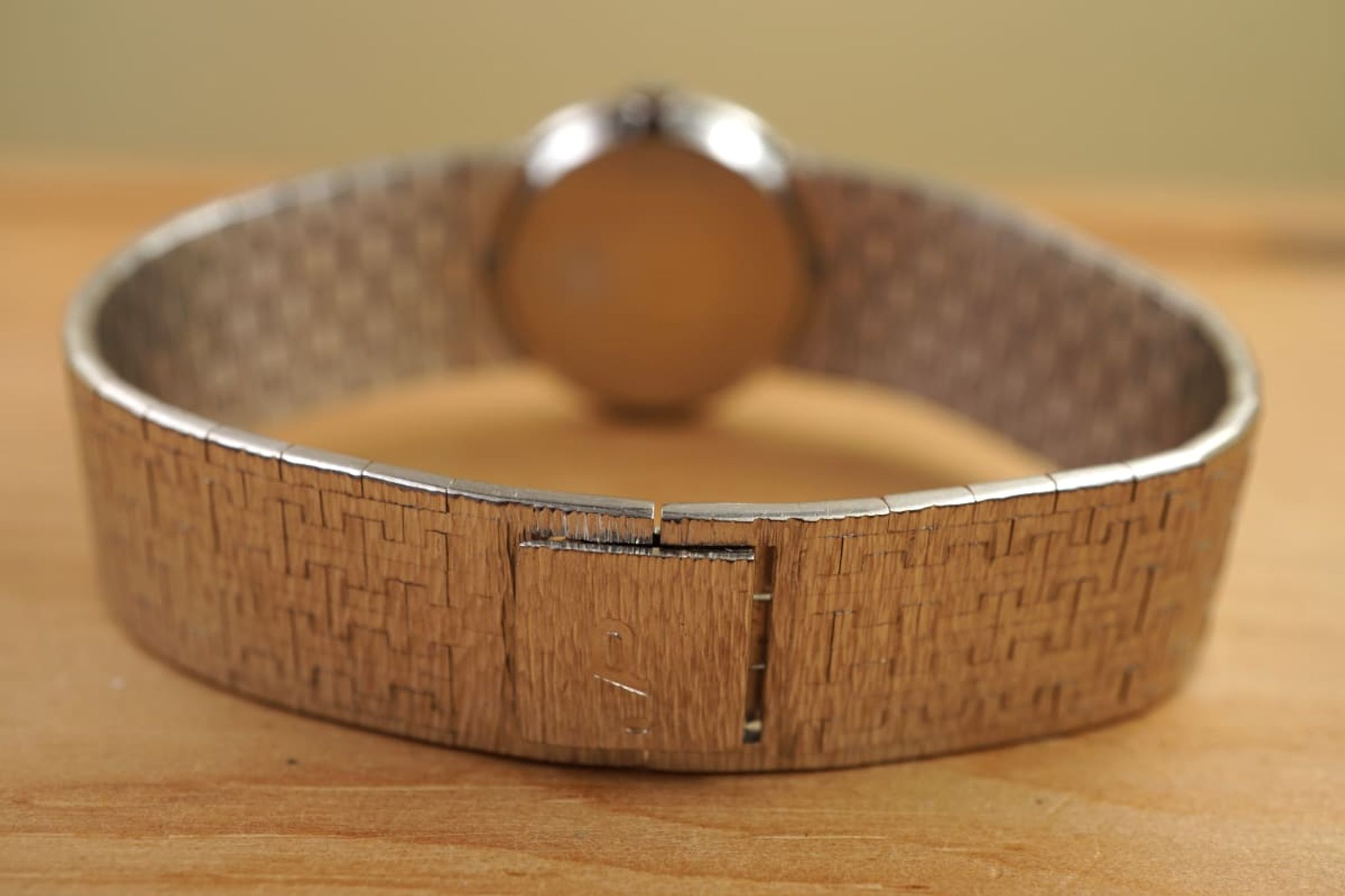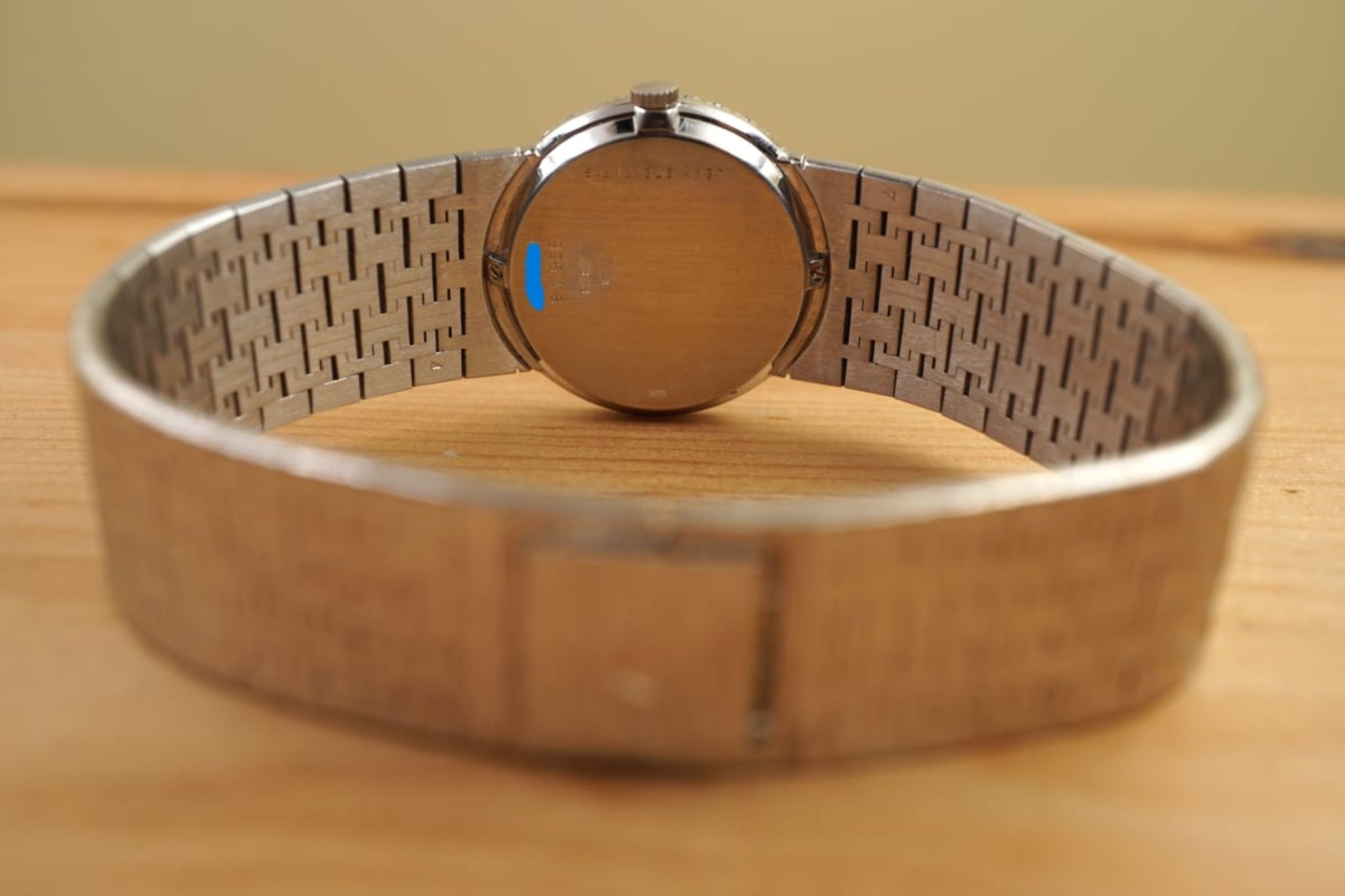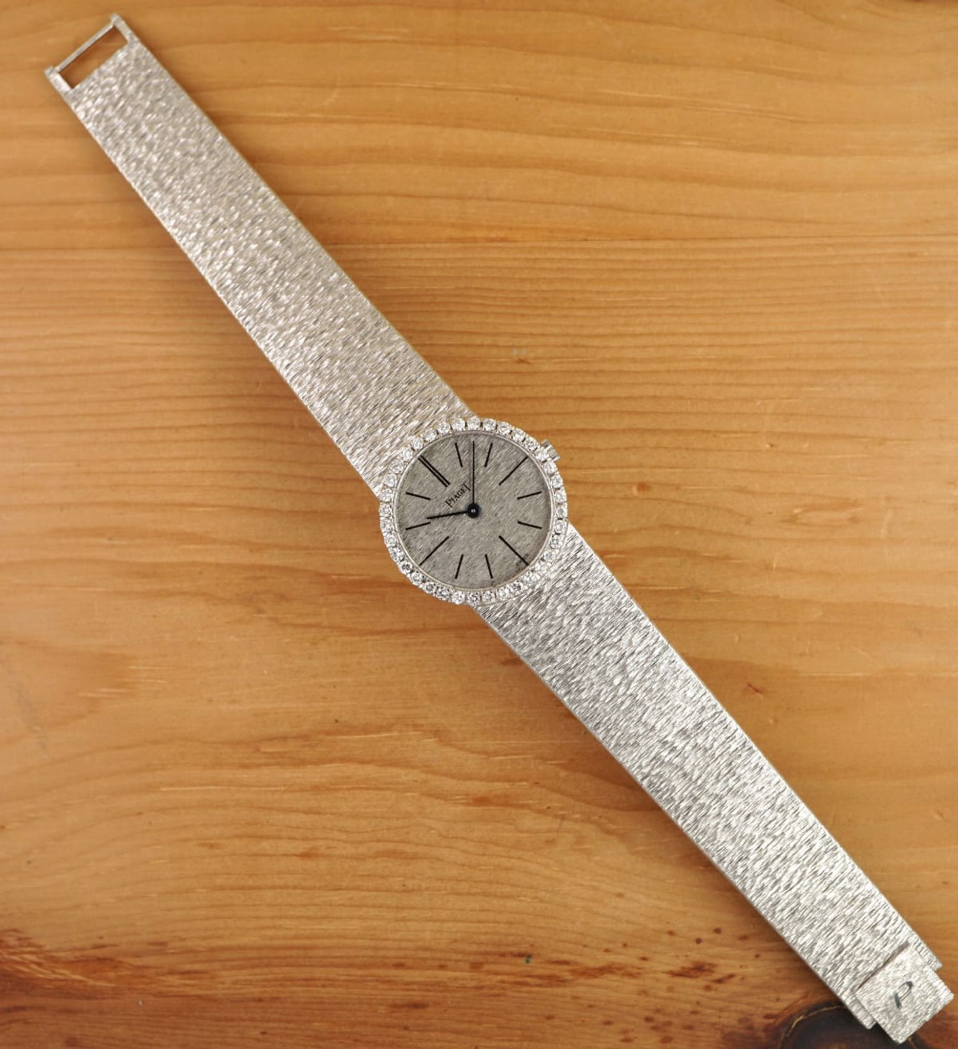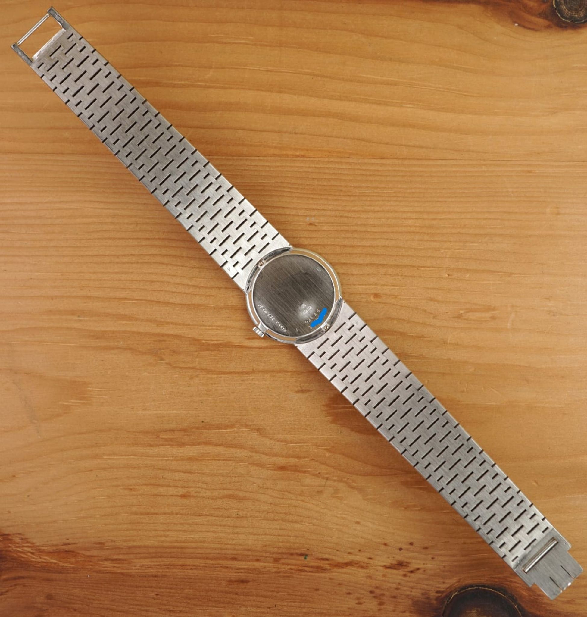 Amazing condition: Made in 1969 according to our tables and research and still without significant signs of use or time in excellent condition with a long and probably uncut bracelet: the monochrome classic Piaget Ladies-Limelight sold by the jeweler Jean Ete, Paris as indicated by the rare doublesignature on the back.
