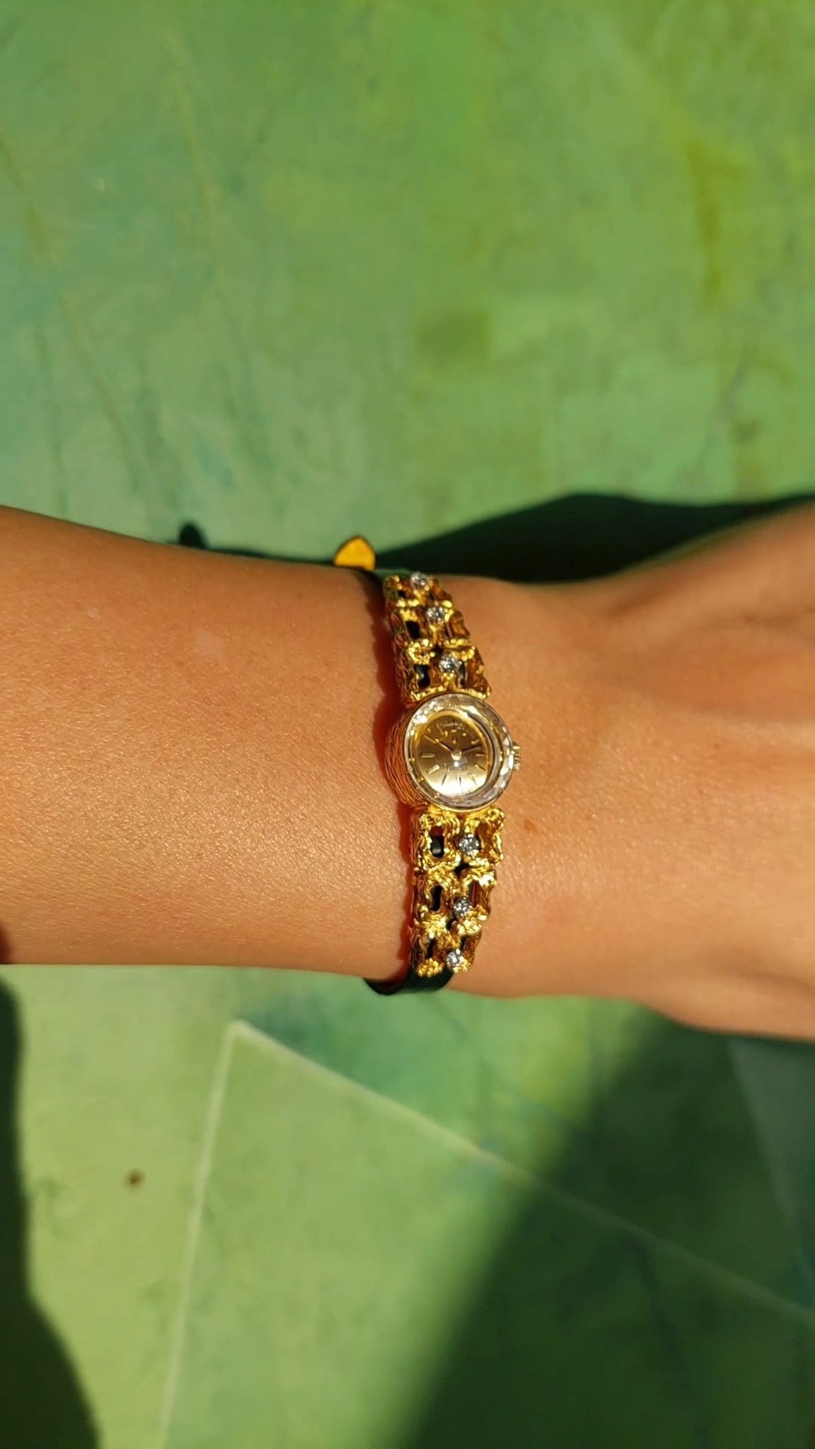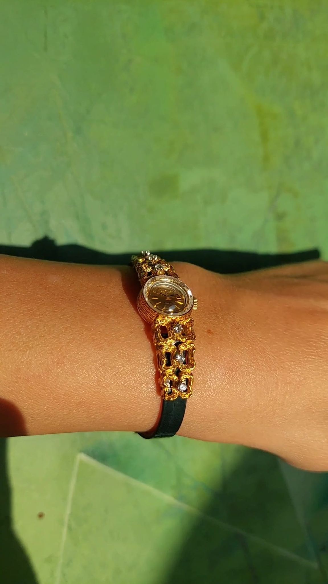 We are proud to offer Rare Naturalistic Gilbert Albert Ladies-Omega Maille d'Or.