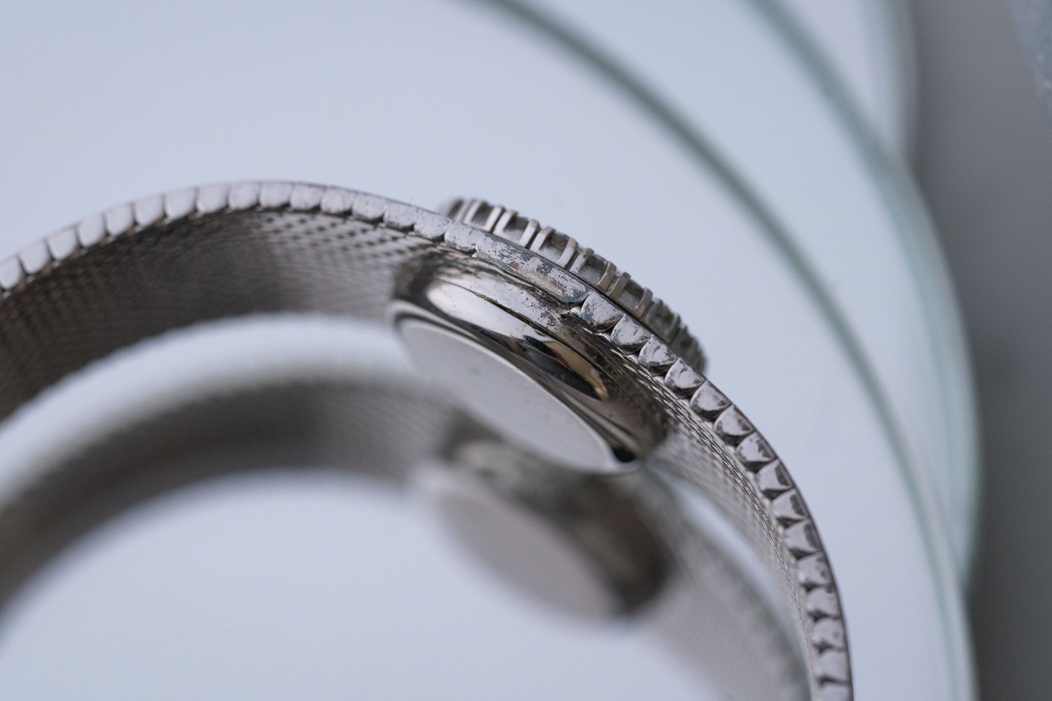 Case: 17.7 mm 18 karat solid white gold case in attractive condition showing honest signs of wear as expected with a vintage watch
