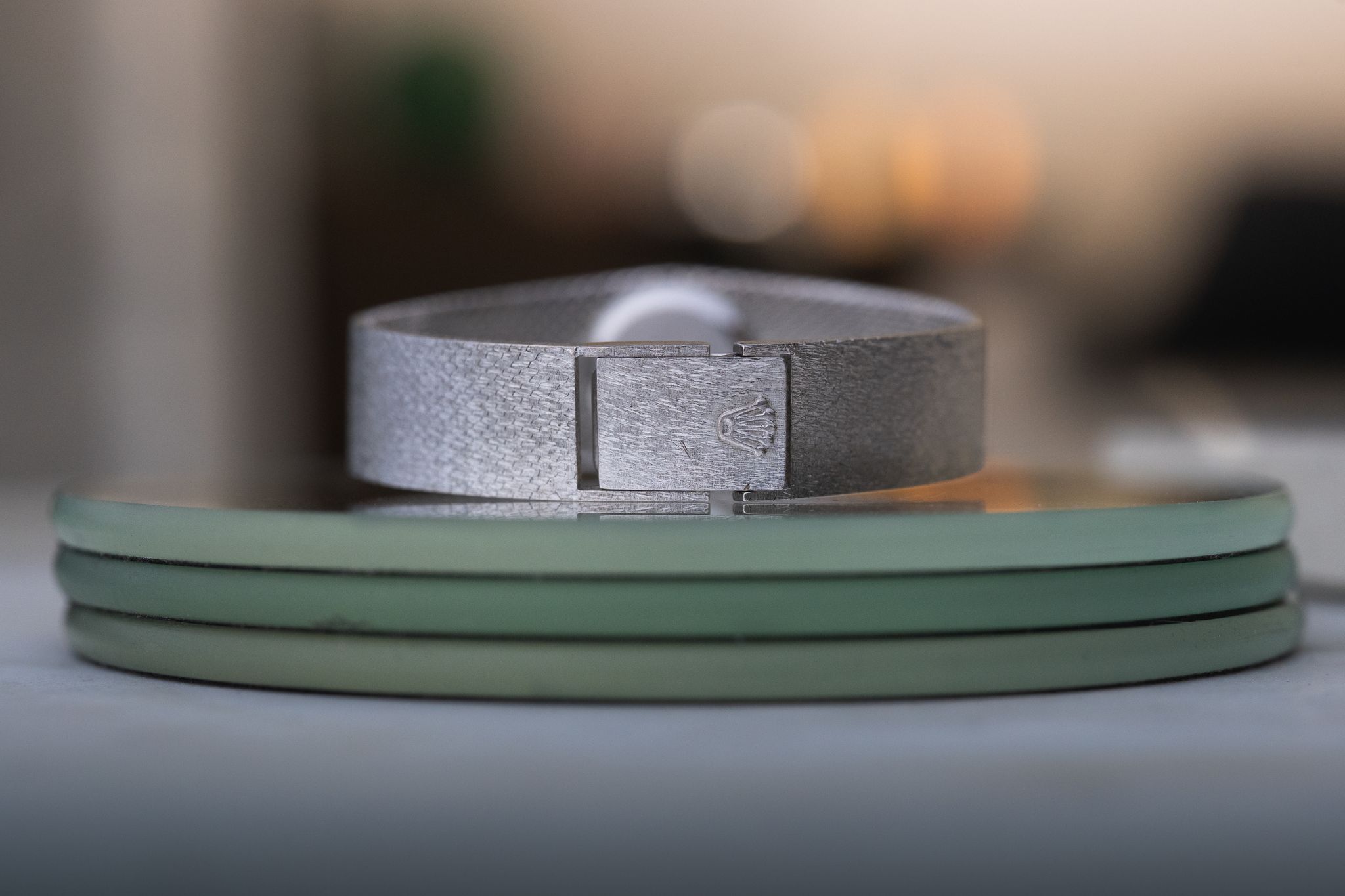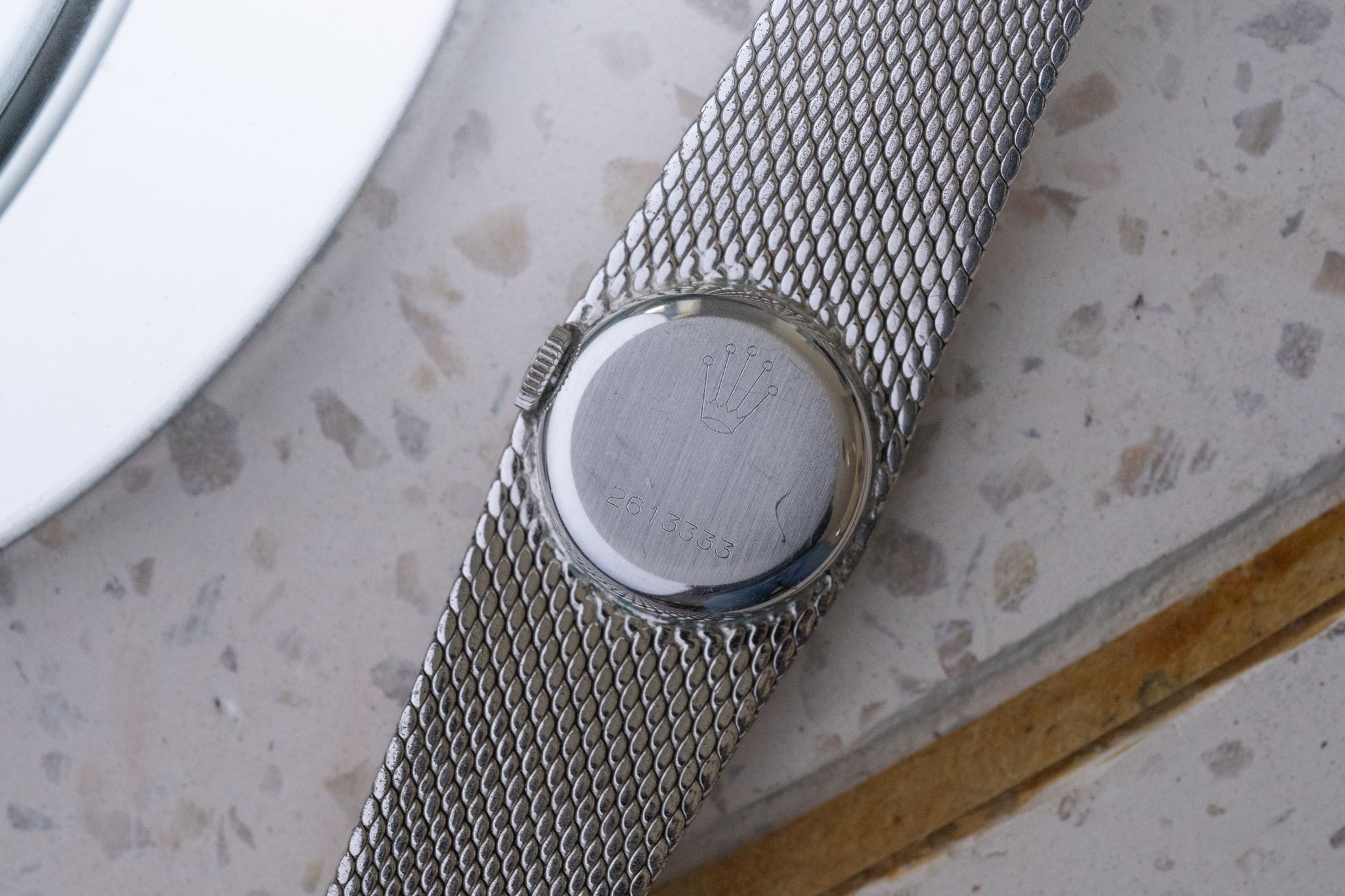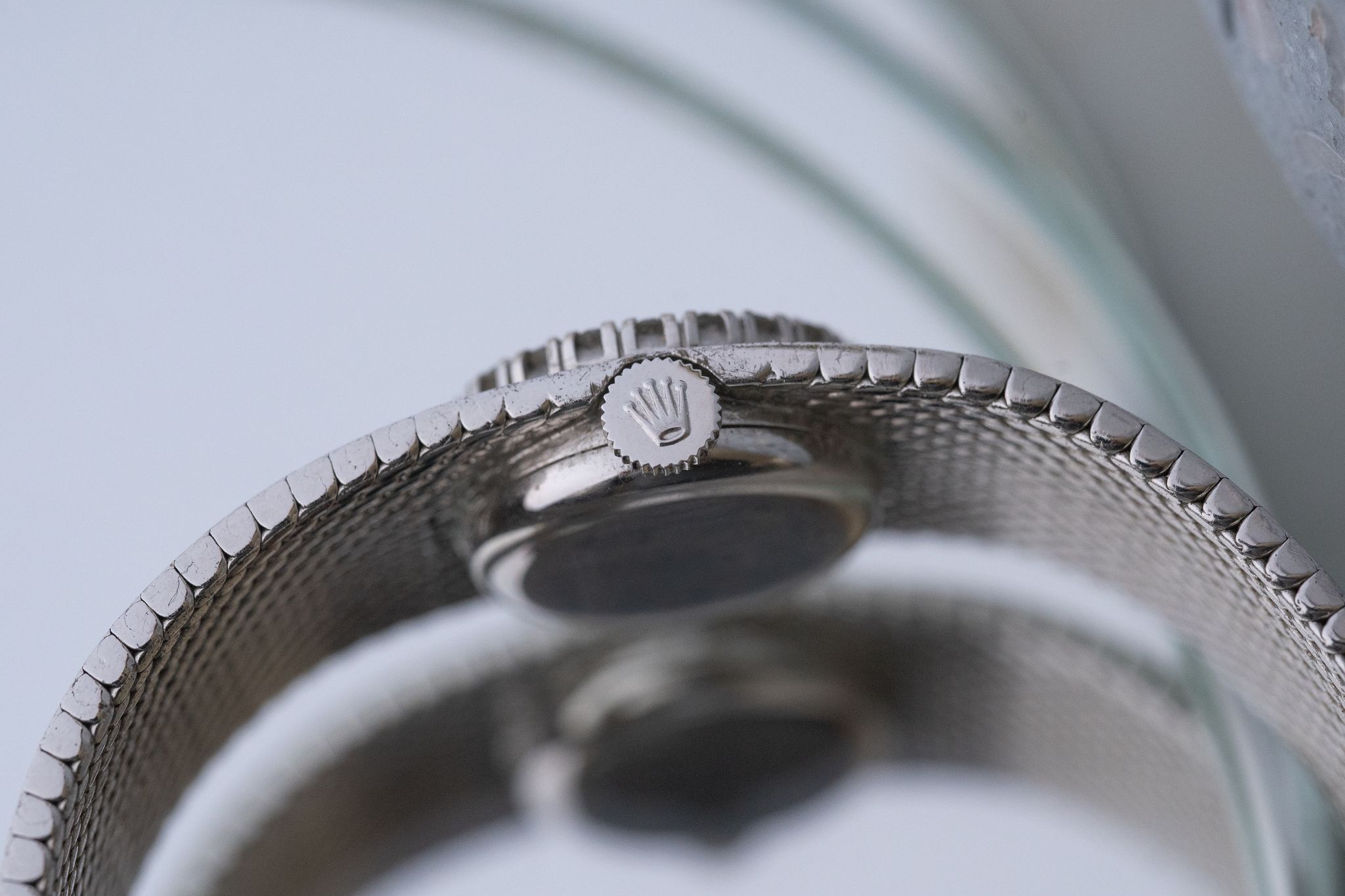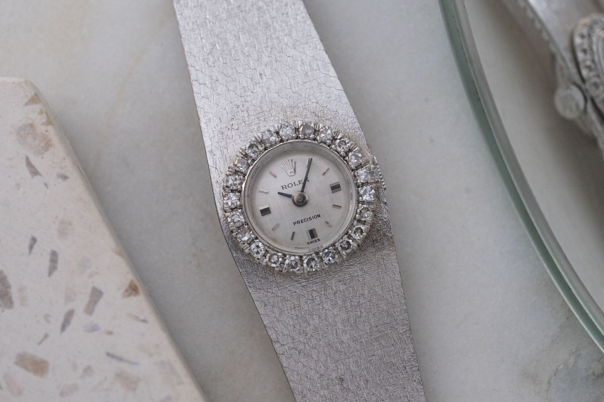 Bracelet/Strap: Vintage Rolex bracelet made of solid 18k white gold. The bracelet is in attractive vintage condition with no kinks or damage. The buckle is correctly hallmarked with the Rolex logo. Watch will fit a 5.4 inch wrist, please measure wrist size prior to purchase