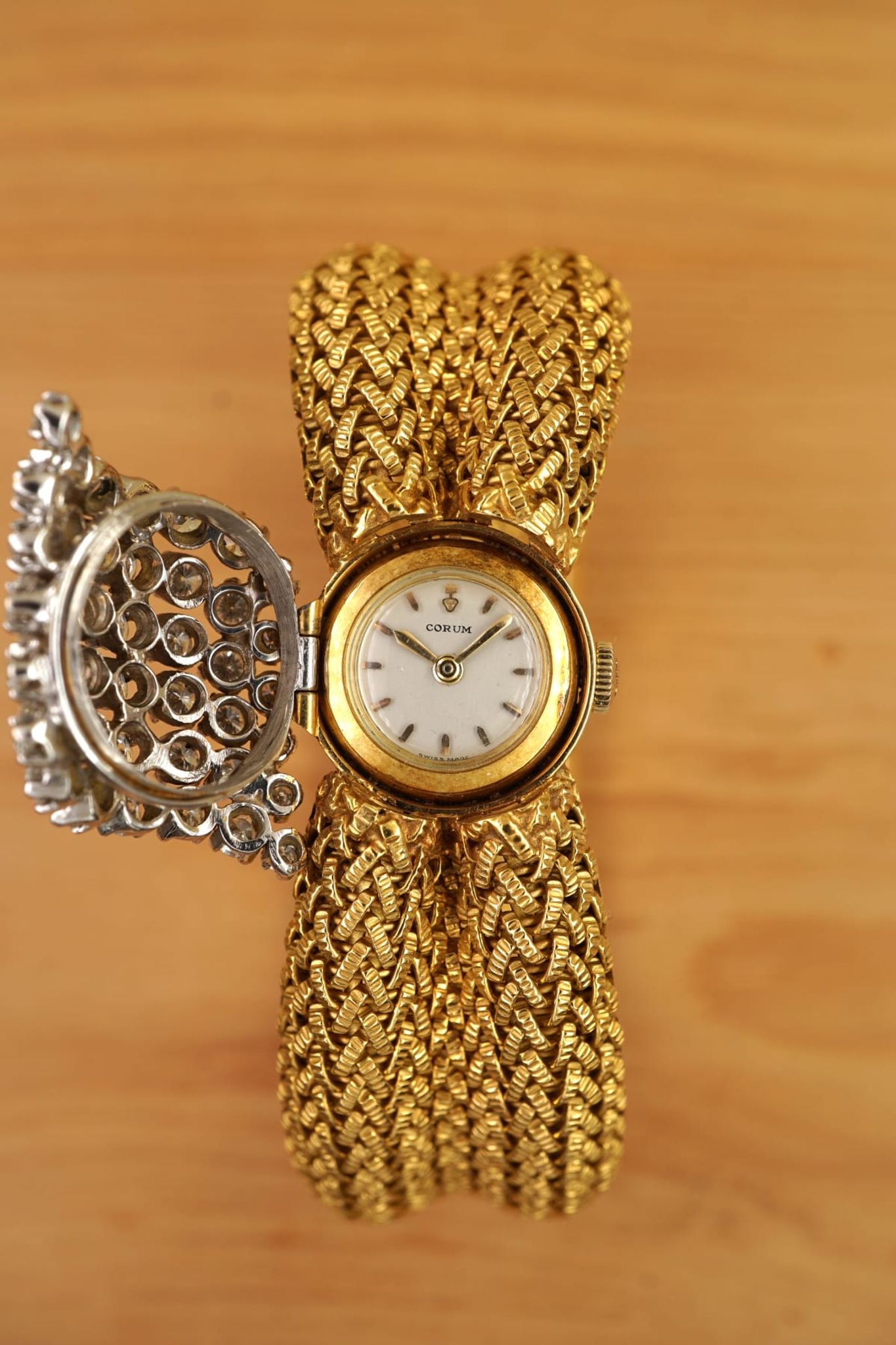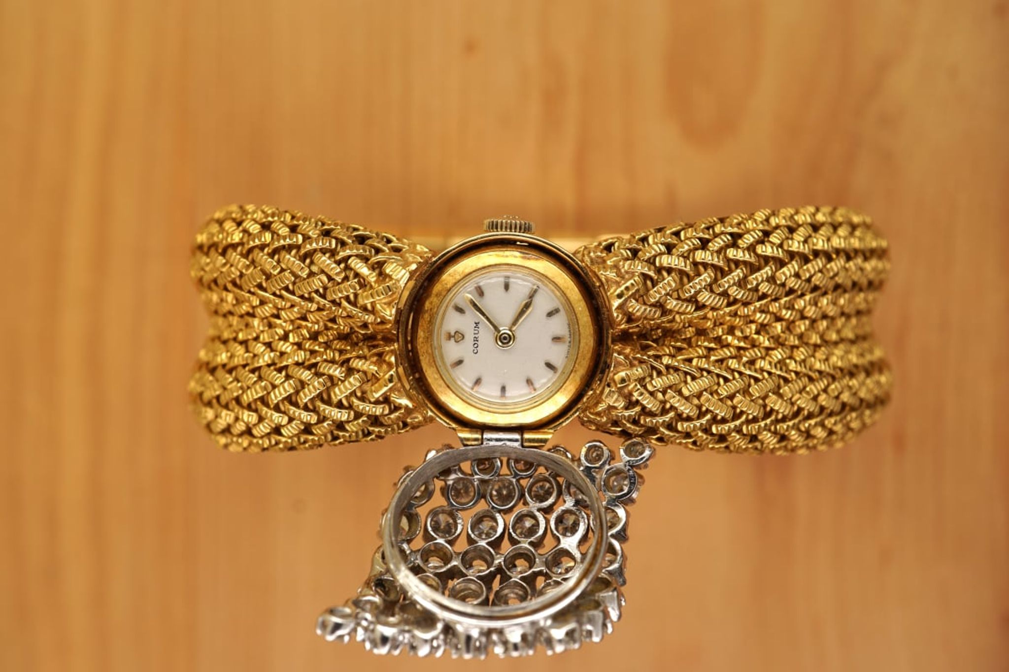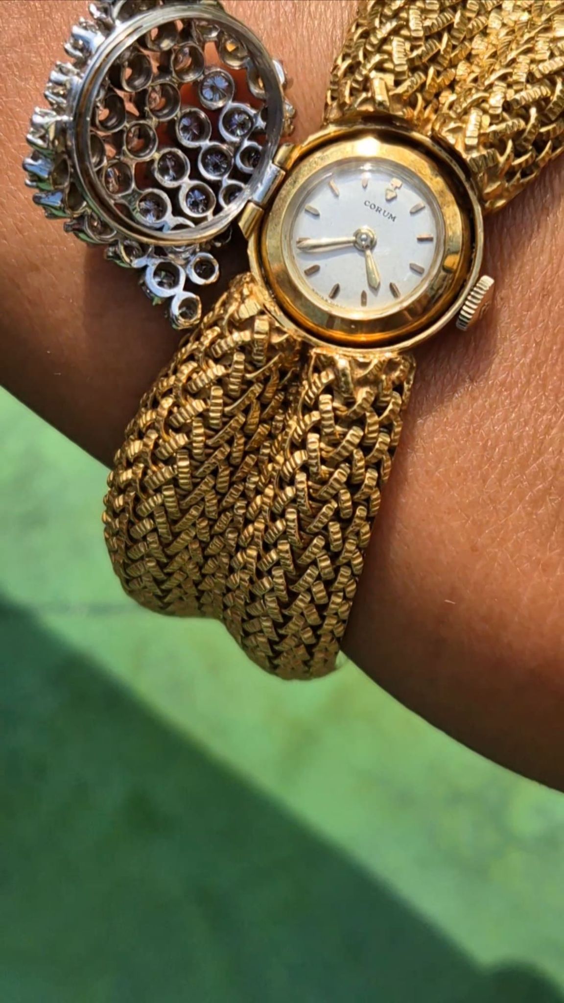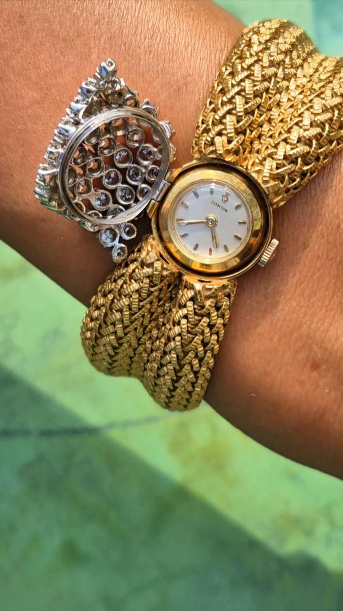 Unpolished, all original Corum Ladieswatch: Secret dial below diamonds.