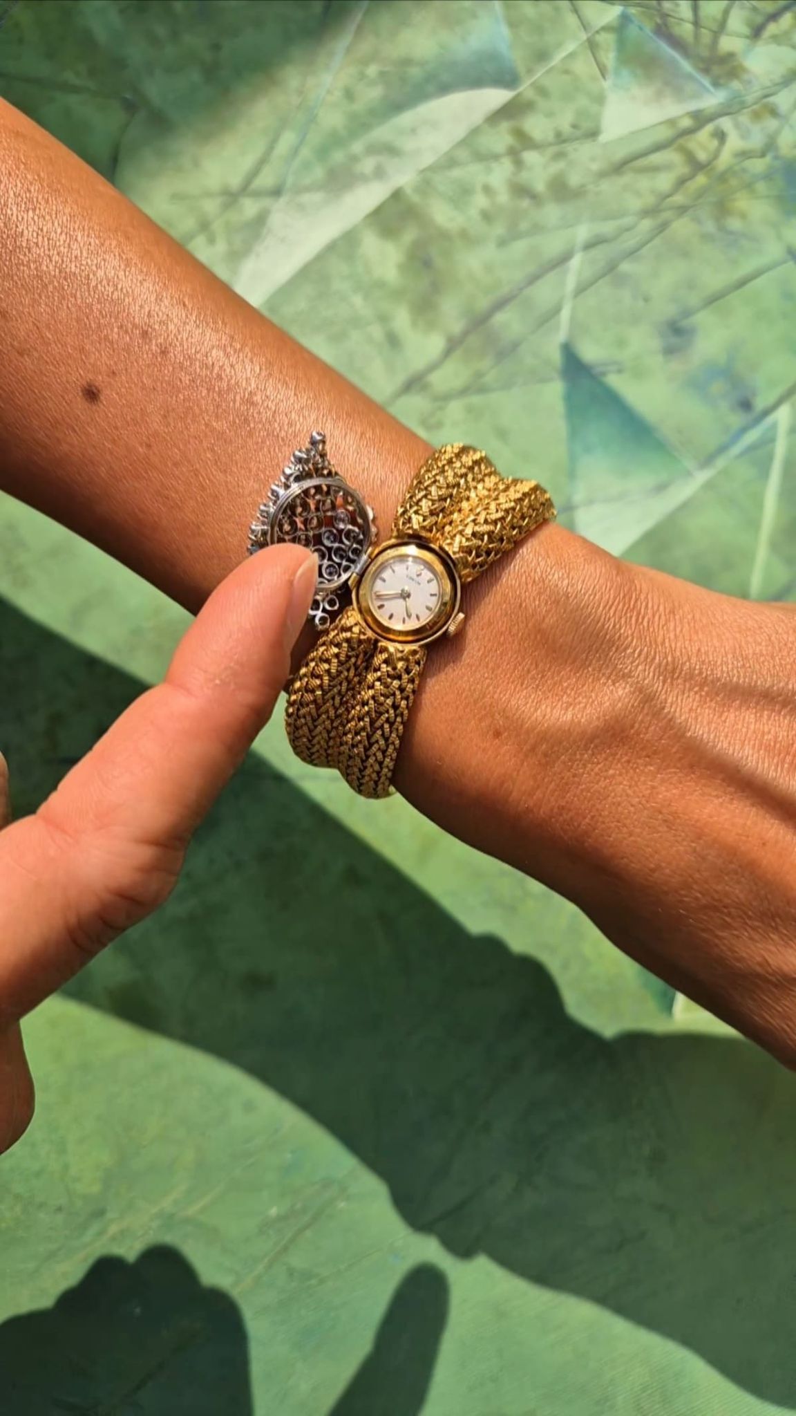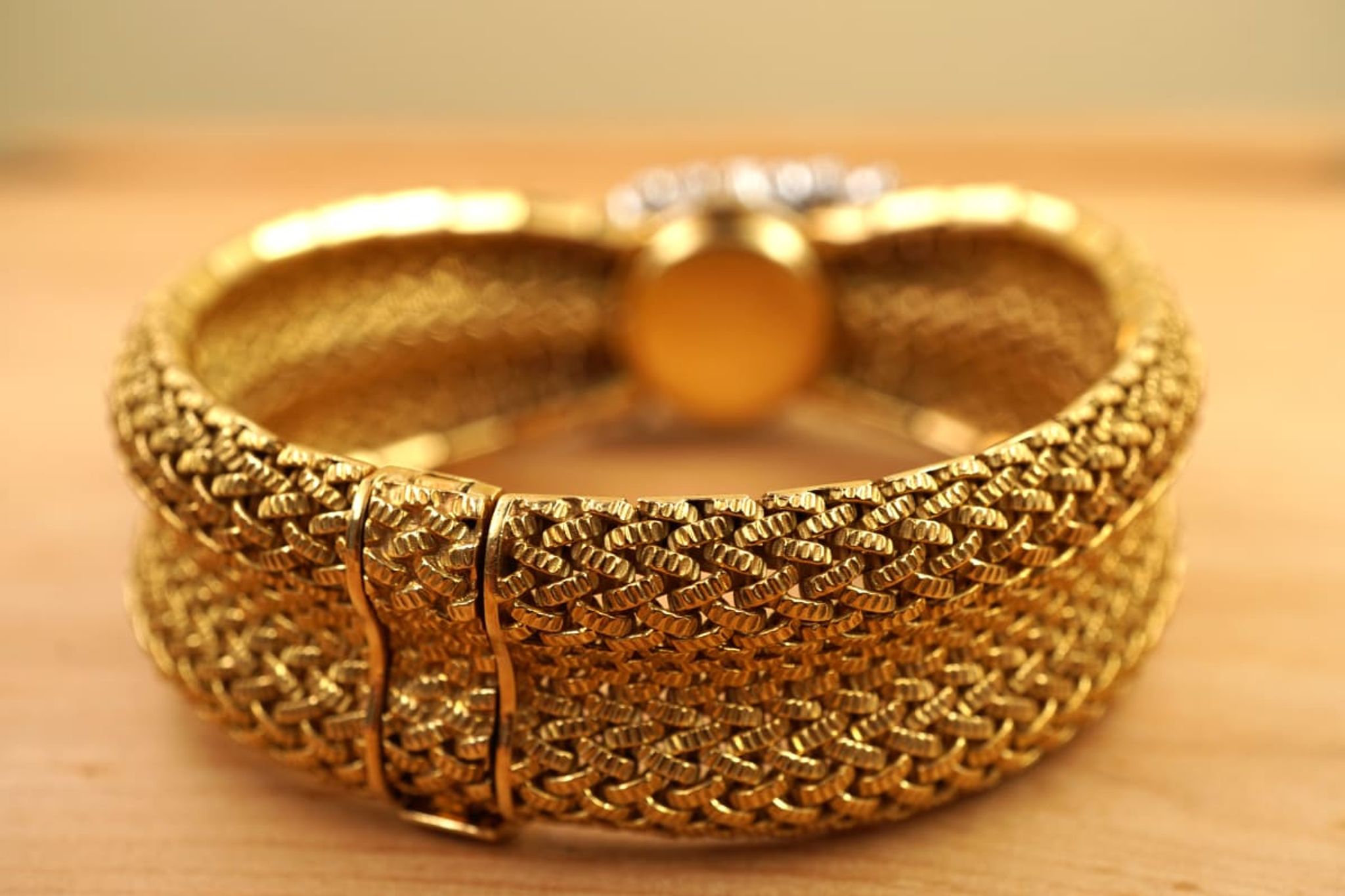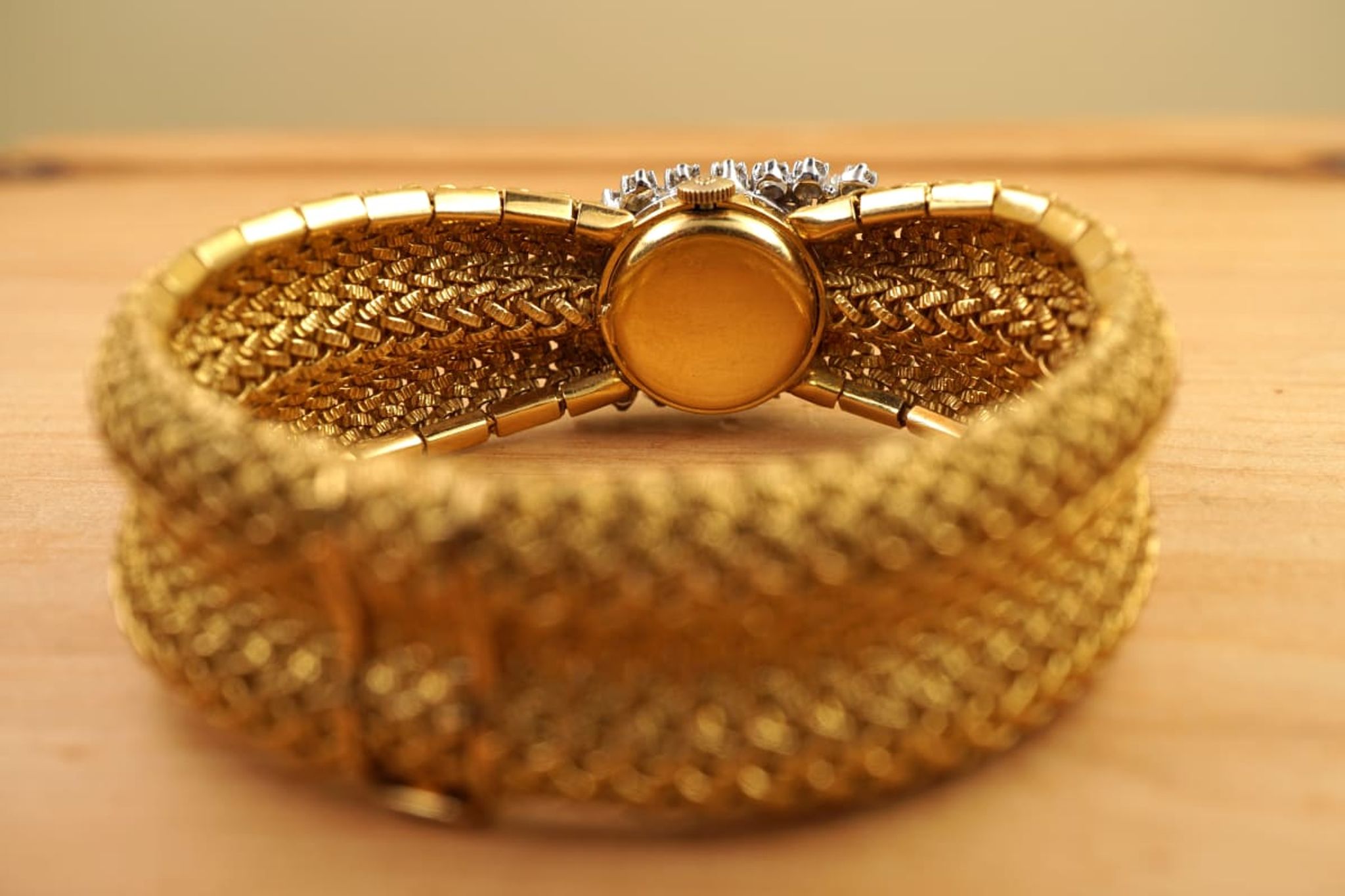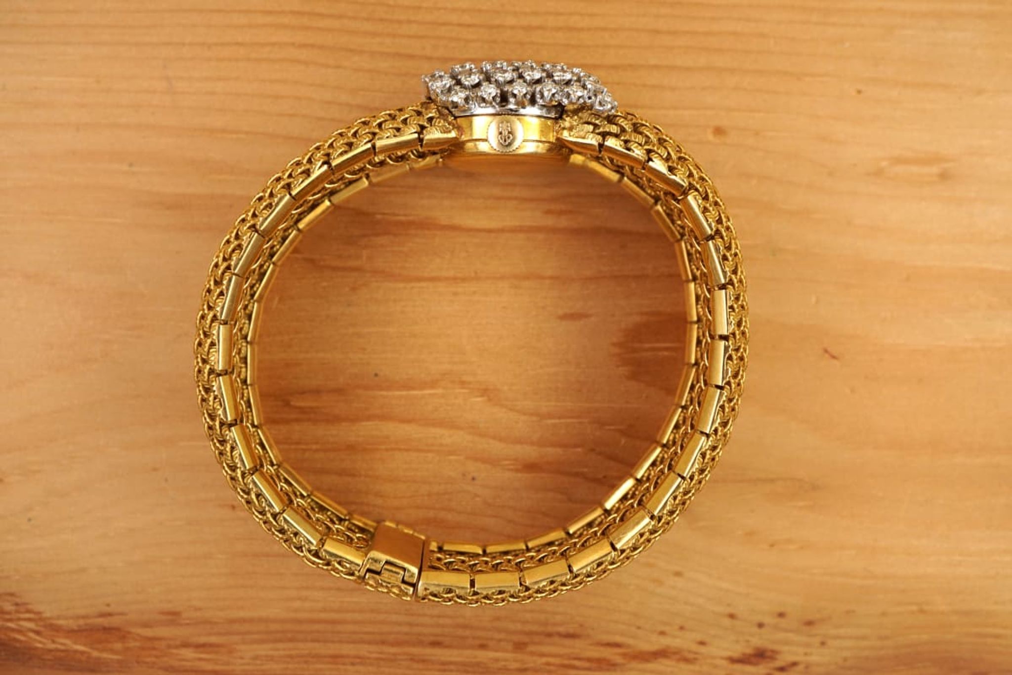 Unpolished, all original Corum Ladieswatch: Secret dial below diamonds.