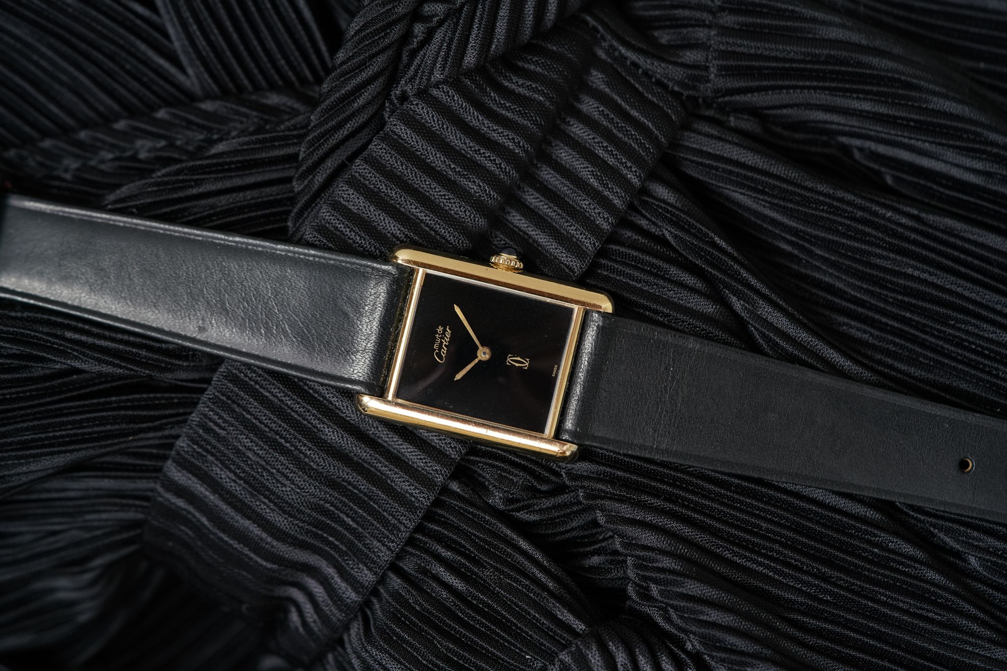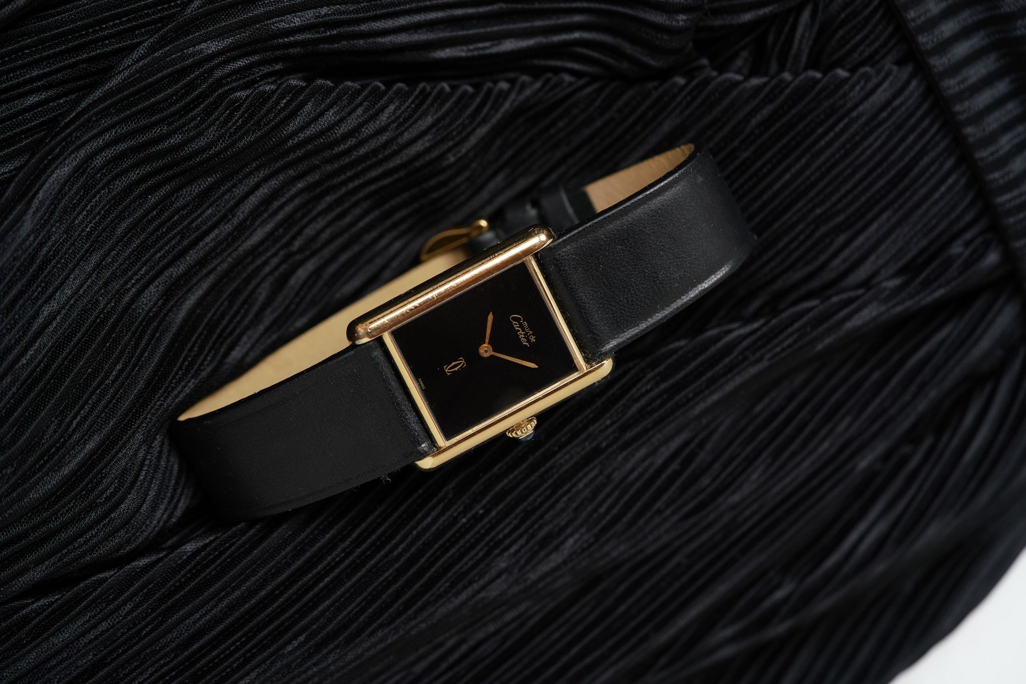A study in Parisian minimalism, the black-on-gold contrast gives this Tank a quiet authority. Available now, only @avocadovintagewatches
