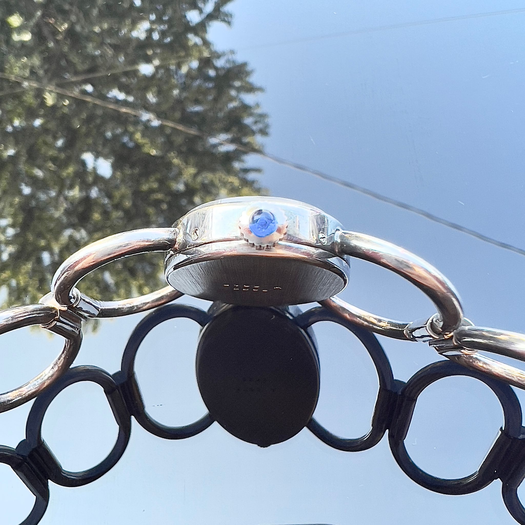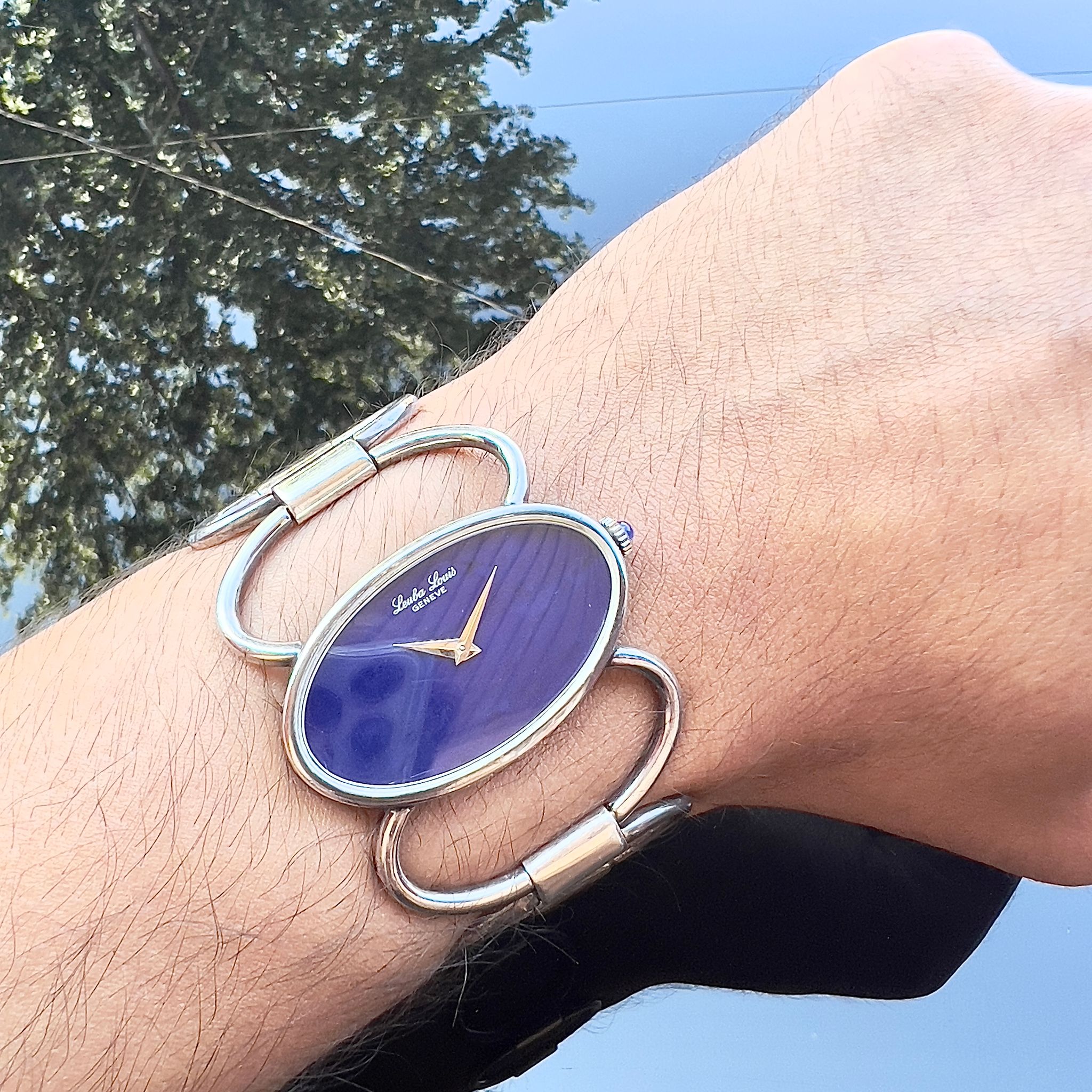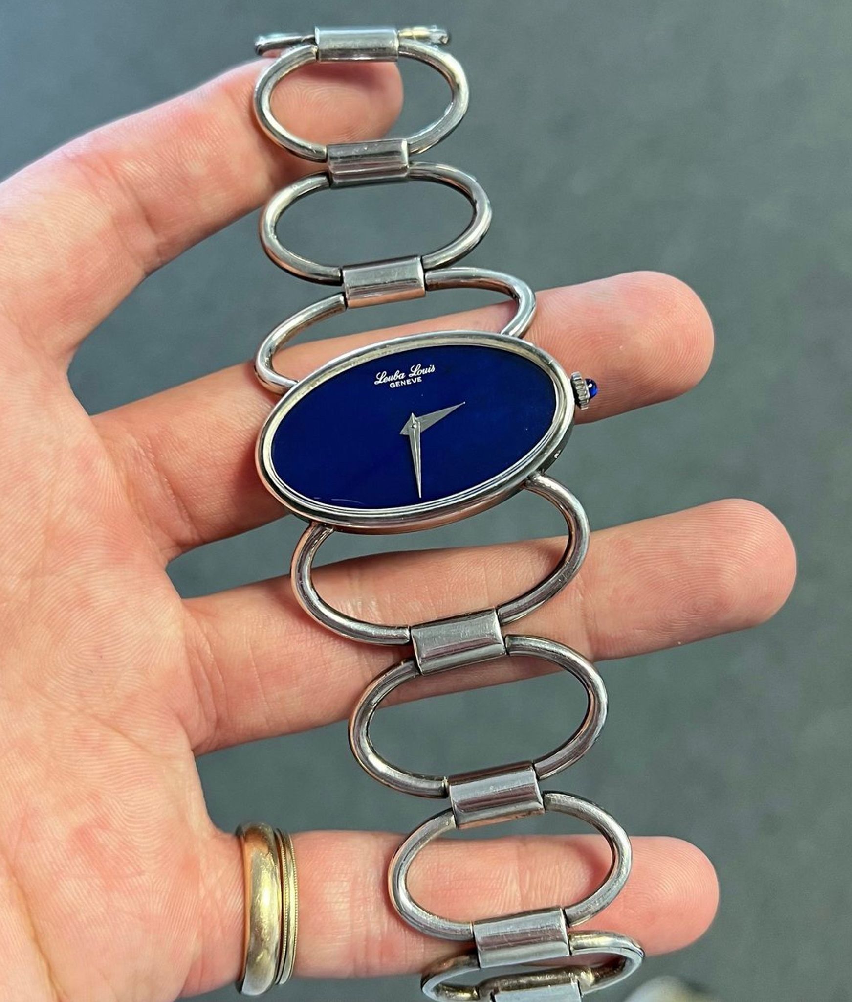 made of a less common material, Sterling Silver, with a Lapis Lazuli dial. Lapis dial watches were made by many brands in the 1960-80’s, many being dress and cocktail watches.