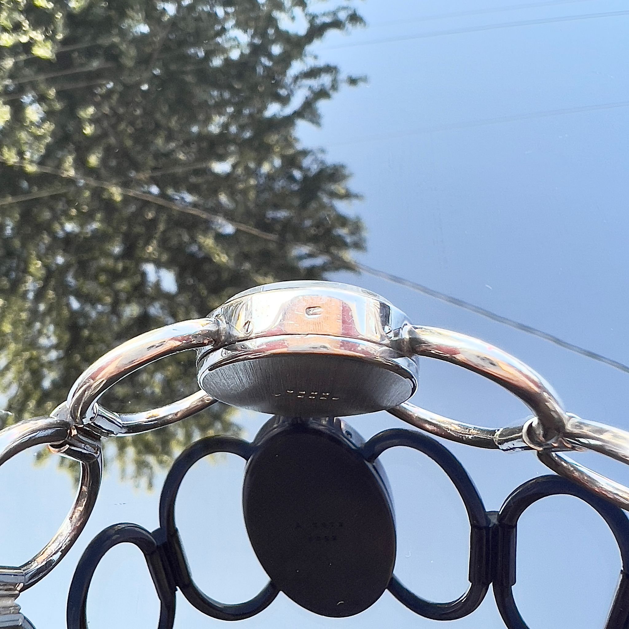 The case and bracelet were made by G&F Châtelain, a premier Swiss case manufacturer. Being an integrated bracelet constructed in the most common manner at the time, it does not have any removable or additional links, and only fits up to a 6.5 inch wrist.
