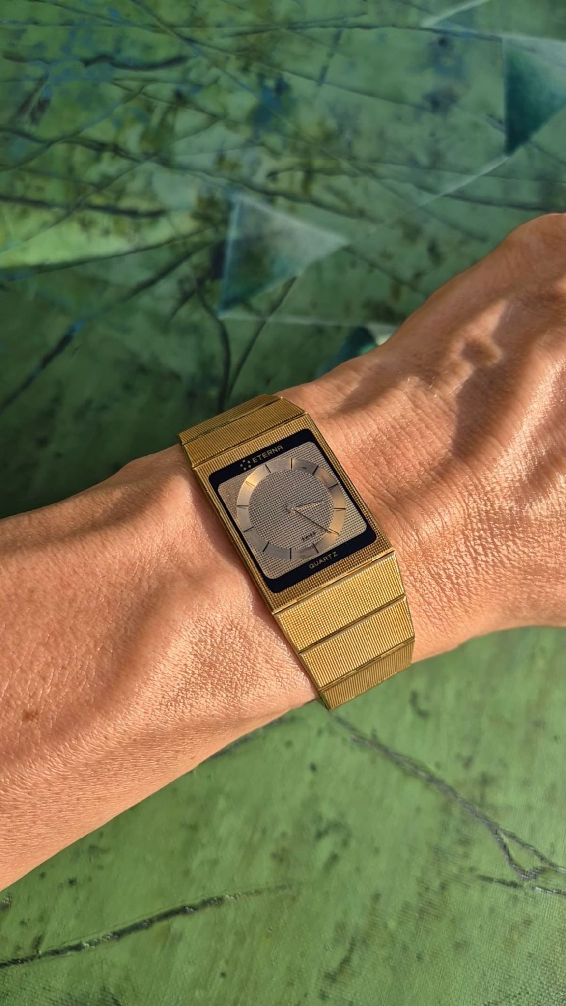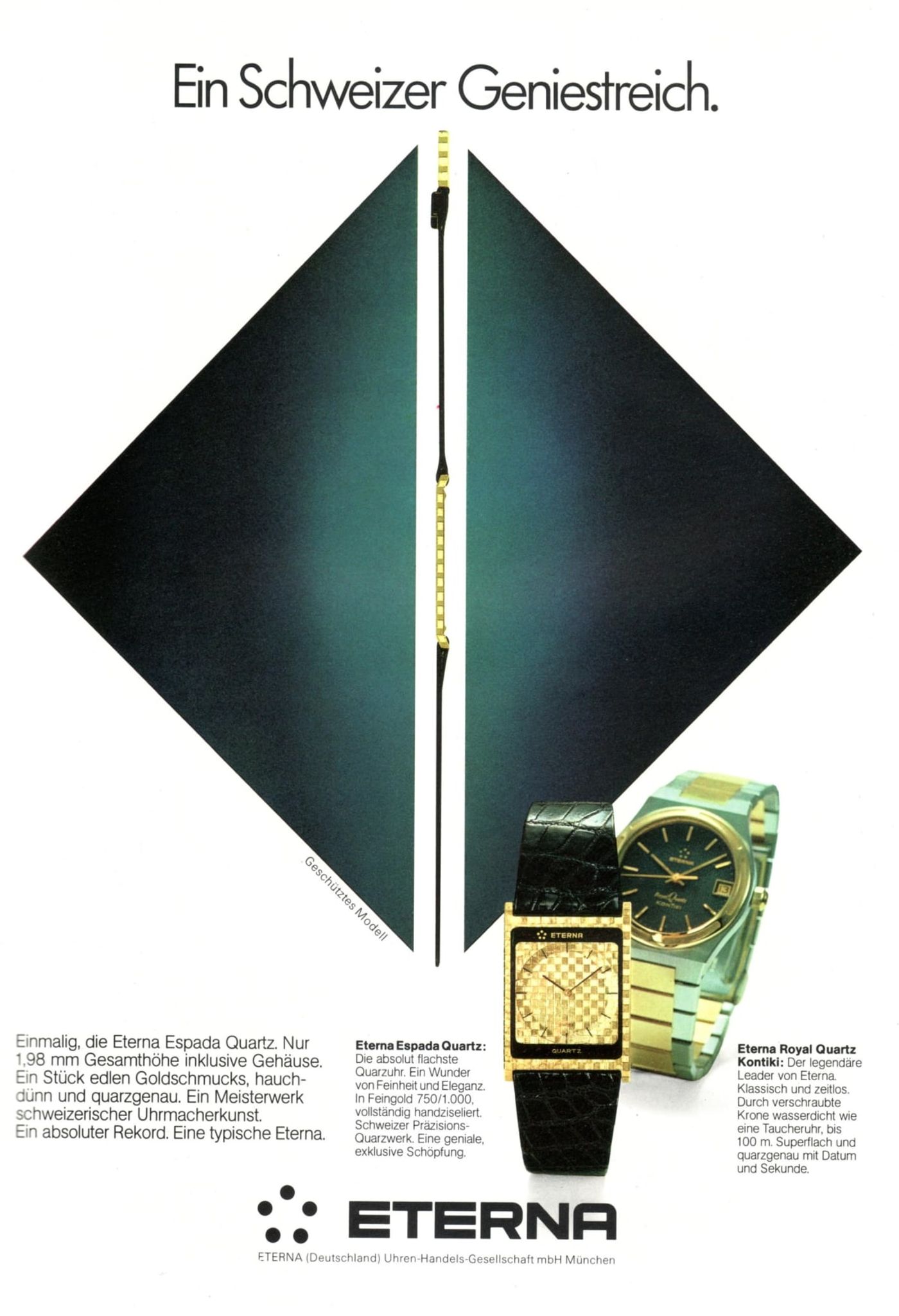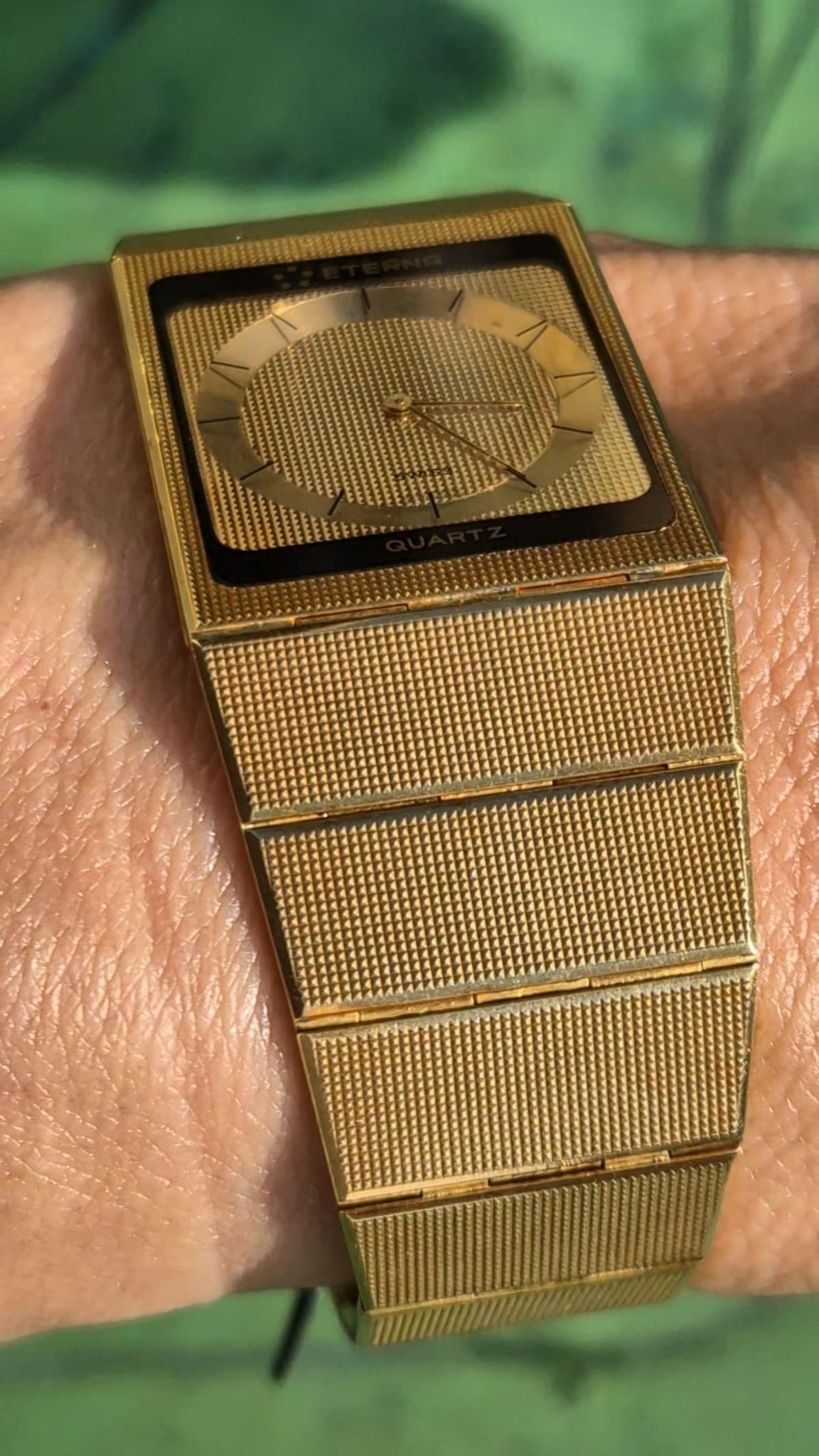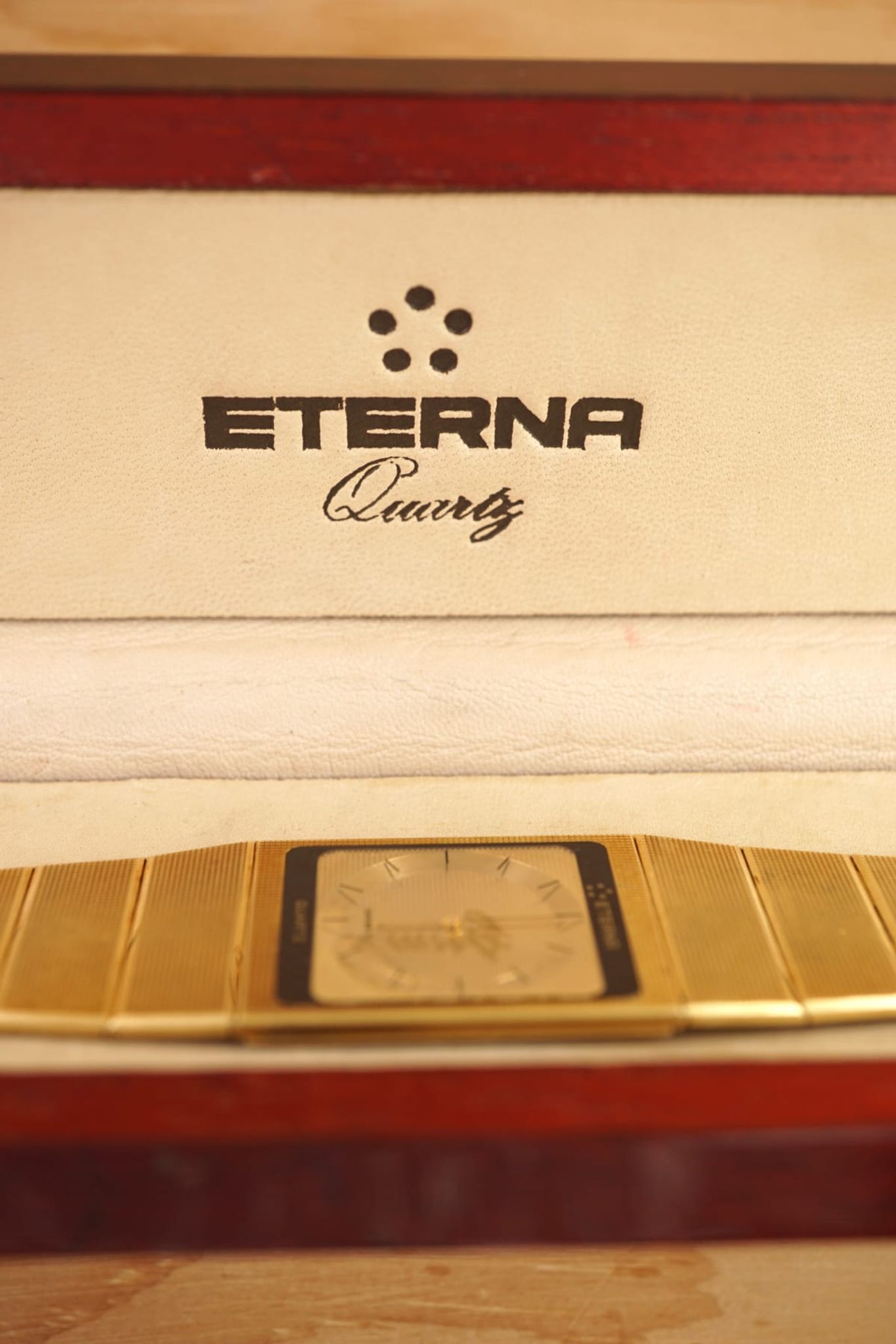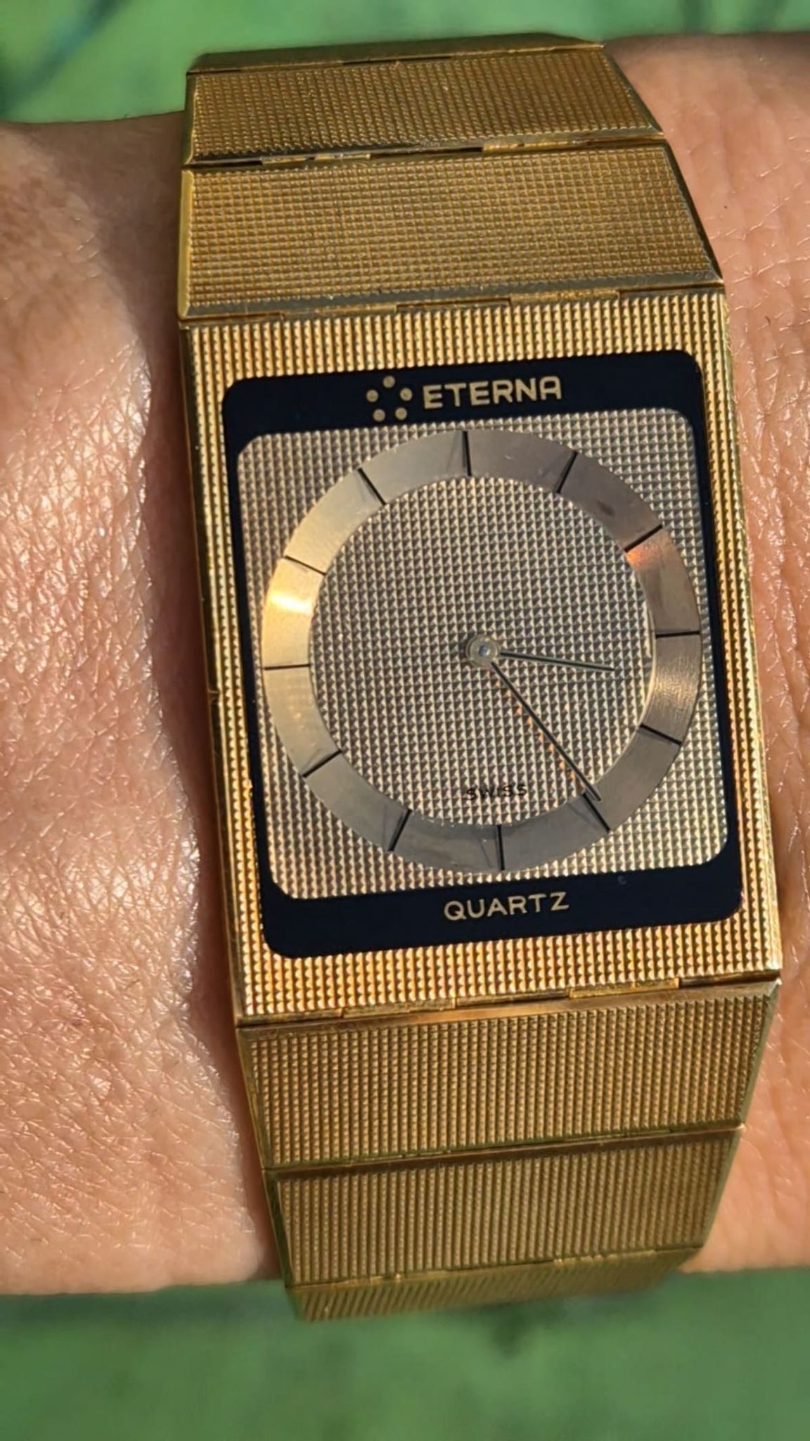 With the model on a leather strap priced CHF12'900 in 1979 -- Eterna Espada Delirium Tres Mince (sounds Tremens). This even rarer and more special variant with the solid gold bracelet, that is all decorated with the same hobnail- / guilloche-pattern as the case and dial, sold for a whopping CHF25'800 in 1979. And so it is safe to assume it was a rare watch back then already. And today with many smelted in the last four decades and in excellent running condition and that well preserved, it comes close to a piece unique. Yes, it was the hottest watch you could buy in 1979 -- if you could: on the edge of technology, super-precise and all hand-engraved by the case-maker-artisans at Favre & Perret -- yes, they made the Patek 3700 Nautilus Jumbo, the Patek 3770 Nautillipse and several other Pateks, too.