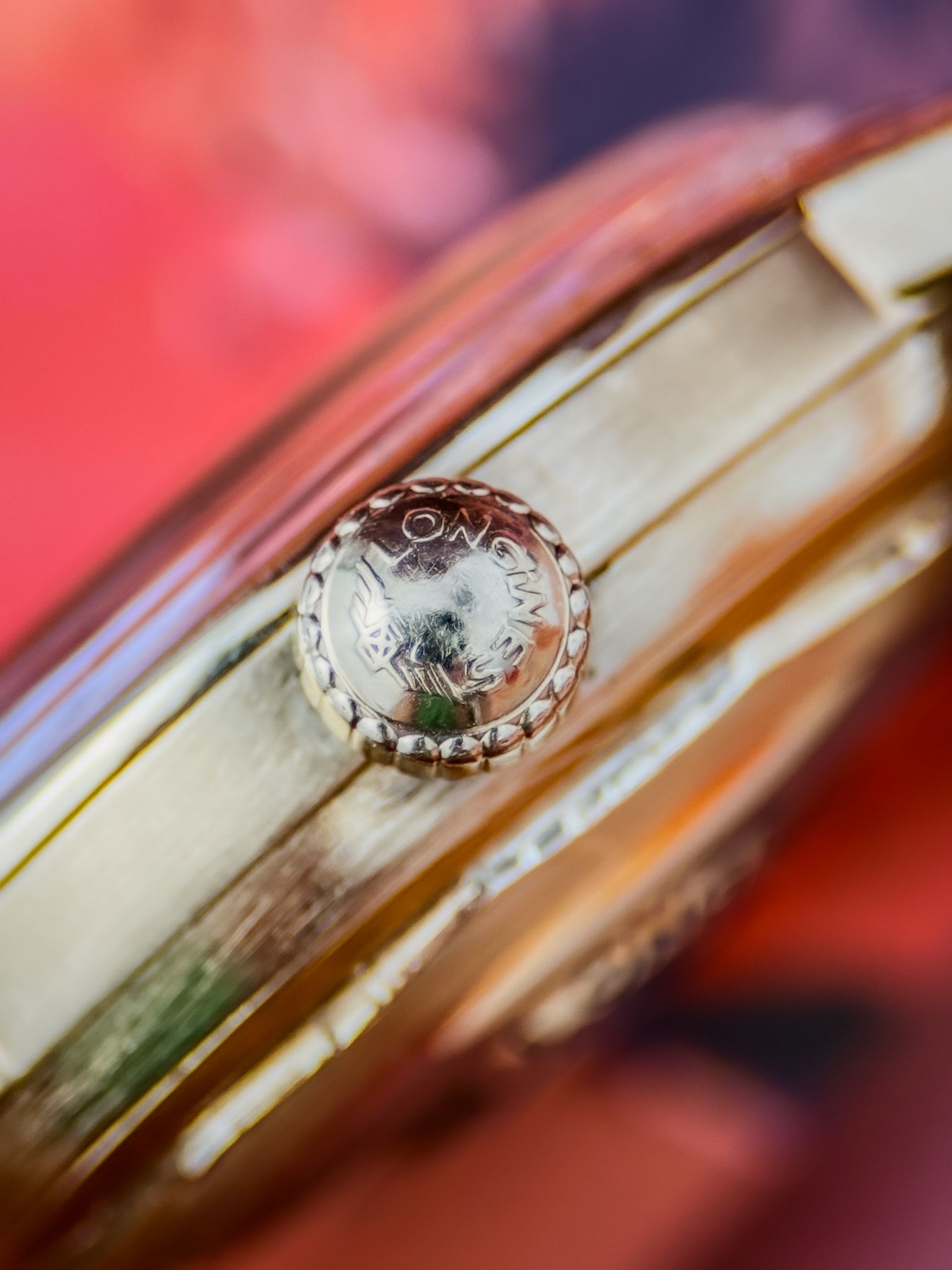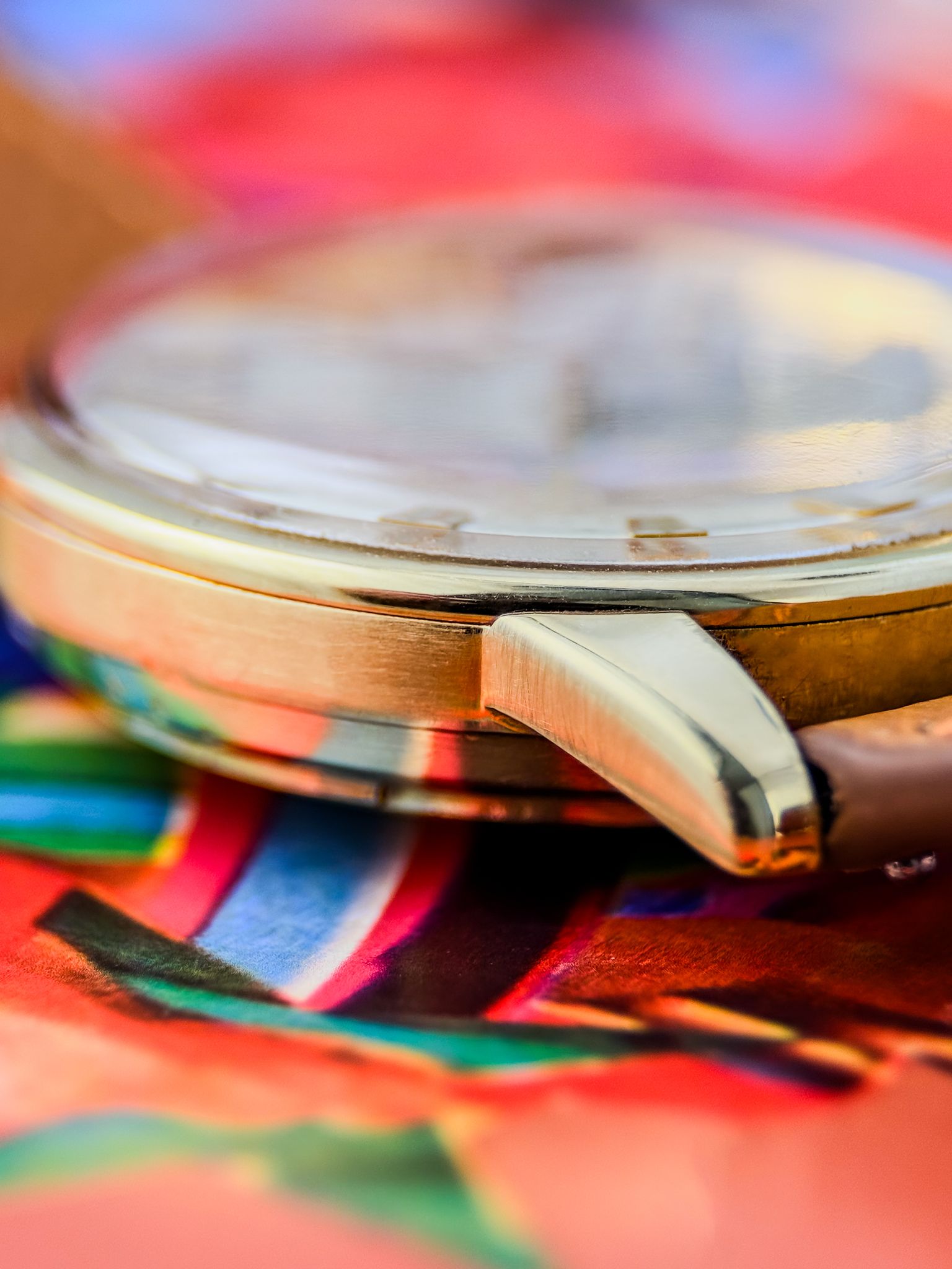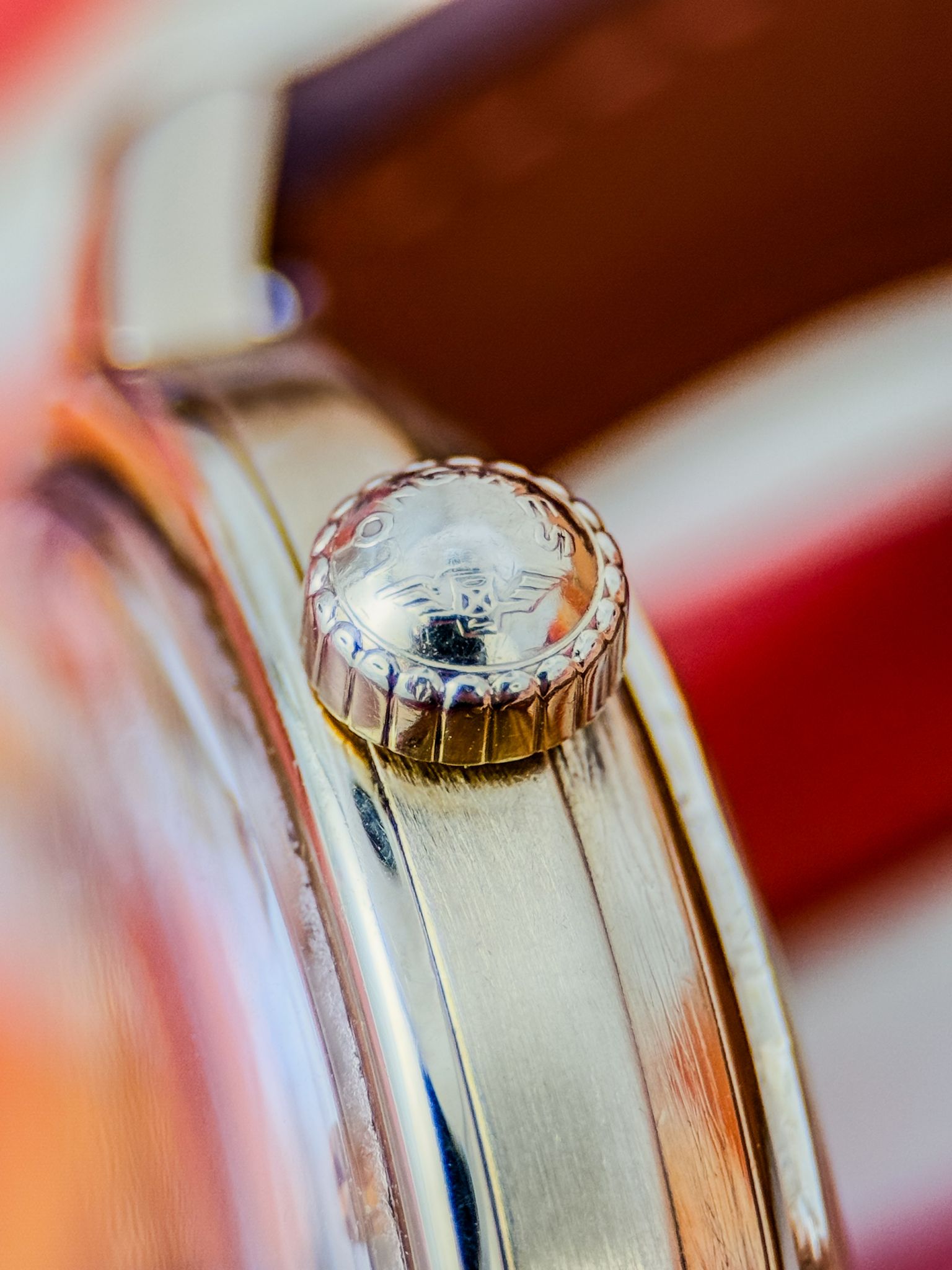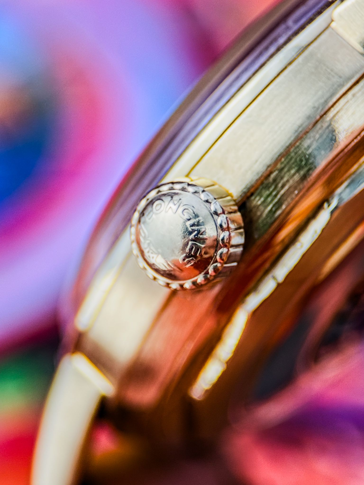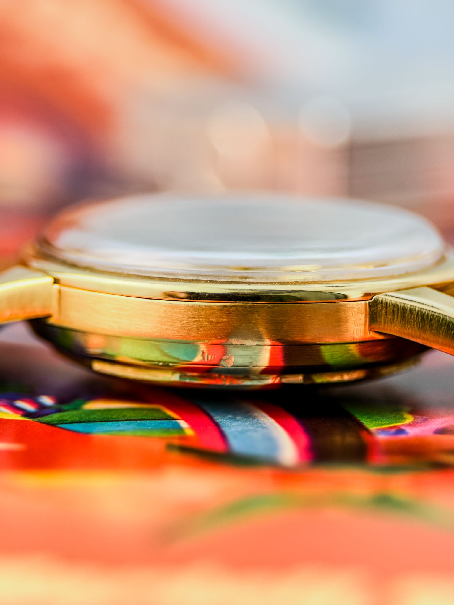 * Caseback: Solid screw-down caseback in 18k yellow gold, featuring an iconic blue enamel medallion depicting waves under a starry night sky