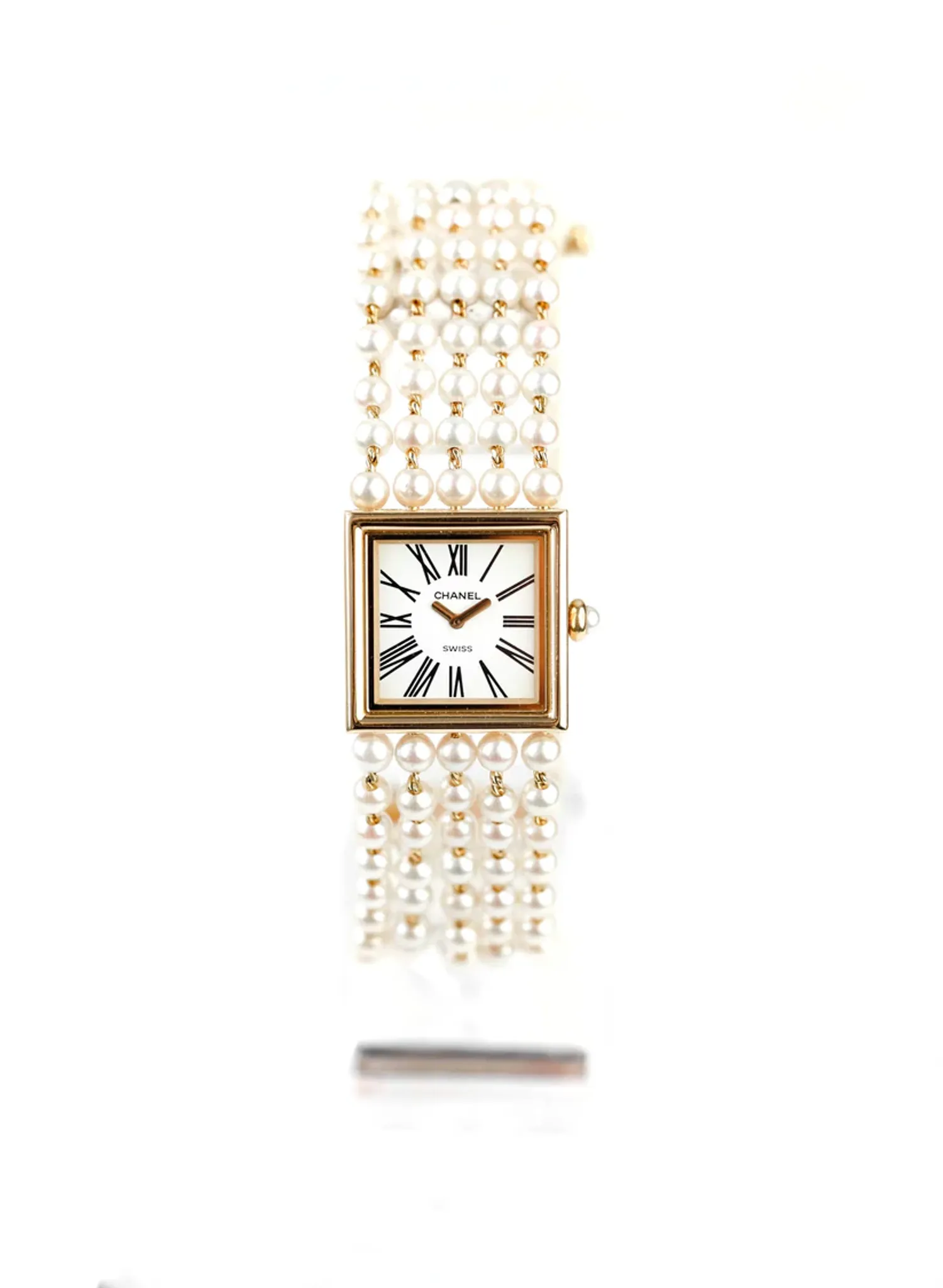 18K yellow gold case. Chanel bracelet in 18K yellow gold and pearls.