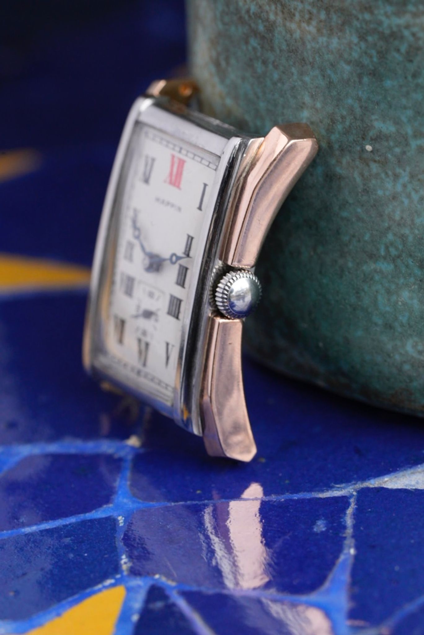 At The Arrow of Time, we hold a deep appreciation for Art Deco design, and this timepiece embodies that passion. Its rectangular case and harmonious combination of steel and 18k rose gold (0/750°°) perfectly capture the bold yet refined aesthetic of the era.