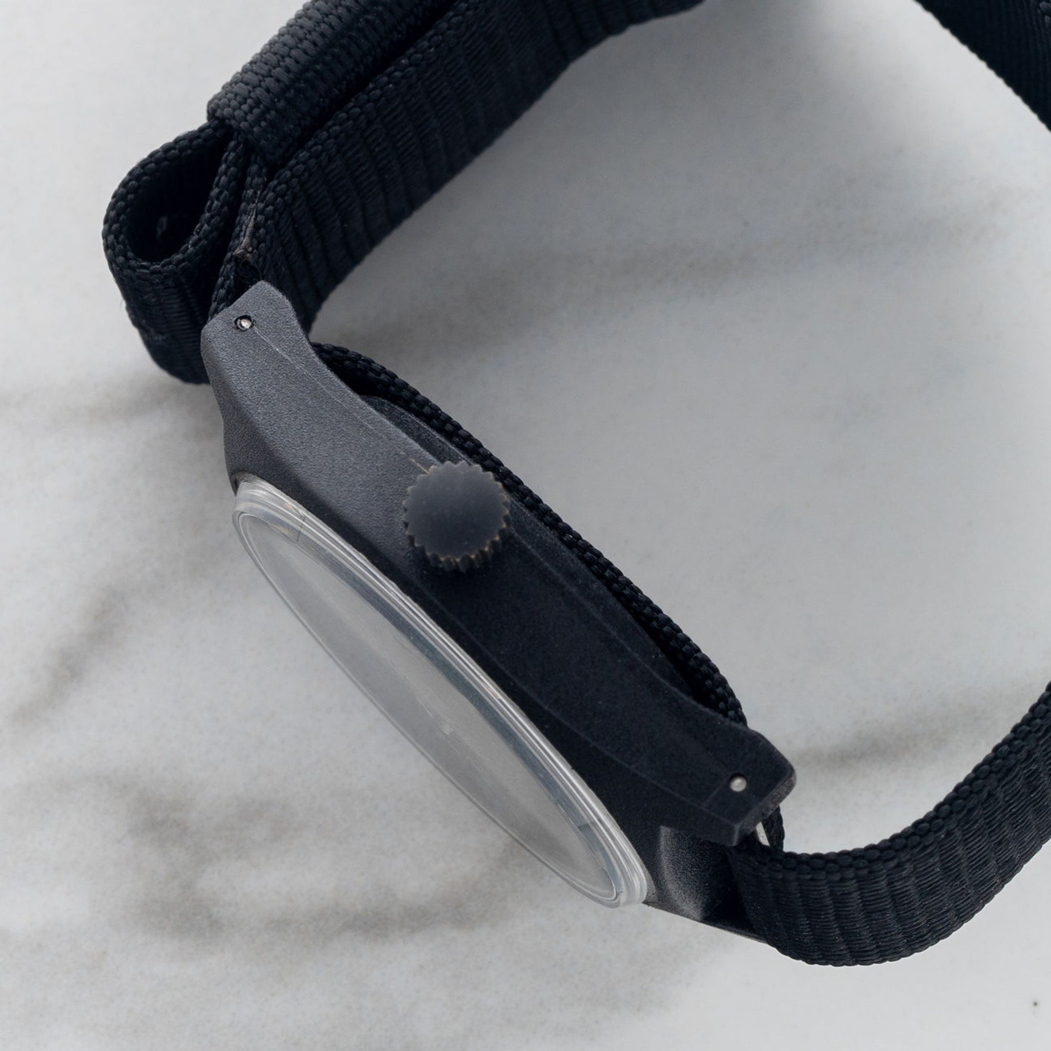 Bracelet: Correct single pass style strap in black. Crystal: There are some light scratches but no cracks. They could always be buffed off but we prefer to leave the history there.