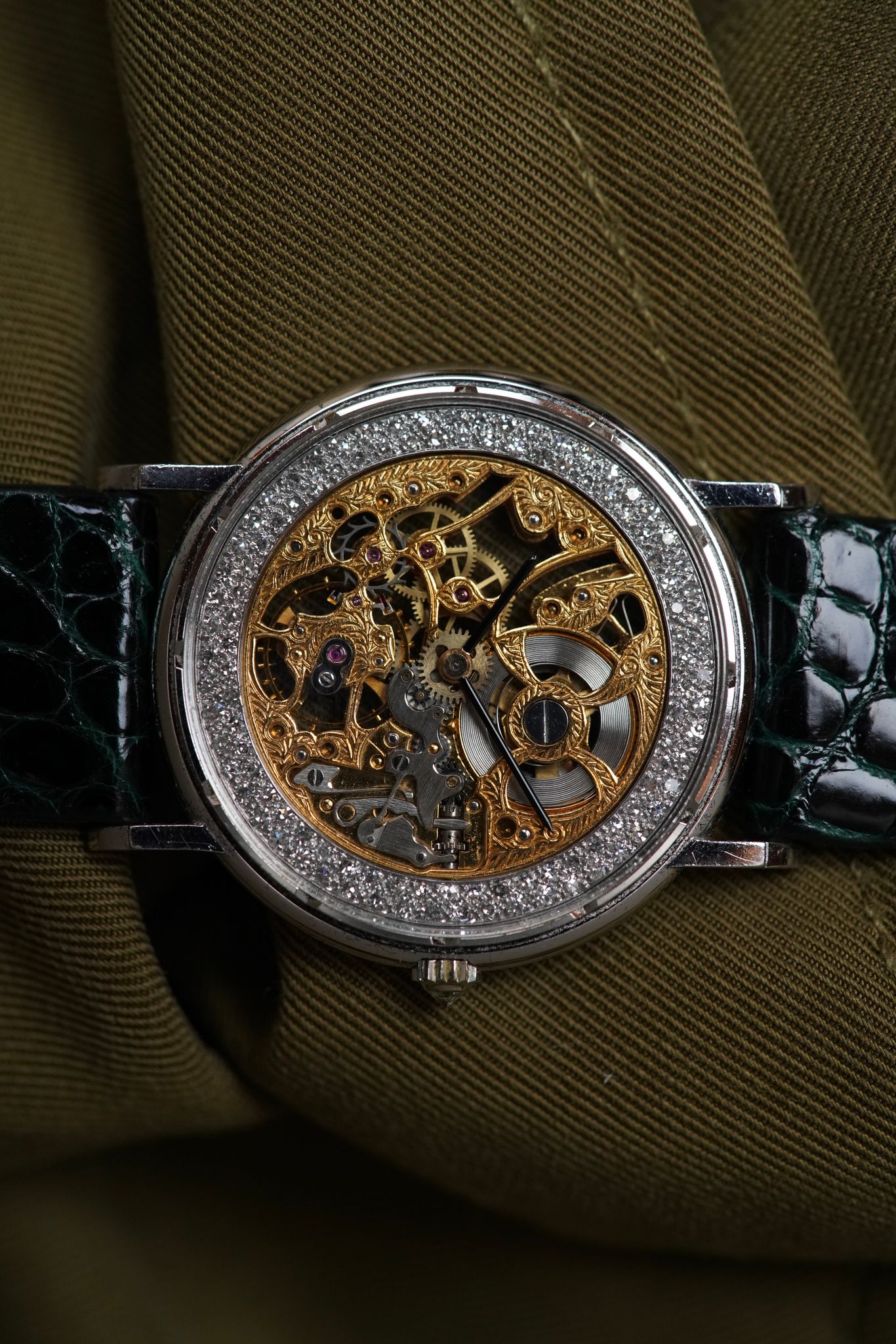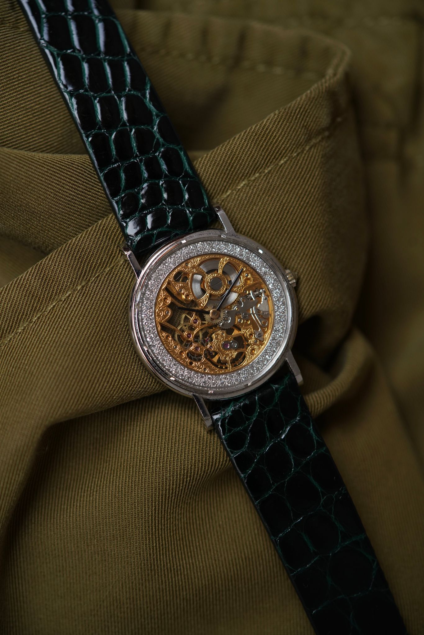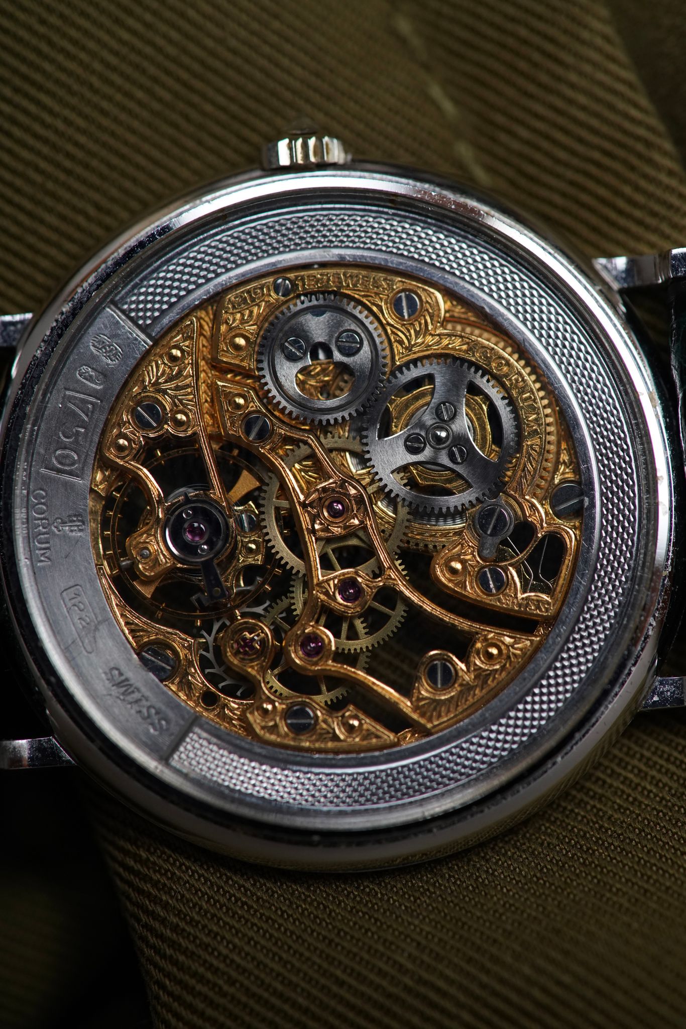 We trust you are well accustomed to the intricate art of skeletonising a mechanical movement.Happy to offer this exceptional Corum in solid 18k white gold with full diamond pavè outer bezel that screams humble luxury.