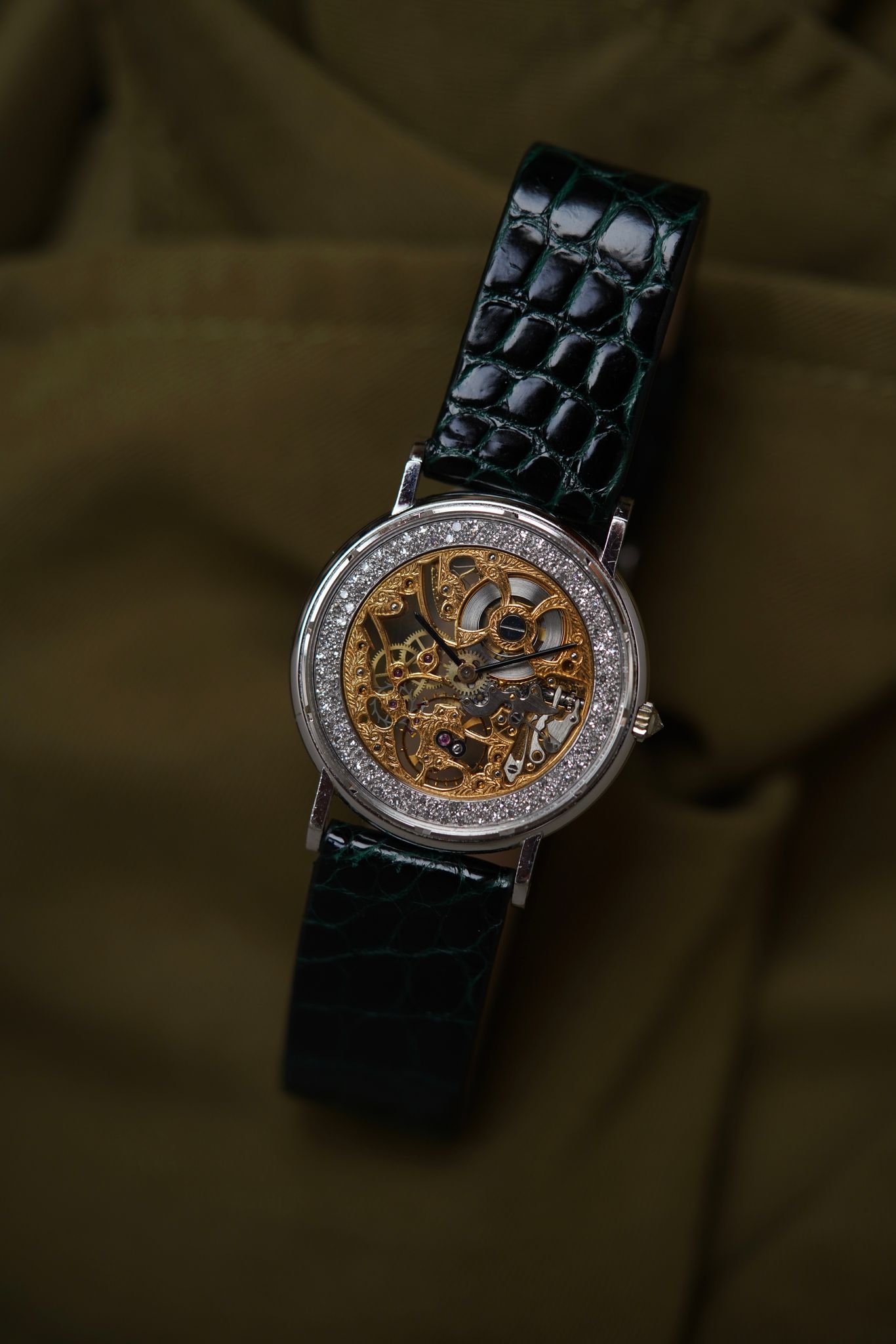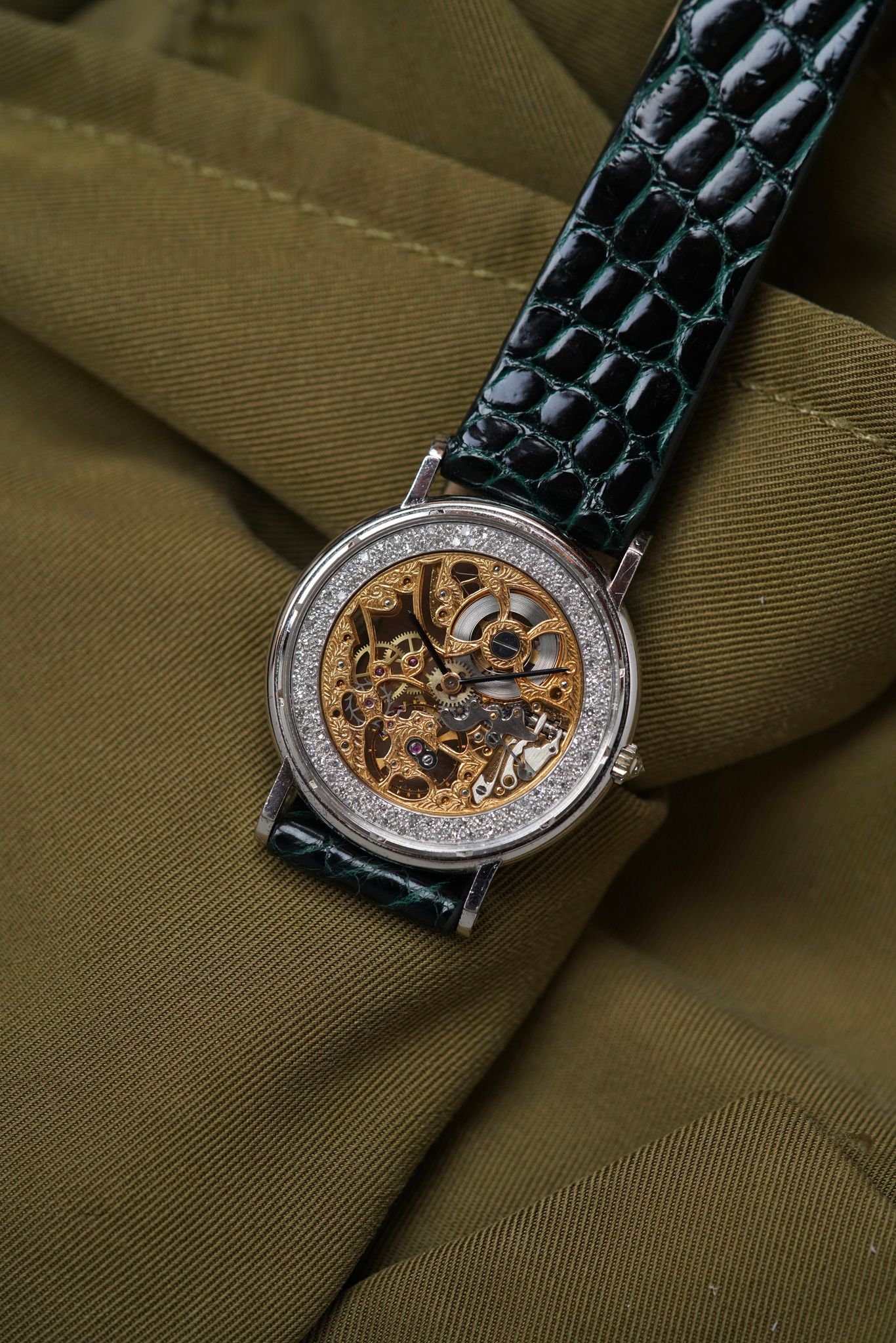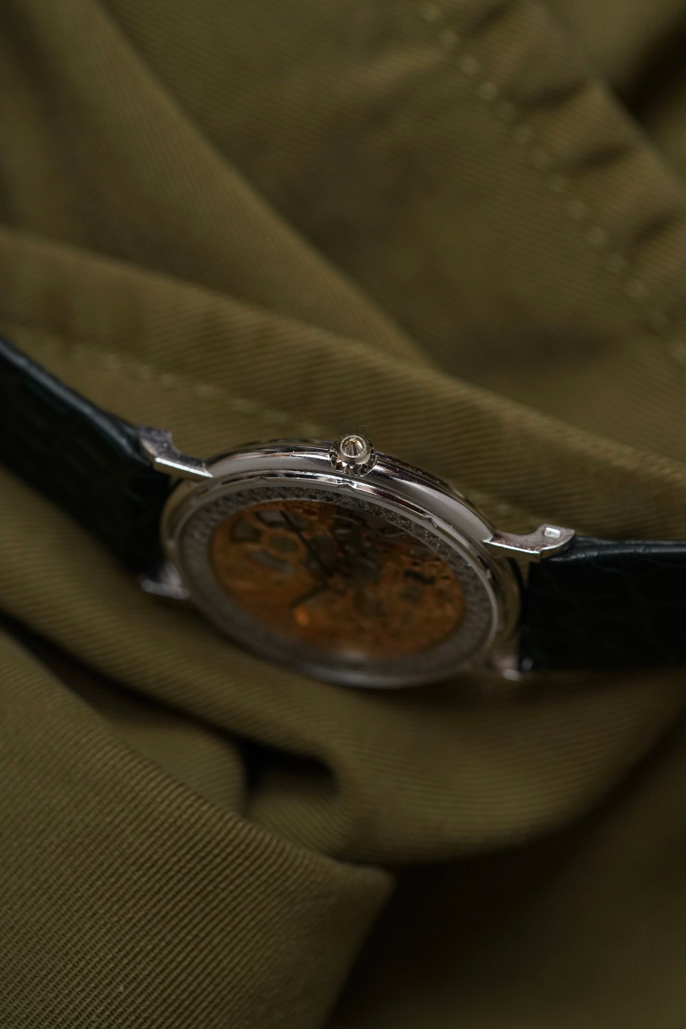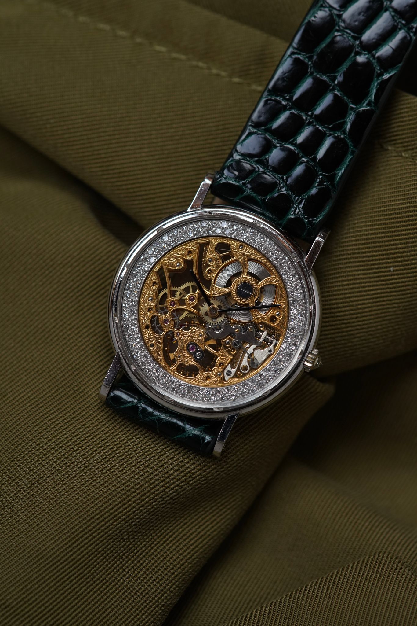 We trust you are well accustomed to the intricate art of skeletonising a mechanical movement.Happy to offer this exceptional Corum in solid 18k white gold with full diamond pavè outer bezel that screams humble luxury.