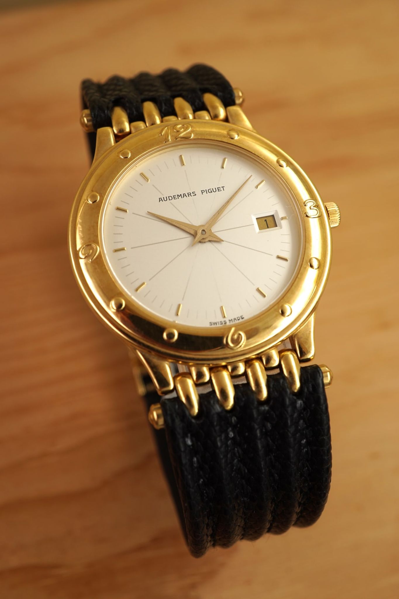 A 80s-classic by Audemars: thin quartz Merdian in the rare 18K yellowgold variant.