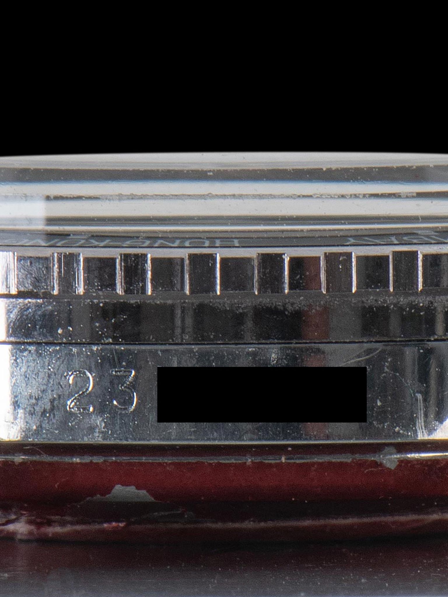 The original matte grey dial is in excellent vintage condition, showing some nominal wear marks and age that are mostly invisible to the naked eye. The metallic outer 24-hour track has acheived a lovely warm coloration and remains in excellent condition. The tritium lume plots have achieved a charming creamy patina and exhibit no degradation when inspected under UV light. The original tritium hands match the dial perfectly with no degradation present under UV light inspection.