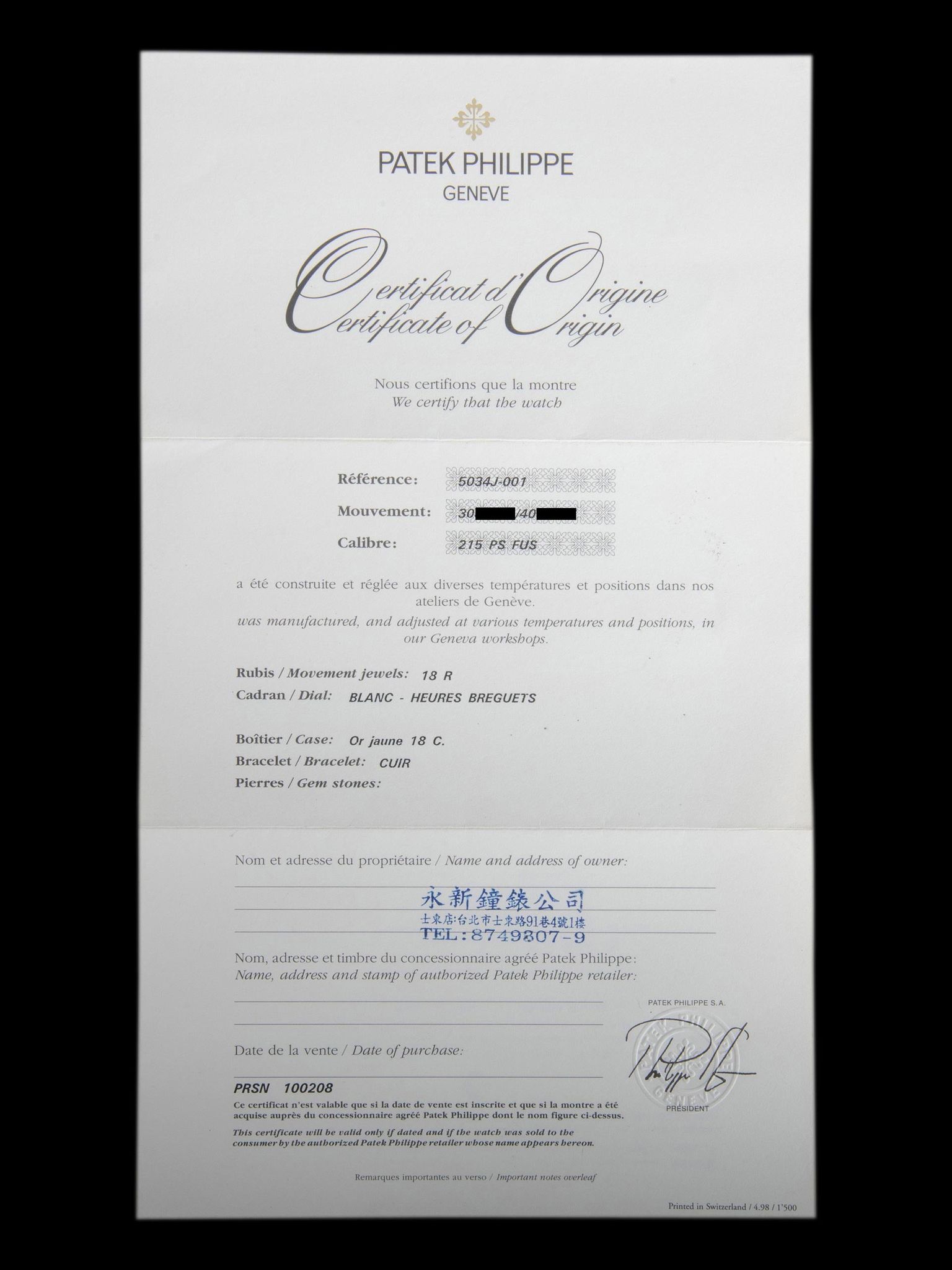 Patek Philippe - *MInty* 1990s Patek Philippe Calatrava Travel TimeRef. 5034J Papers