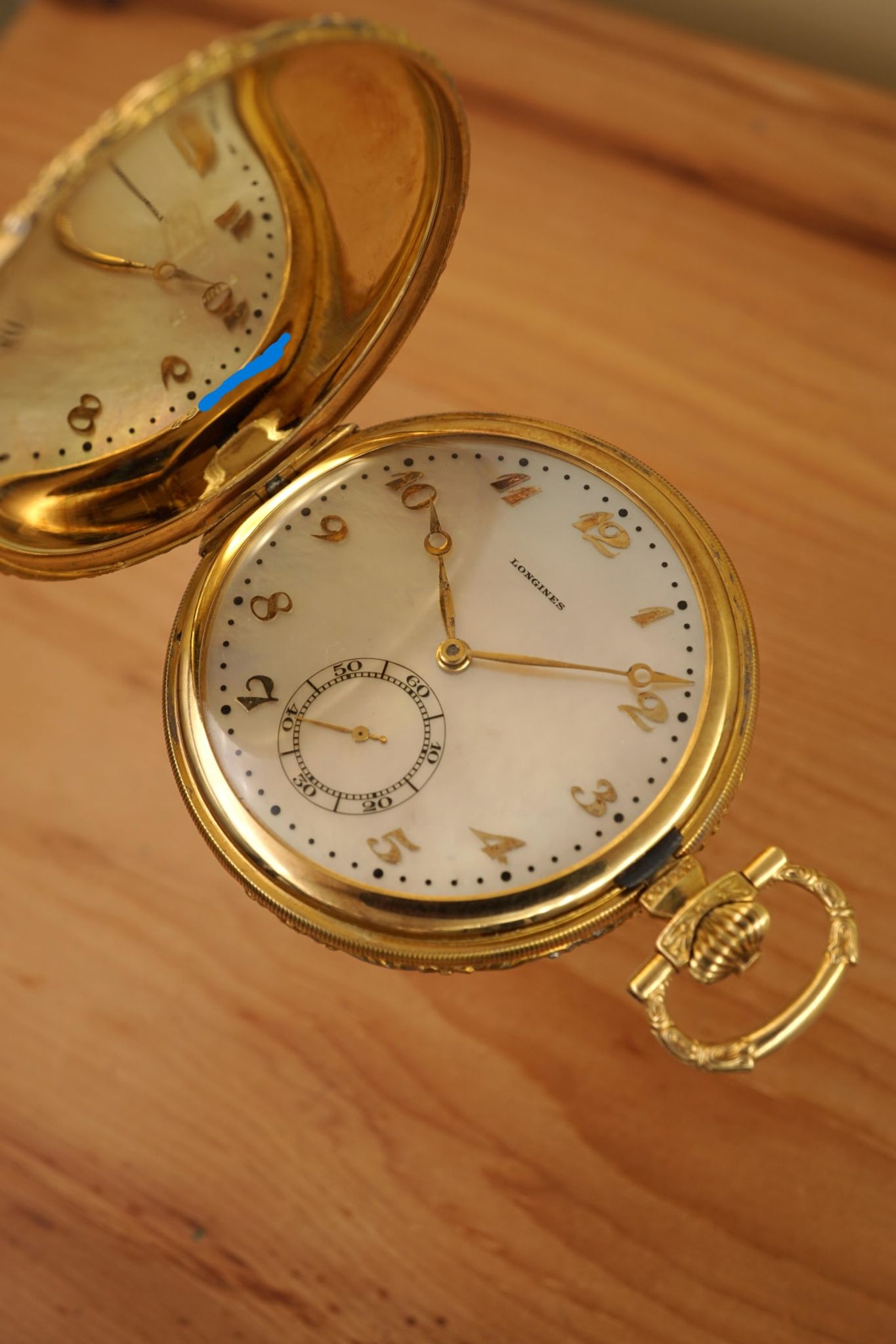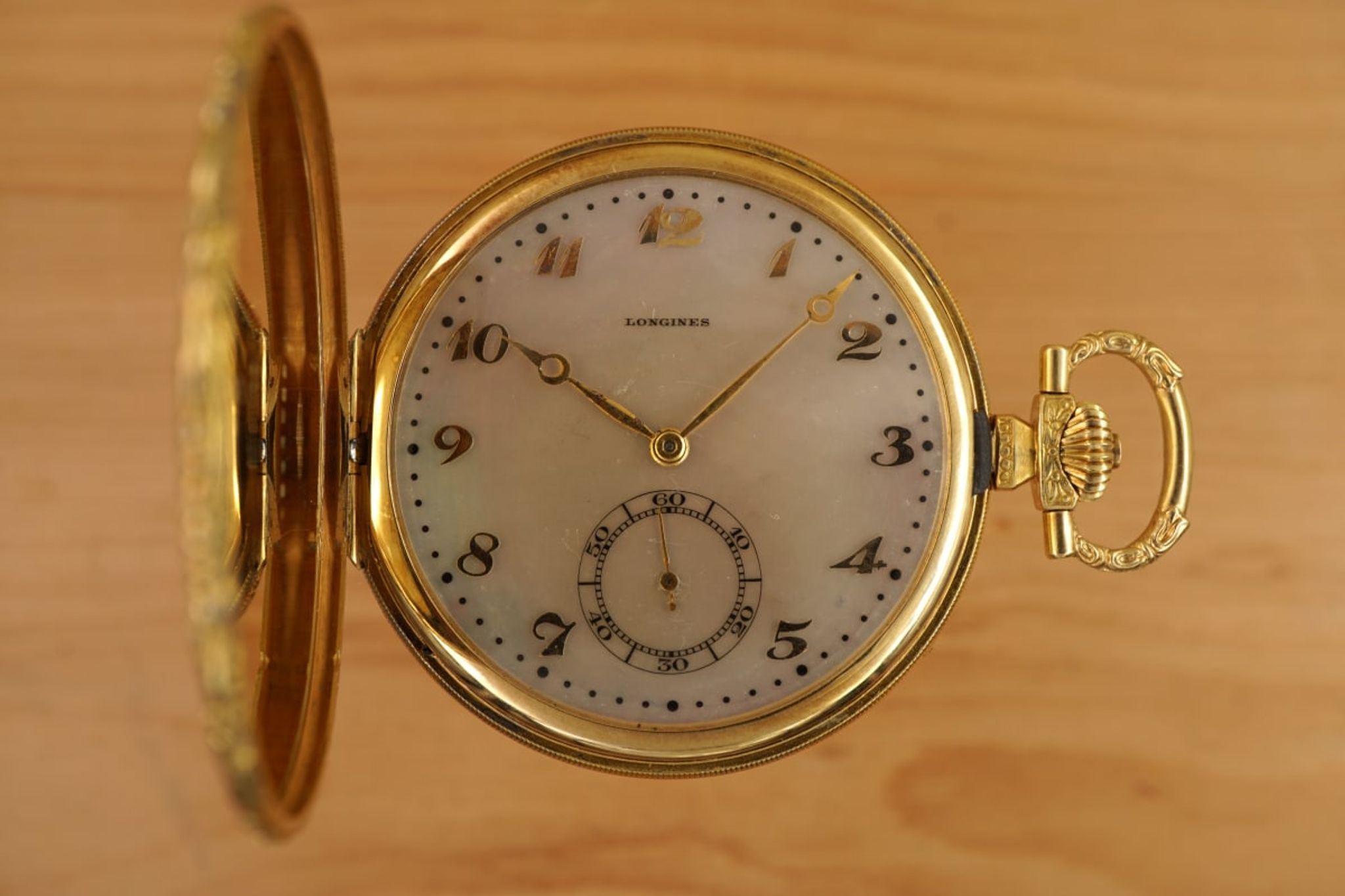 Longines - Monocoque Pocketwatch: Mother-of-Pearl- & Breguet-Dial, TwoTone-Gold