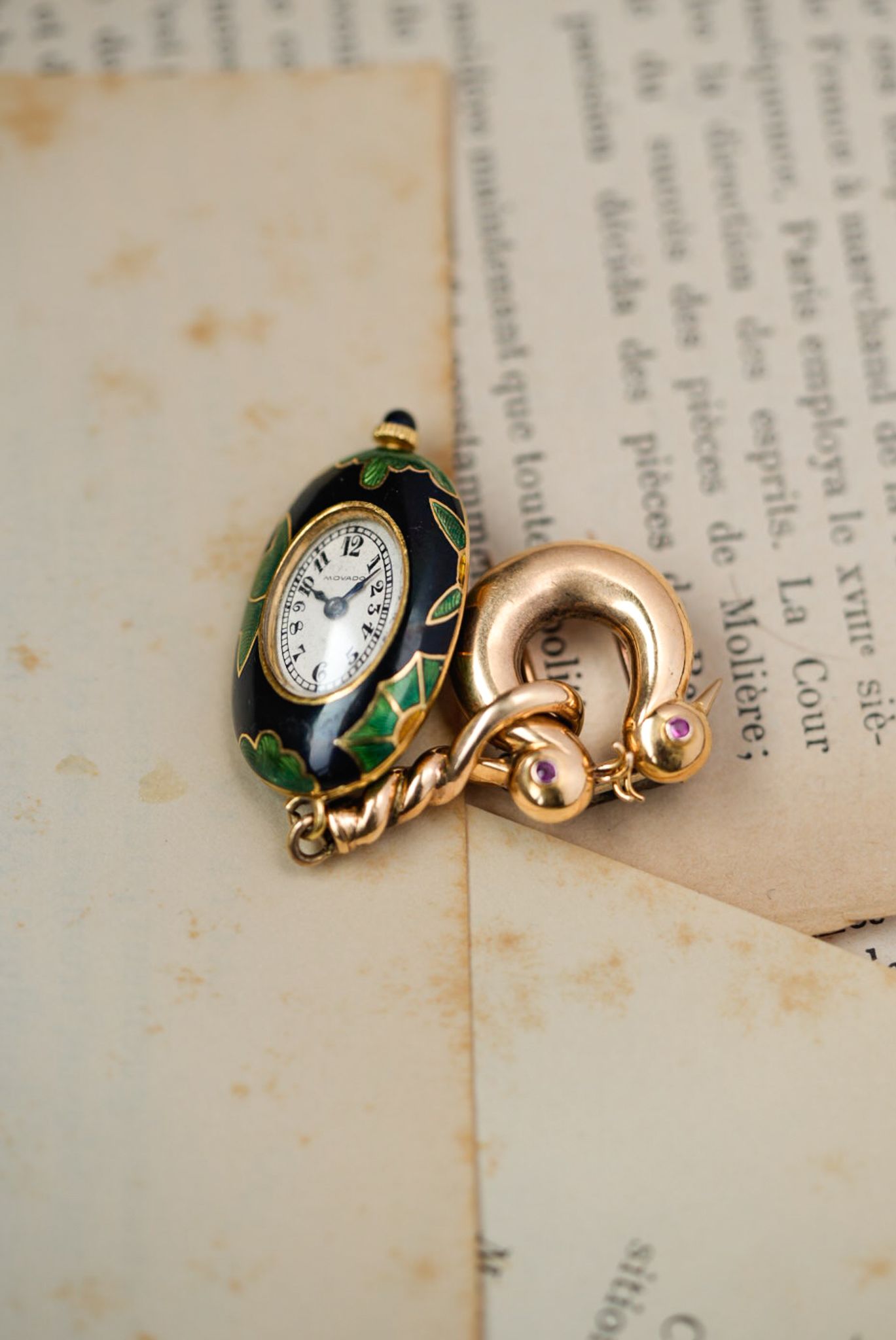 Brooch watch from the early 1900s, crafted in the Art Nouveau period.