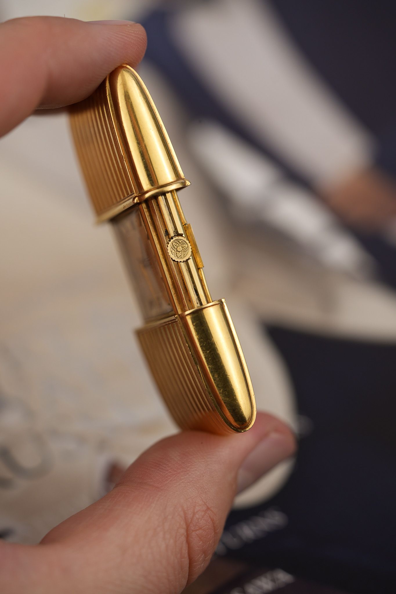 Today, it represents something more: the growing appetite for horological objects that live beyond the wrist. Items with utility, yes, but also presence. Collectible curios that tell stories as easily as they tell time. And while many Ermetos were plated or made in silver, this one is solid gold—mint, unapologetically shiny, and almost suspiciously well-preserved.