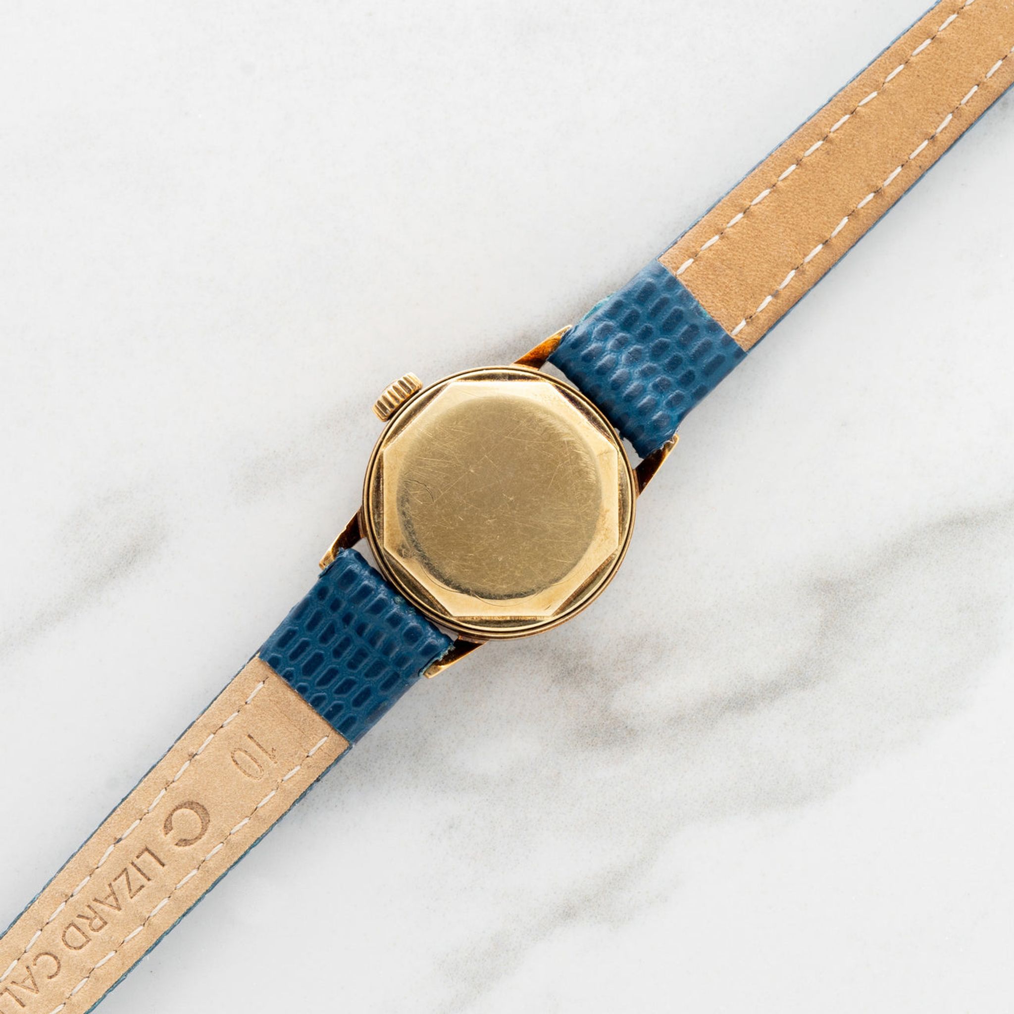 The Queenmatic (sister to the Kingmatic) came in various proportions. This particular version has a small case dimension of 19.5mm in 14k yellow gold, housing a rare Tiffany & Co signed dial. This charming piece boasts very nice vintage condition, comes with inner/outer boxes and was fully serviced so its ready to enjoy for years to come.