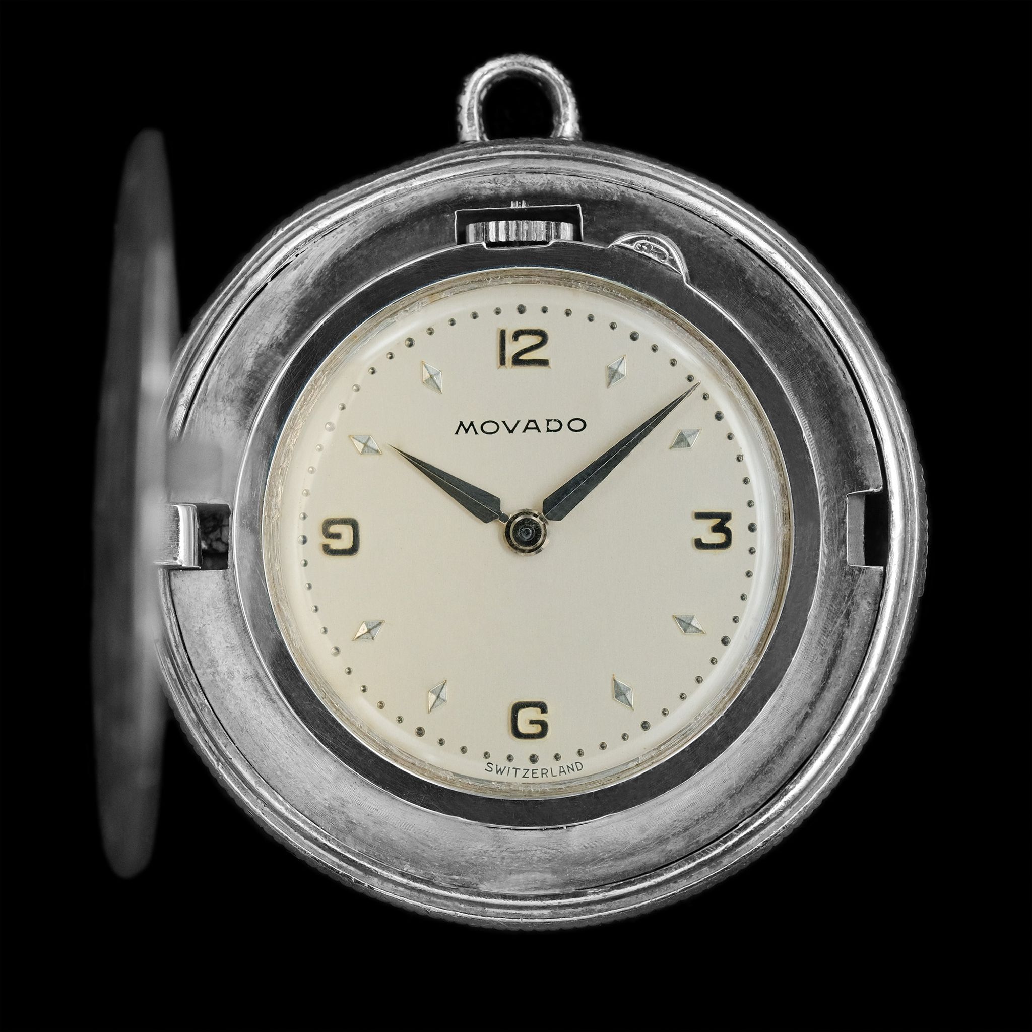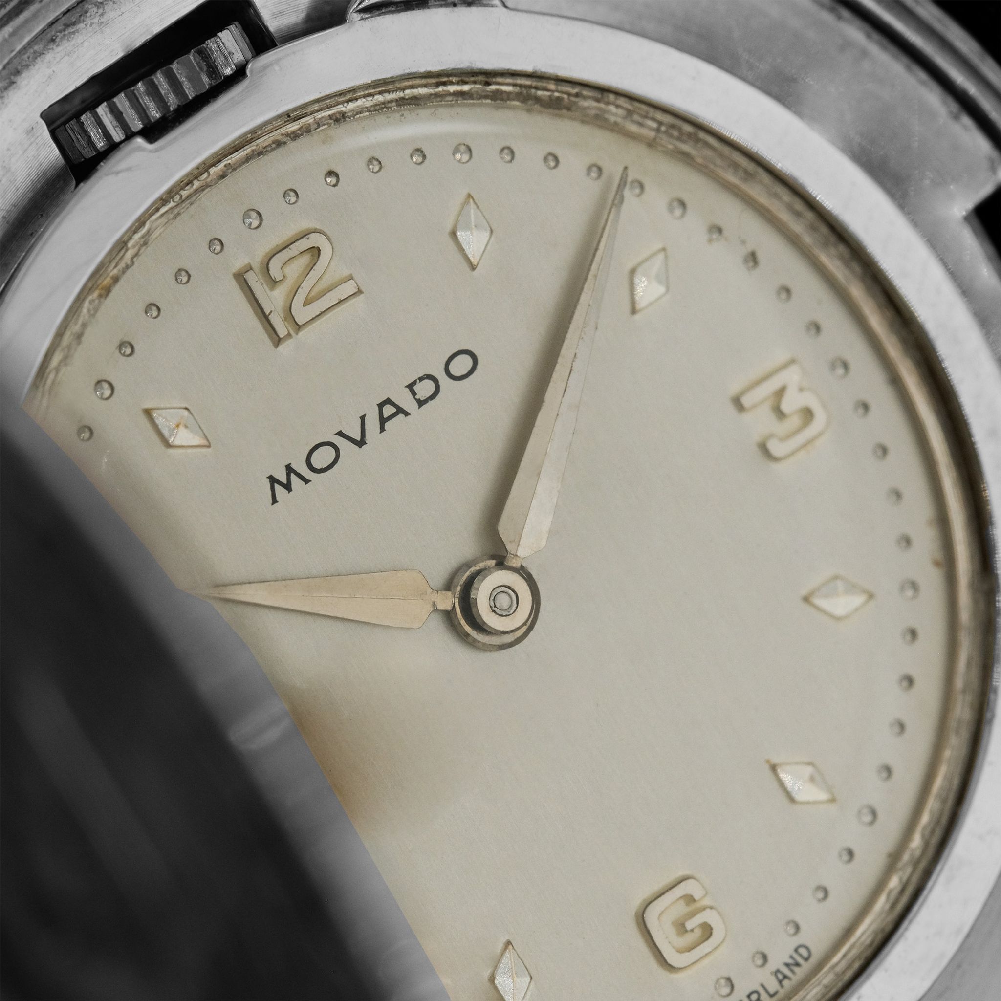 The dial, likely made by Fabrique de Cadran Stern Frères, has drilled minute markers and applied numerals at 3, 6, 9, and 12.