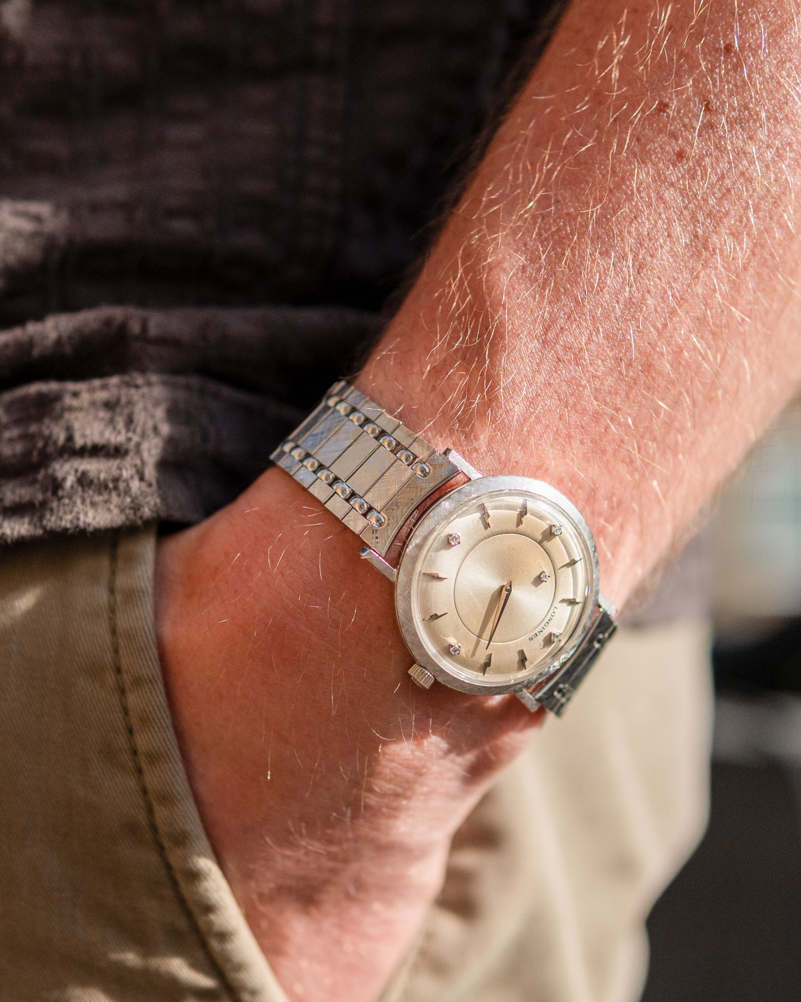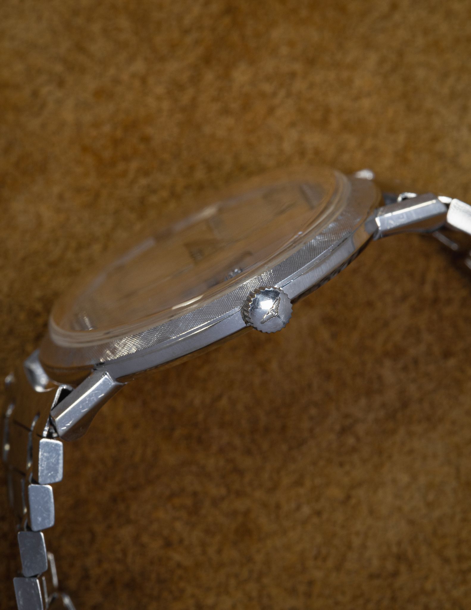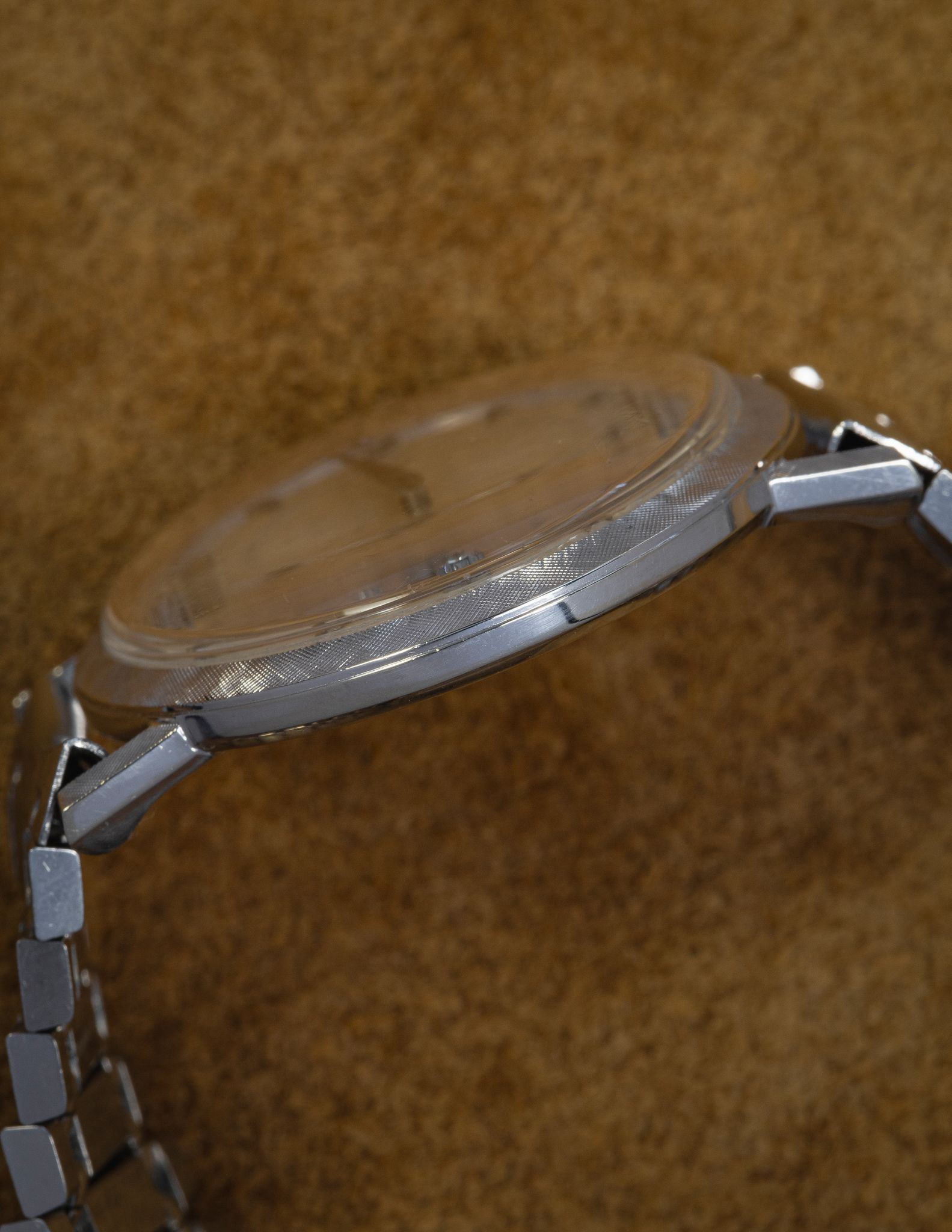 The bracelet is New Old Stock made by Keisler and made of steel. This was added to the watch and can be sold without if so desired.