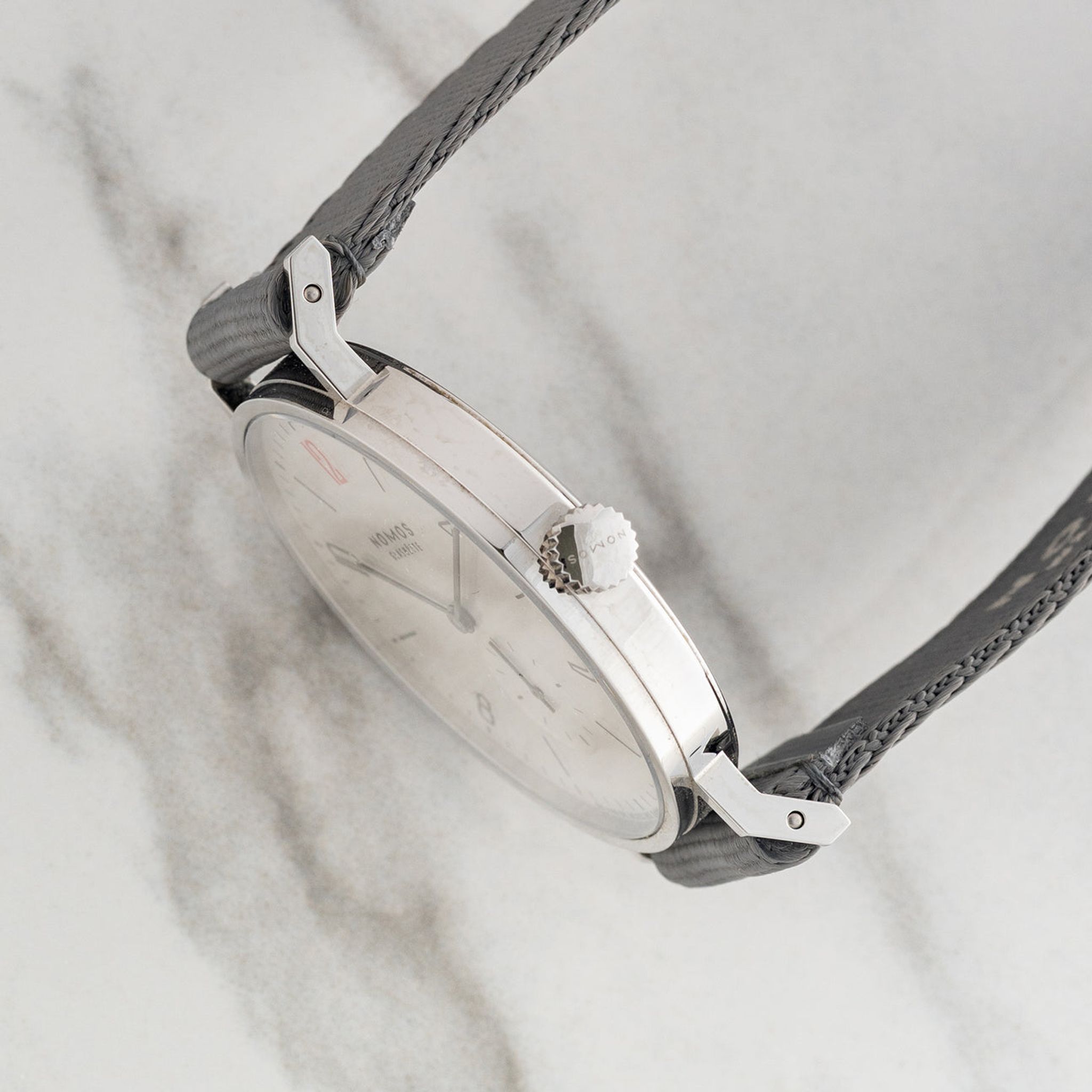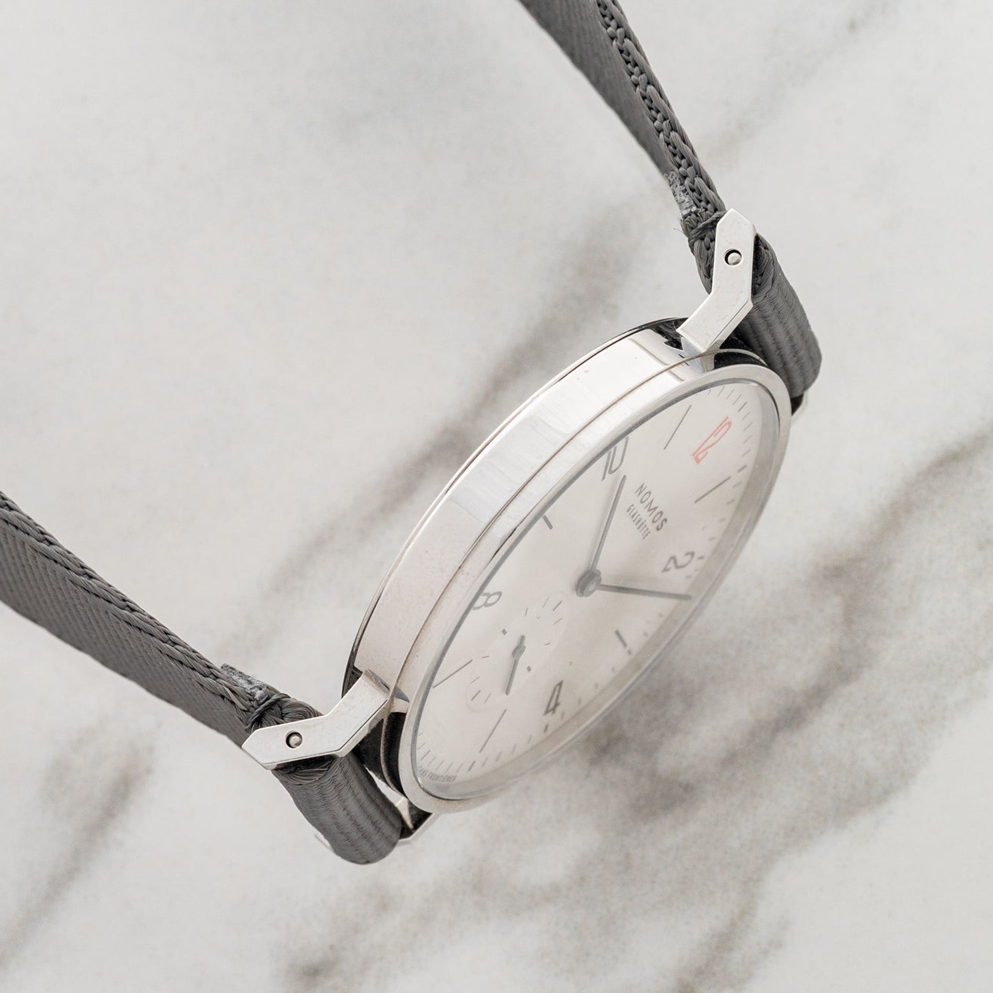The Nomos Tangente 38 Doctors Without Borders 50th Anniversary edition is a special timepiece created to honor half a century of humanitarian work by Médecins Sans Frontières. Limited in production, this version of the iconic Tangente features subtle yet meaningful design touches, including a red "12" on the dial—a signature nod to emergency medical aid. The clean Bauhaus aesthetic remains intact, with a 38mm stainless steel case and the reliable manually wound Alpha caliber inside. Understated, yet purposeful, this edition not only reflects Nomo's minimalist design ethos but also supports a vital global cause, with a portion of proceeds aiding medical relief efforts worldwide.