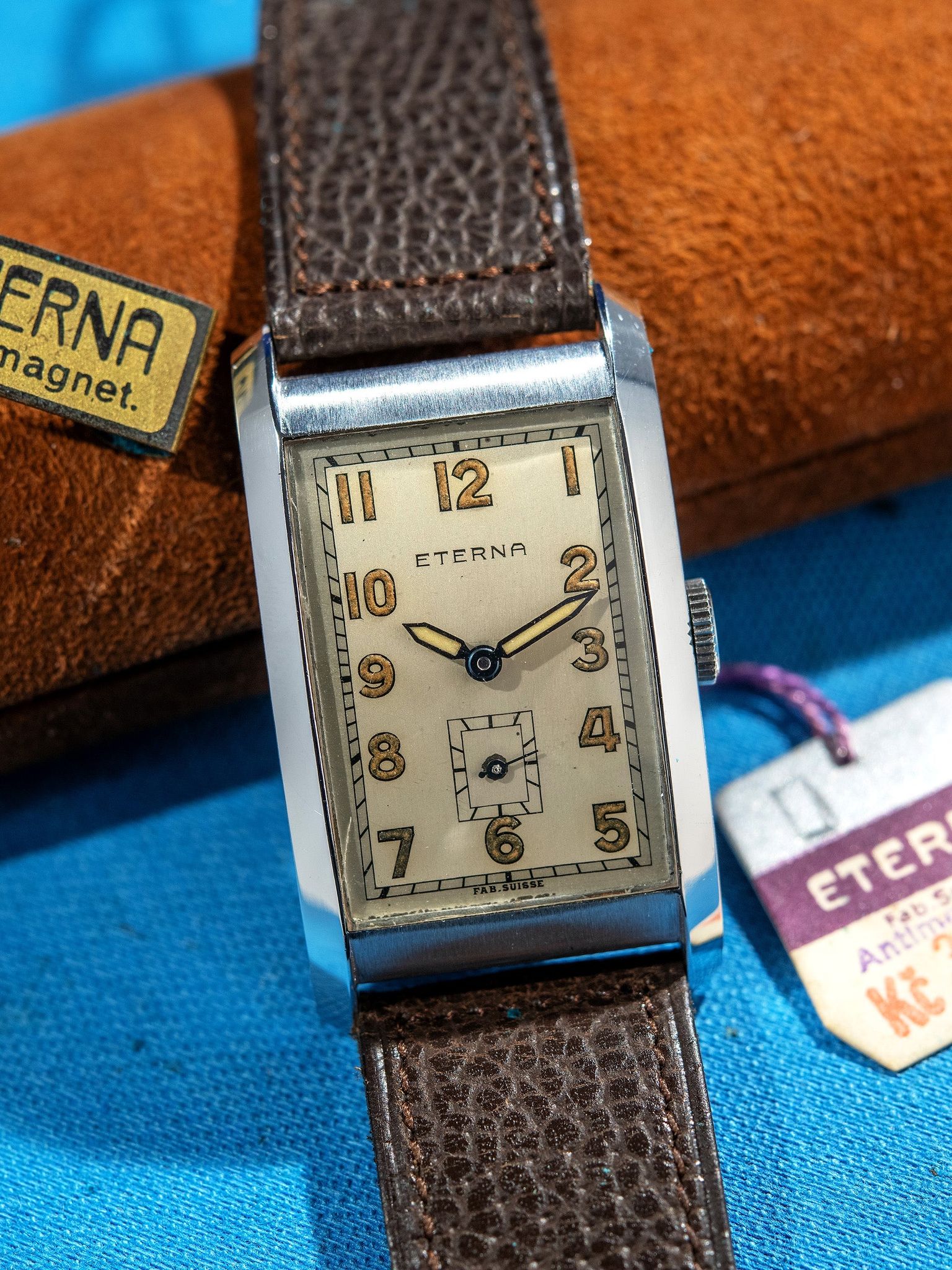 The Eterna brand has put out some truly incredible pieces over the years, most of which fall under the sports-driven tool watch category. But this one is 100% classic dress watch, featuring a design that calls to mind pieces like the JLC Reverso and Cartier Tank Cintree with its handsome, elongated rectangular case. It would look amazing under a cuff on a fancy night out but no matter how you decide to wear it, this is as timeless and stylish as they come—and considering it's in NOS condition with its original box and ephemera, it really is the total package.