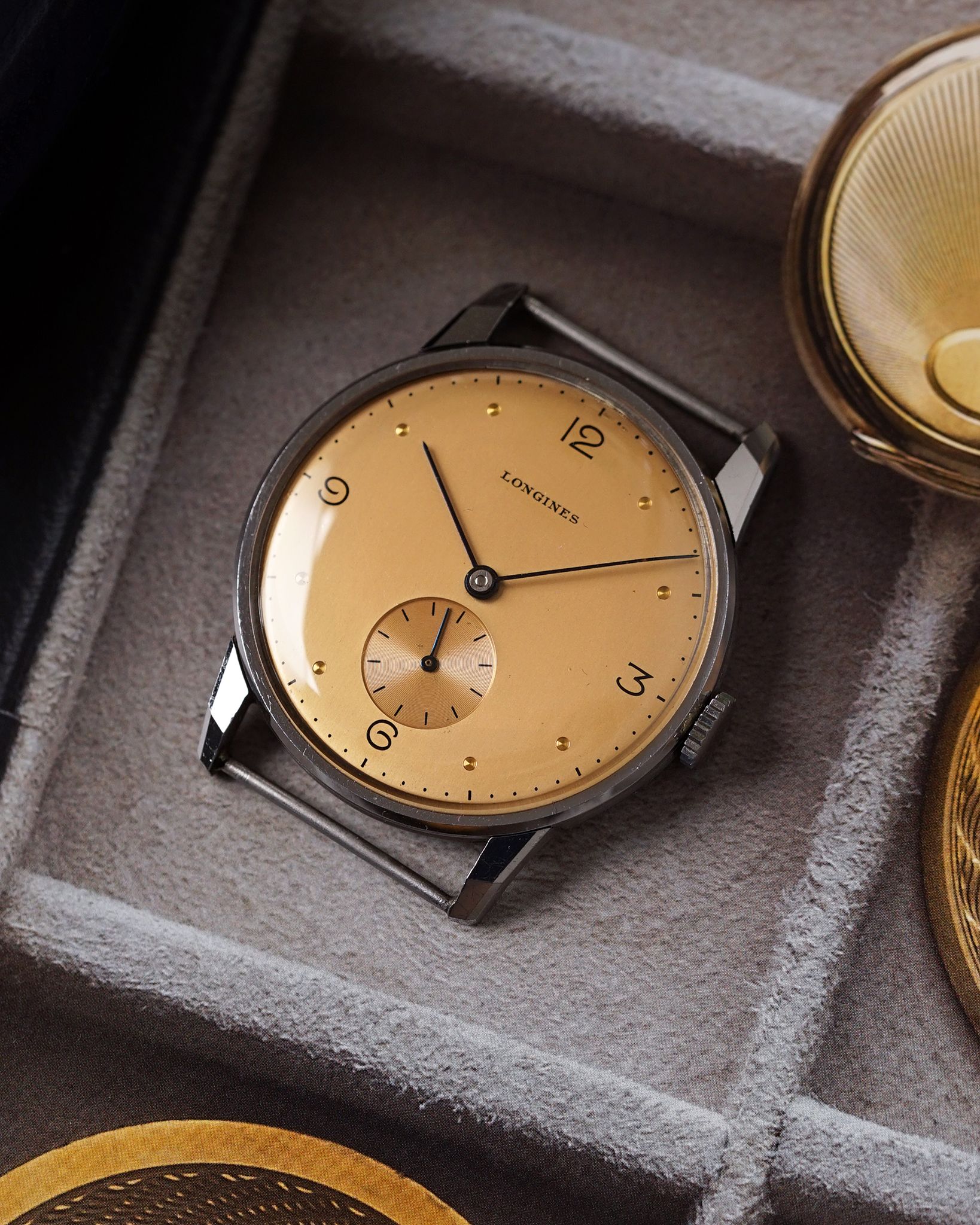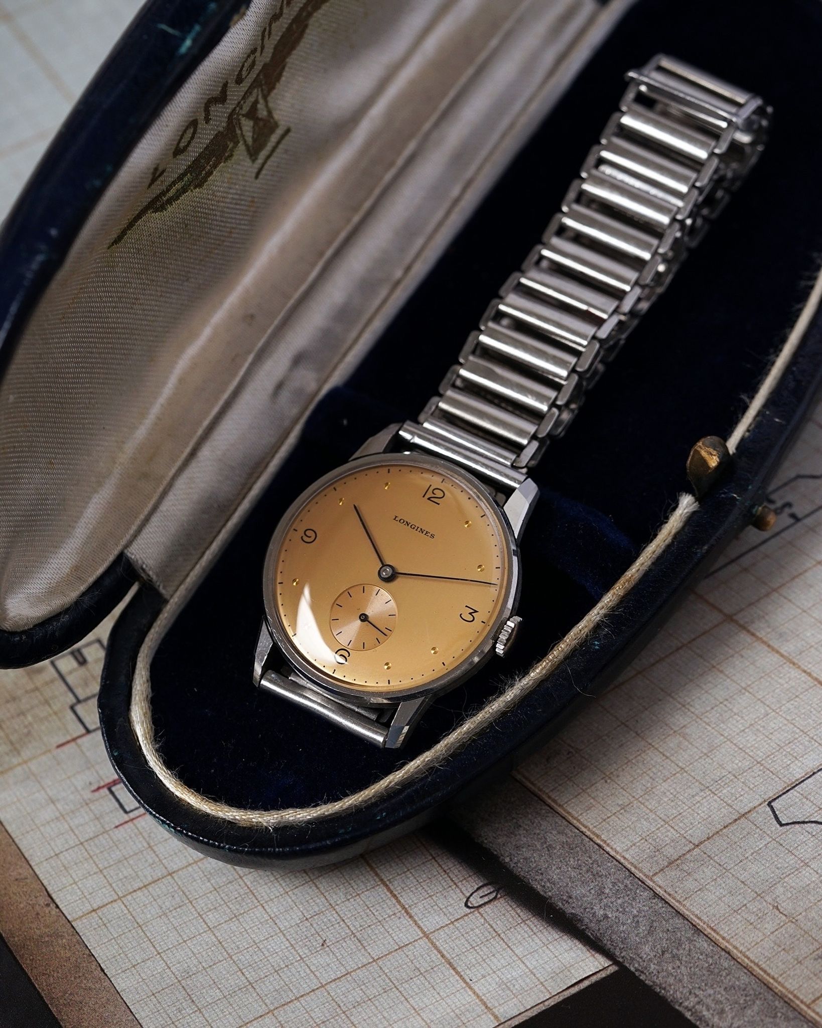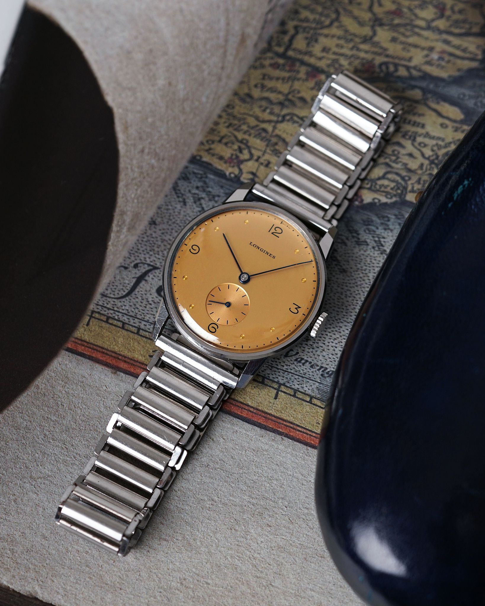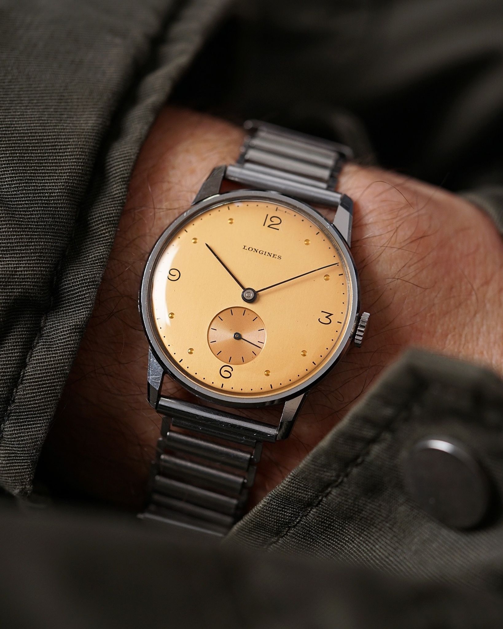 This Longines isn’t just rare, it’s captivating. The New Old Stock condition alone is remarkable, but it’s the warm, salmon-peach-toned dial that steals the show. Luminous and untouched, it’s the kind of dial that stops your heart for a second and keeps you looking.