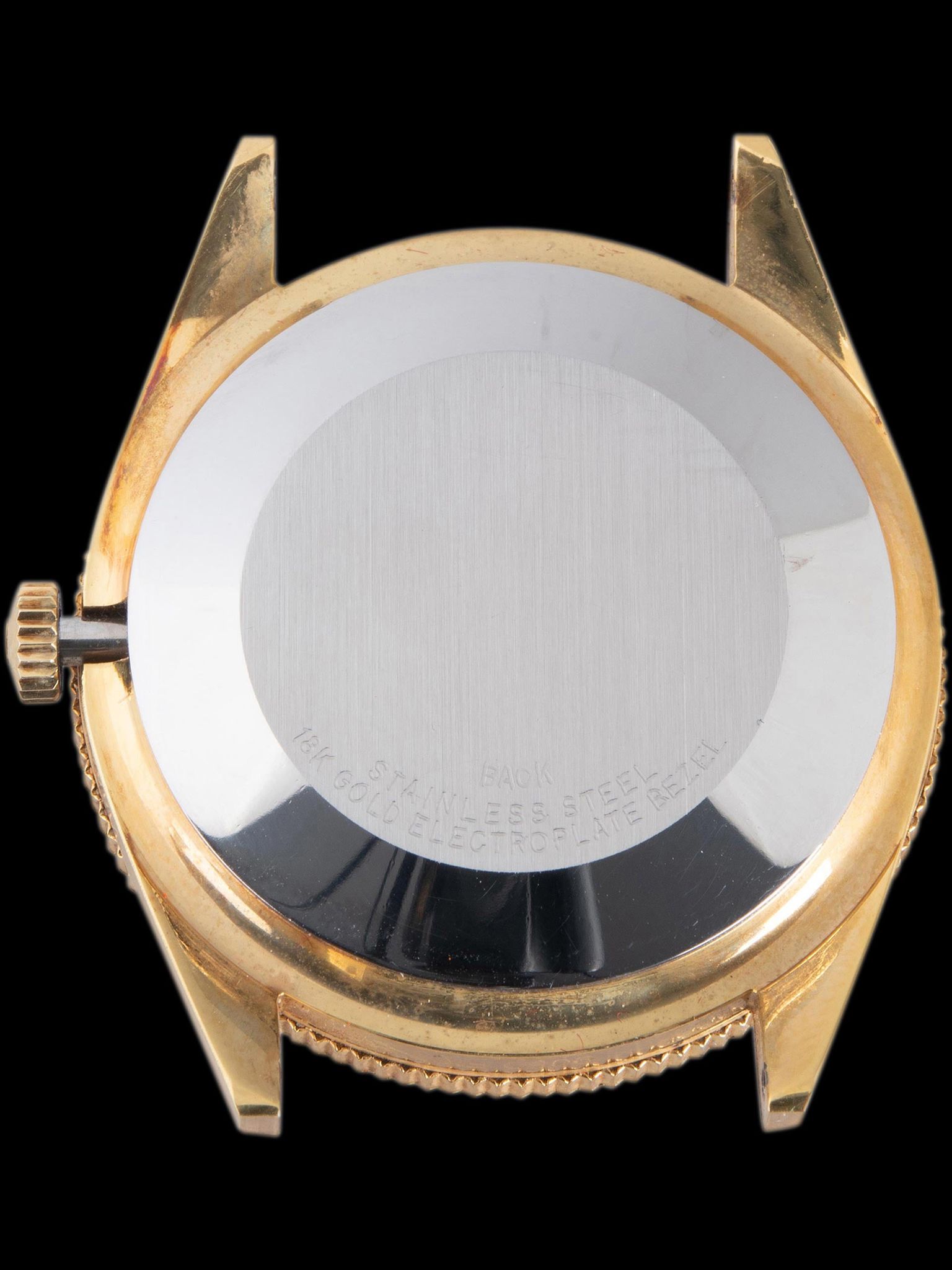 The original dial is beautifully preserved and in great condition, with no scratches or damage present. The chapter ring features the one-letter abbreviation for every day of the week, with Sundays denoted in red, to coincide with the calendar bezel. The original gold baton hands and hour indices are in excellent condition, with completely intact lume when inspected under UV light. The tritium lume plots around the dial also exhibit no degradation under UV light inspection.