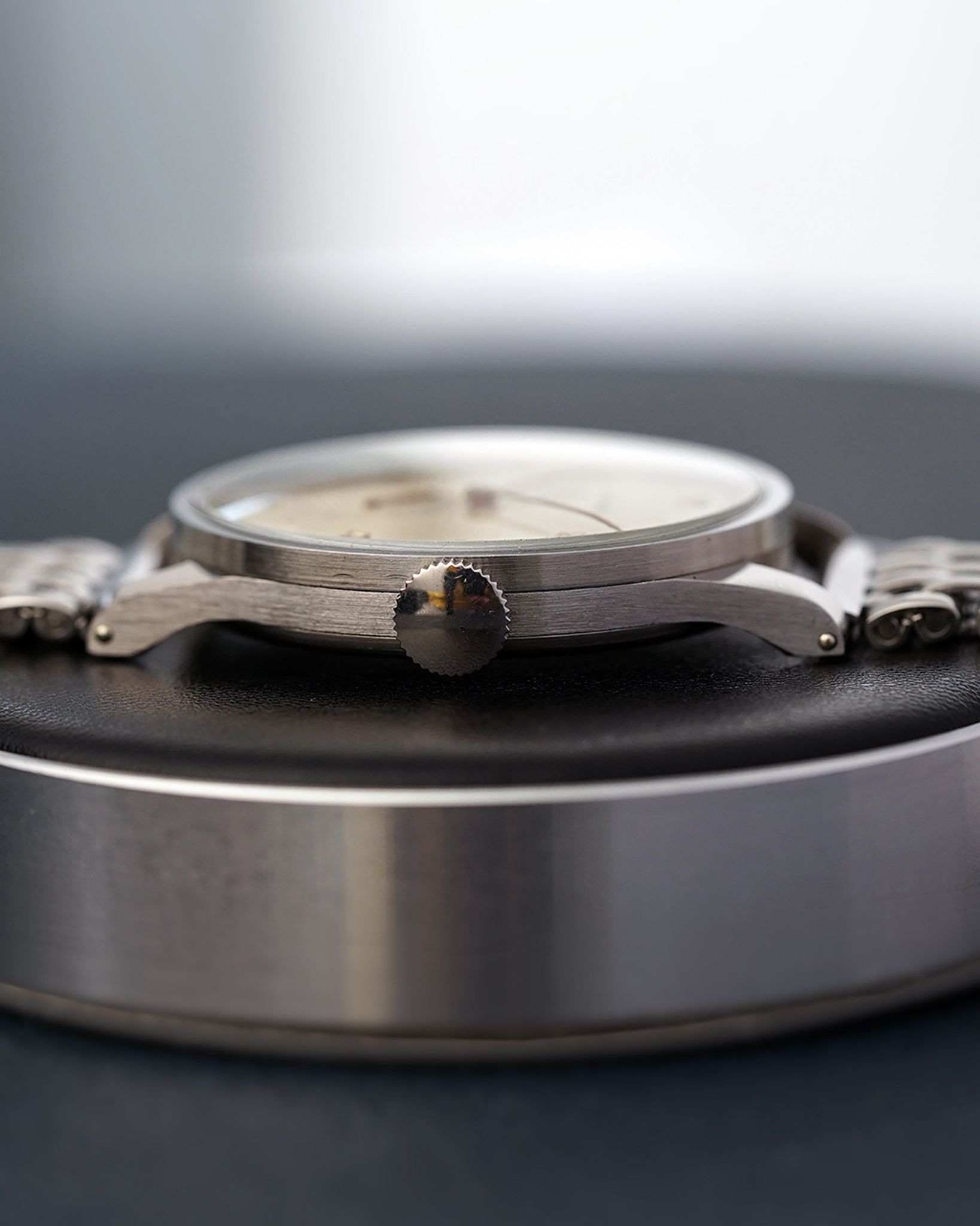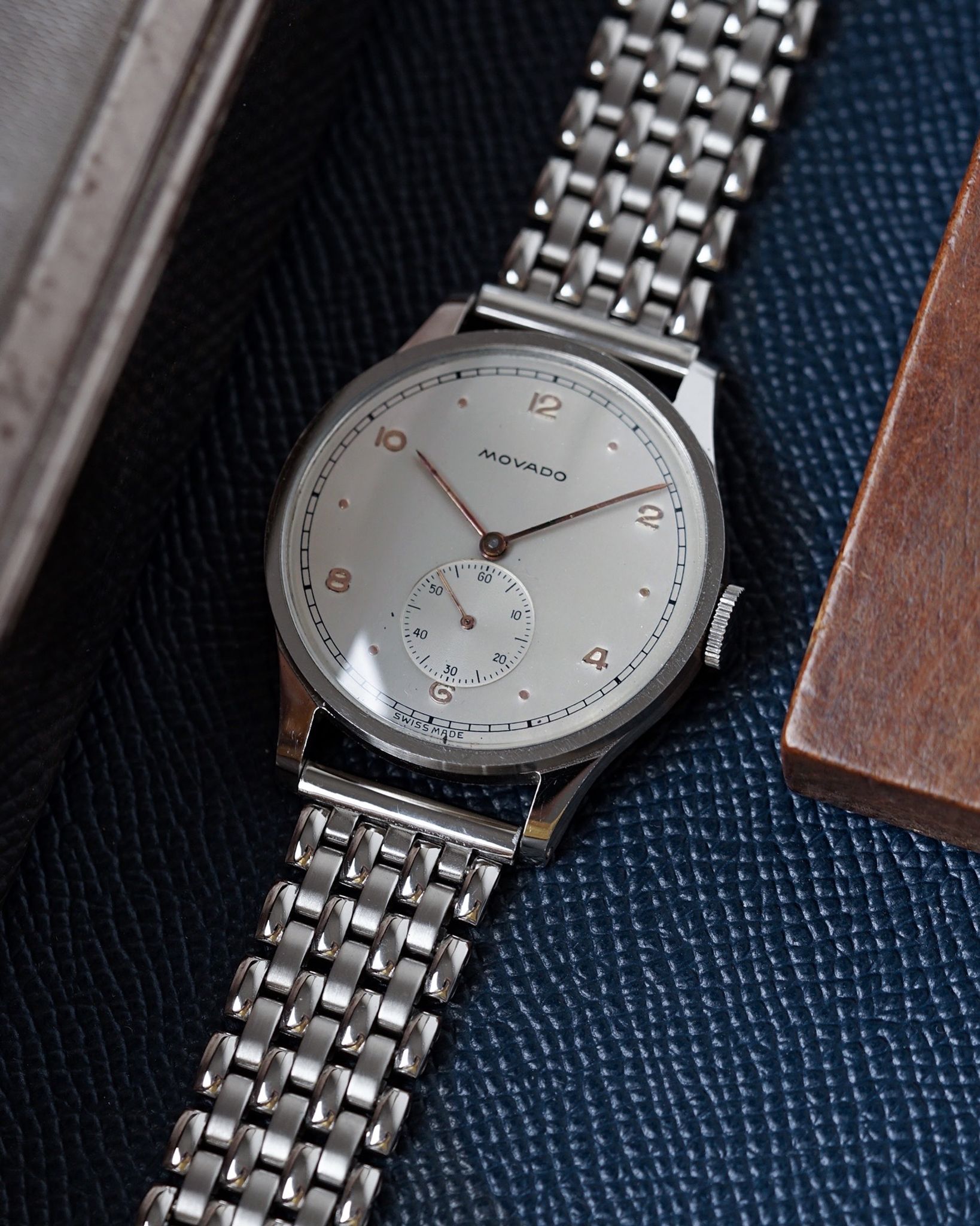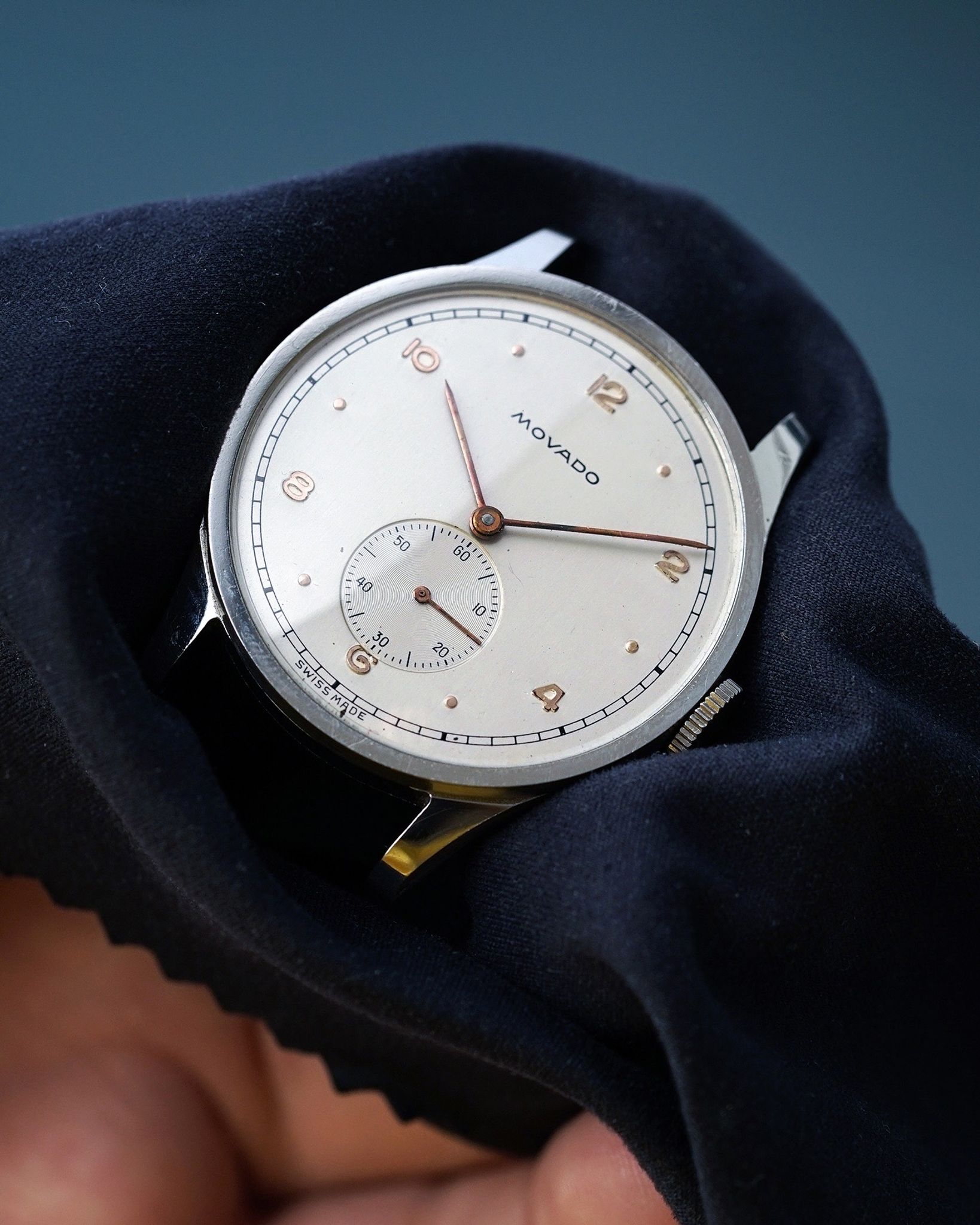 This Movado may well represent the pinnacle of Calatrava-style design from the brand, thanks to its remarkable preservation and exceptional rarity. Finding Movado watches in NOS or unworn condition is exceedingly rare, but discovering one in full steel, with a dial layout reminiscent of the legendary Patek Philippe 570, is a truly extraordinary event.