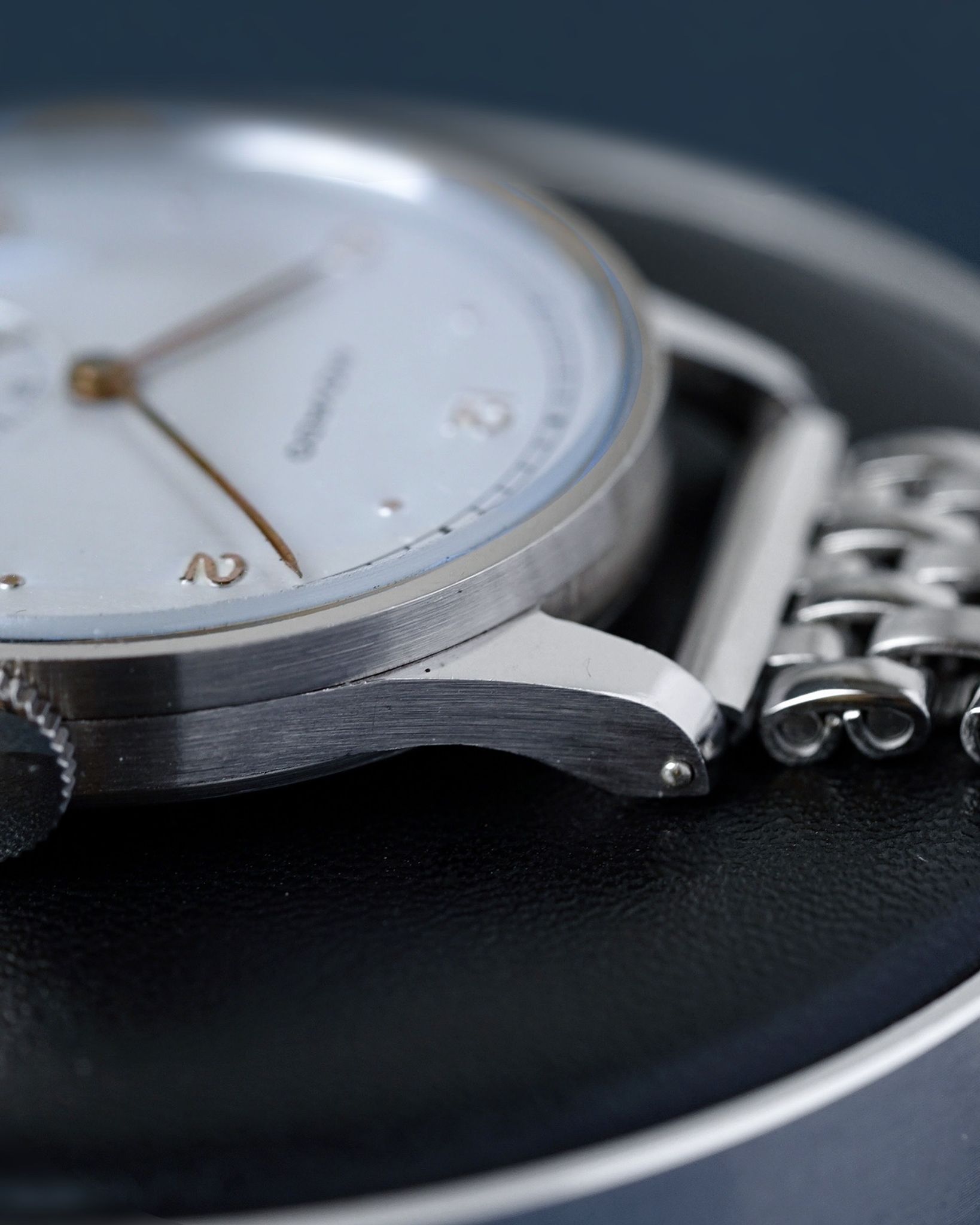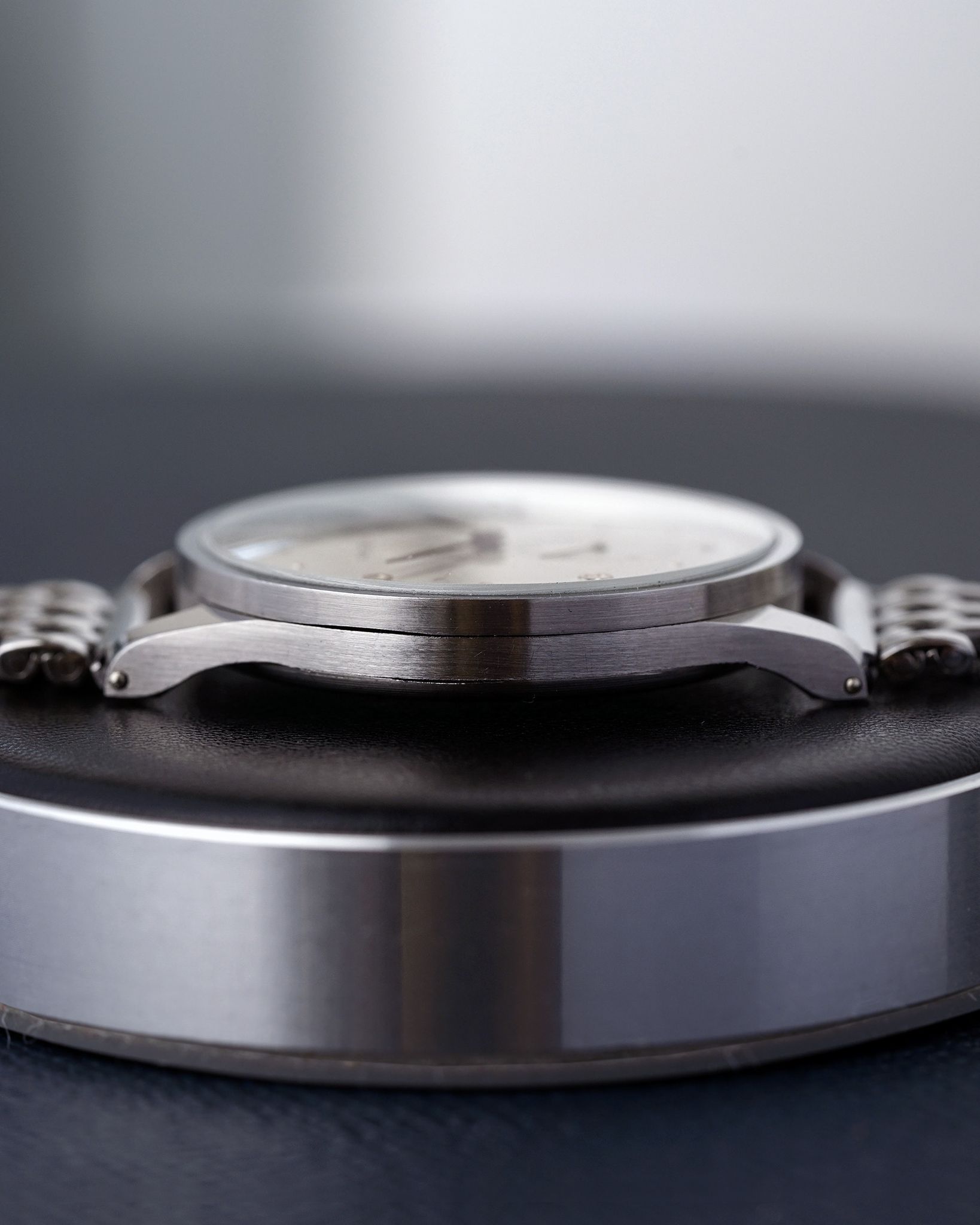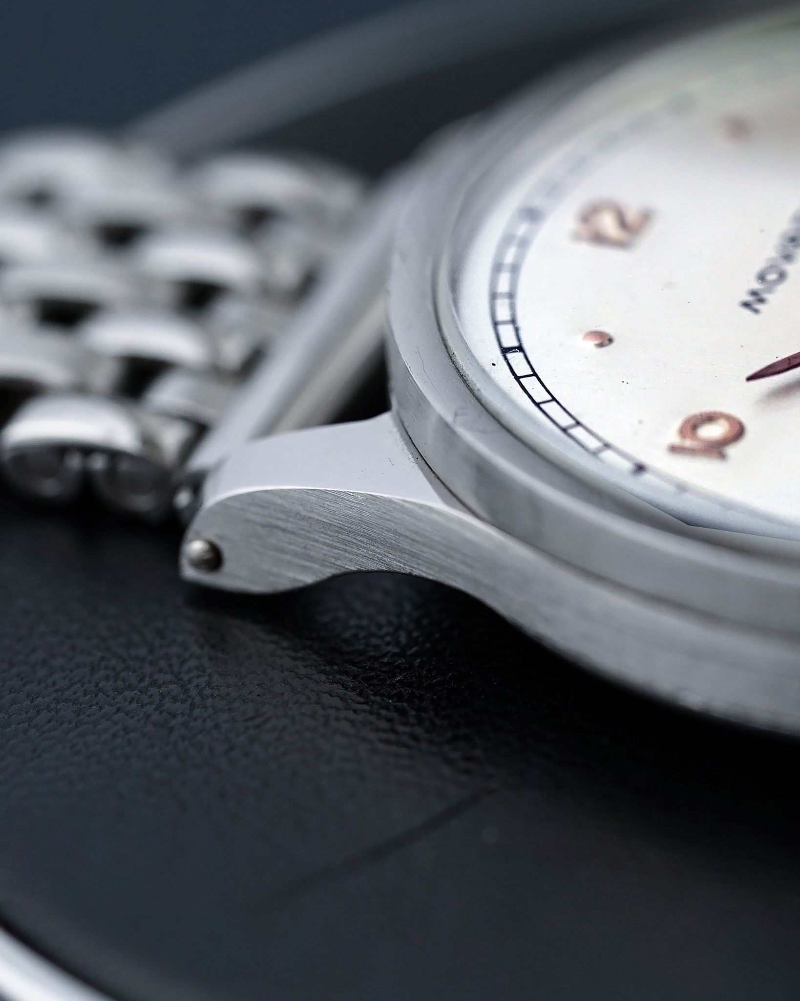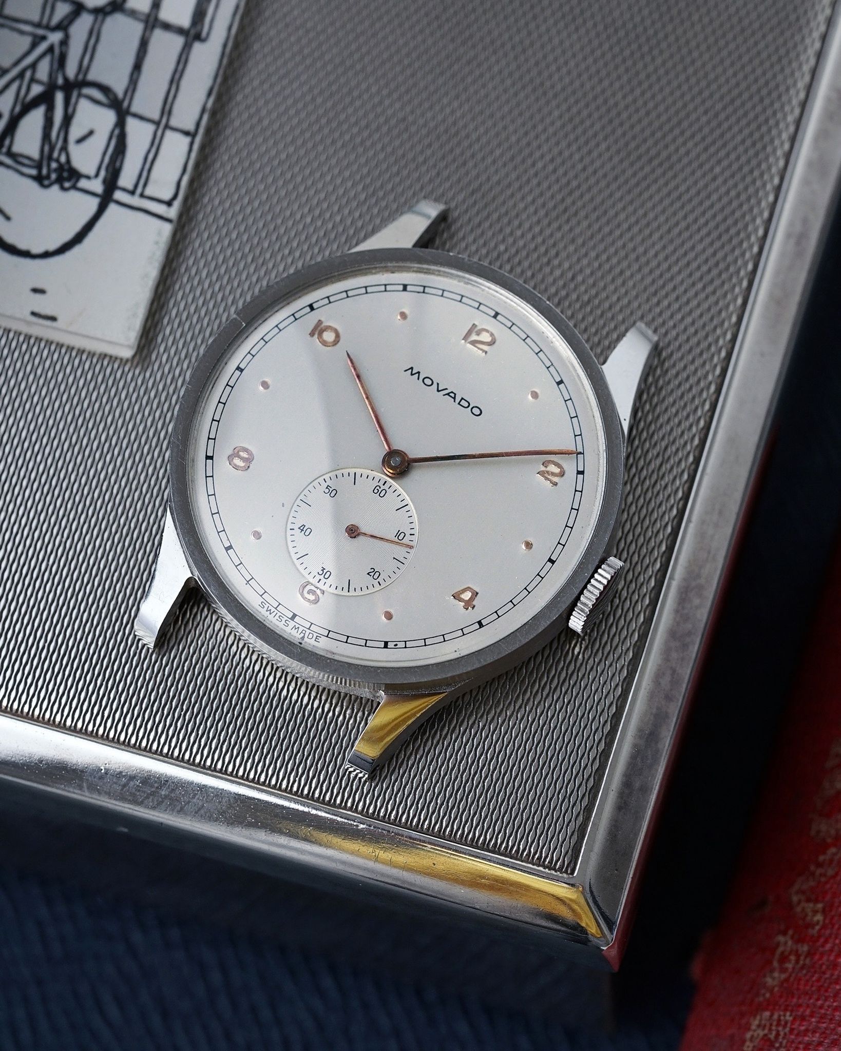 This Movado may well represent the pinnacle of Calatrava-style design from the brand, thanks to its remarkable preservation and exceptional rarity. Finding Movado watches in NOS or unworn condition is exceedingly rare, but discovering one in full steel, with a dial layout reminiscent of the legendary Patek Philippe 570, is a truly extraordinary event.