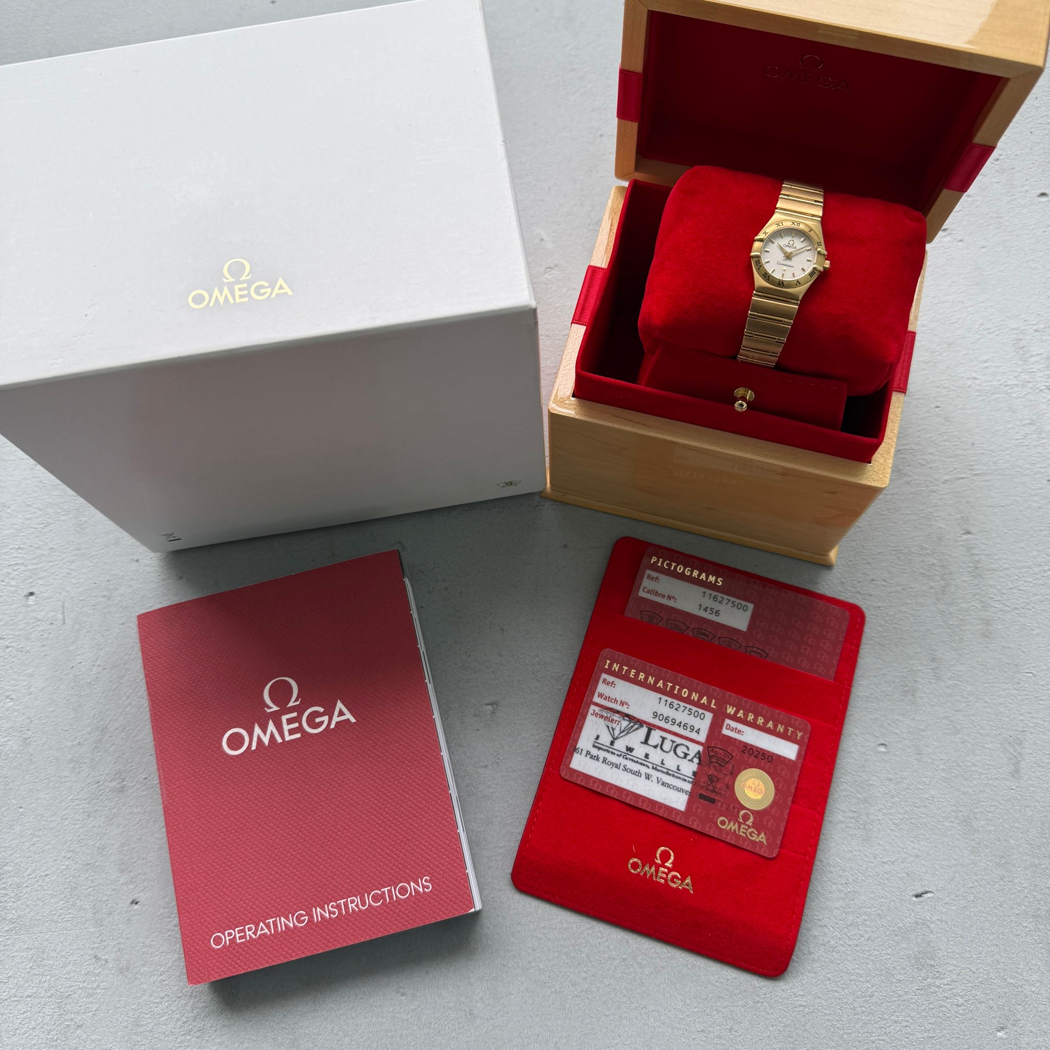 Elevate your style with the luxurious ladies' solid gold Omega Constellation wristwatch, reference 11627500, a timepiece that embodies sophistication and timeless elegance. This stunning watch features a textured white dial, offering a delicate yet distinctive touch that complements its opulent gold construction. With a hefty underlying gold weight, this Omega not only enhances your wardrobe but also represents significant intrinsic value, making it both a statement of refinement and a wise investment.