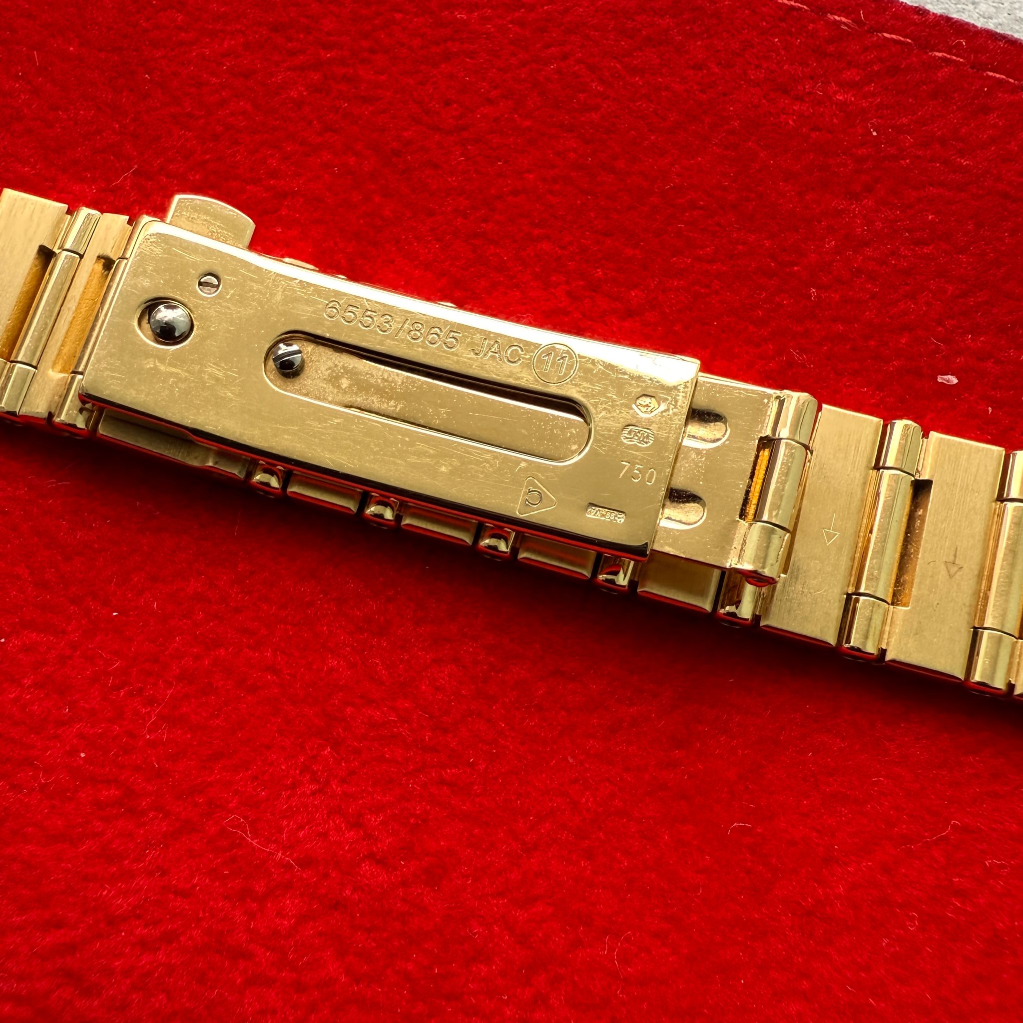 Case: 22.5 mm 18 karat solid yellow gold case is in stunning condition including nice sharp case and bracelet.