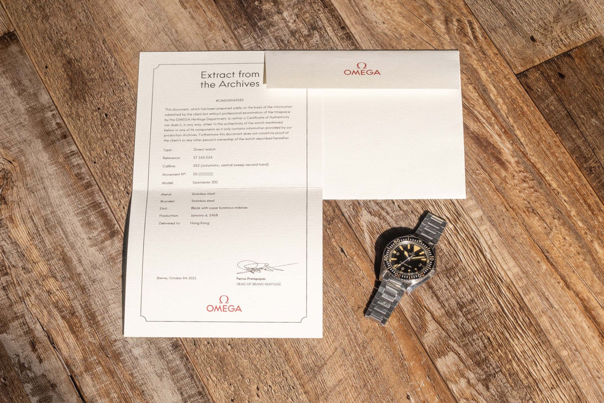Omega - Omega Seamaster 300 - 165.024 "Big Triangle/Sword Hands" Archive Papers
