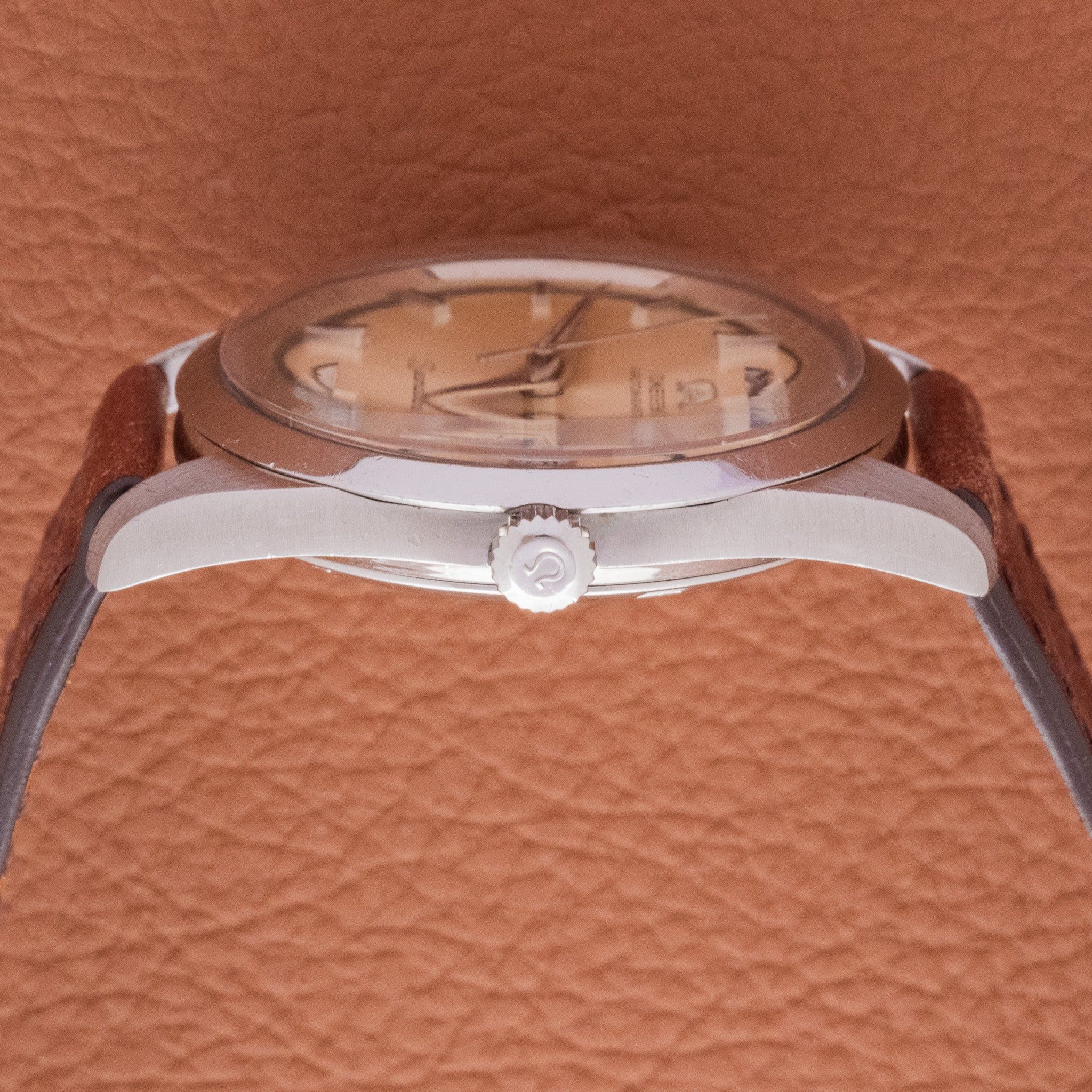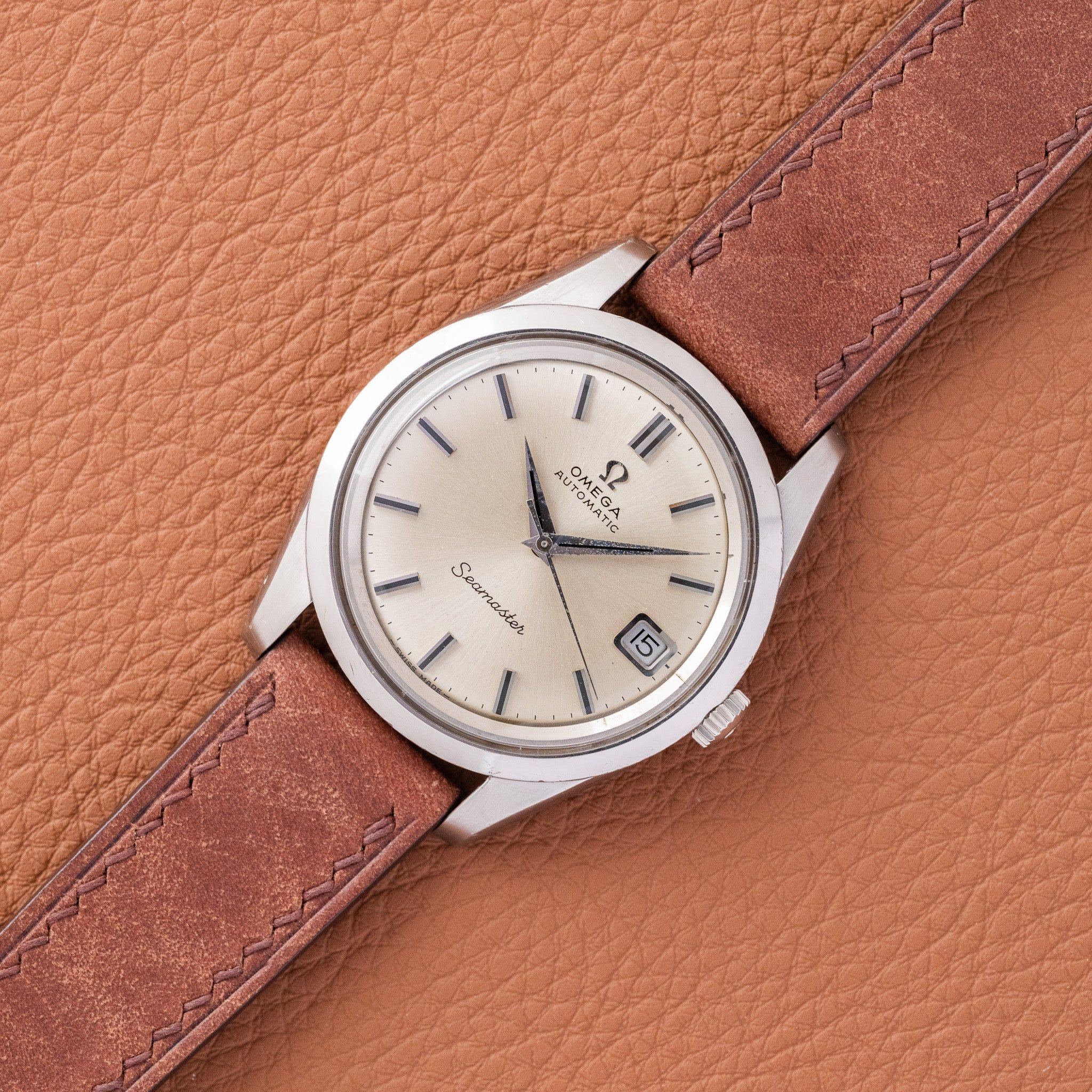 This particular reference, the 166.010, highlights Omega’s refined side of the Seamaster family. With its clean silver-toned sunburst dial, uncommon no-lume execution, and sharp dauphine hands, it stands apart from tool-focused dive watches and instead embodies classic mid-century elegance.