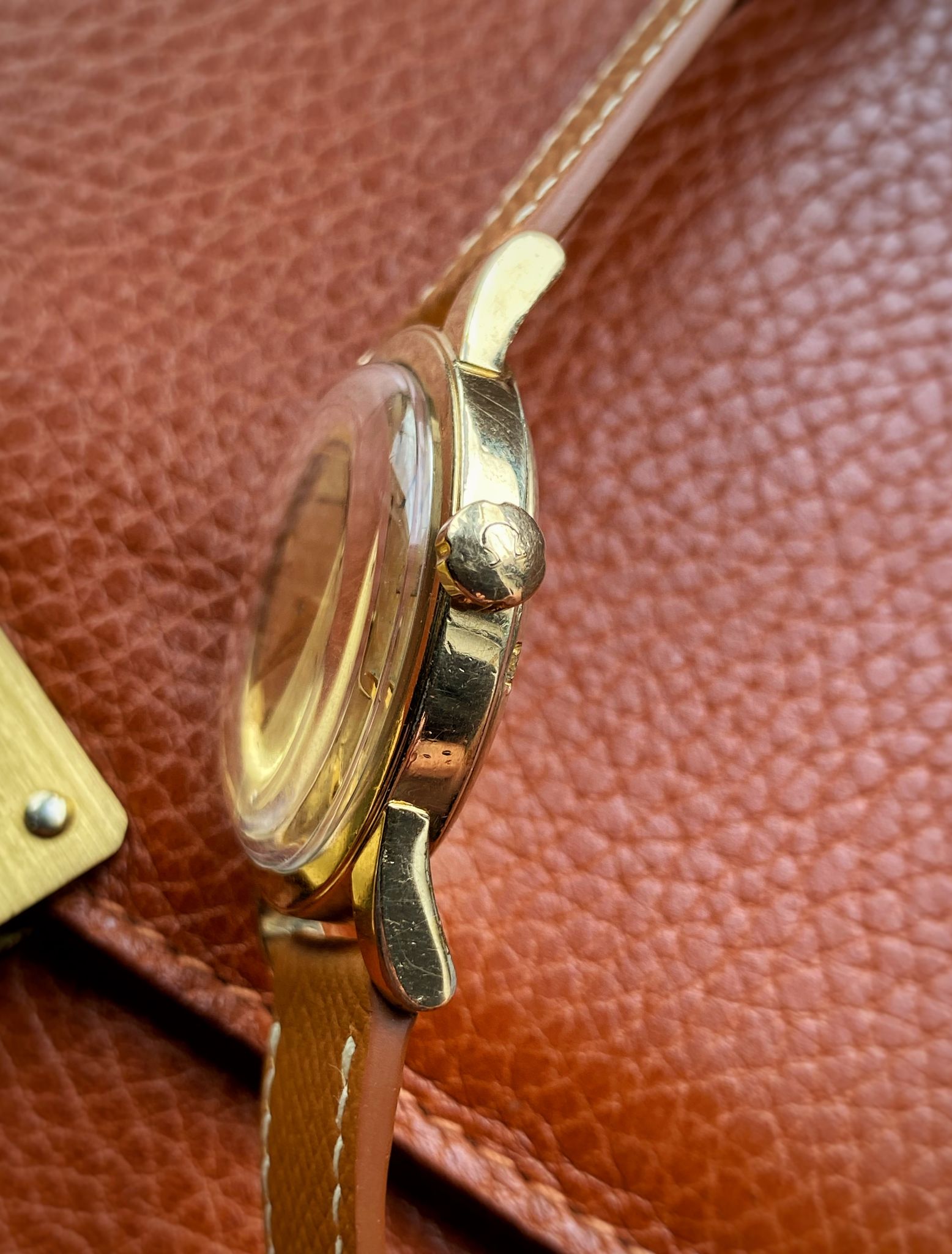 Note: Bigger wrist presence with flat bezel, warm even patina on dial, arrowhead hardware markers, fully serviced.