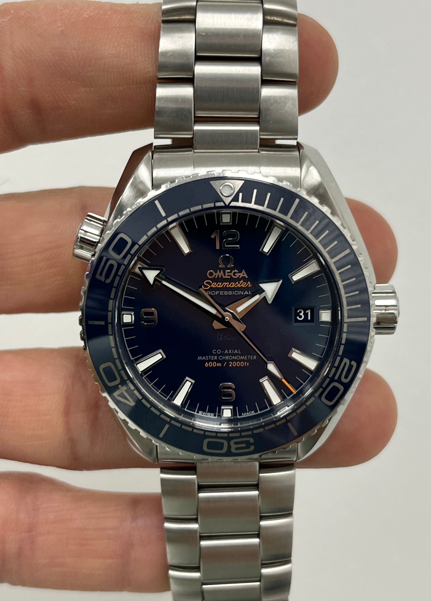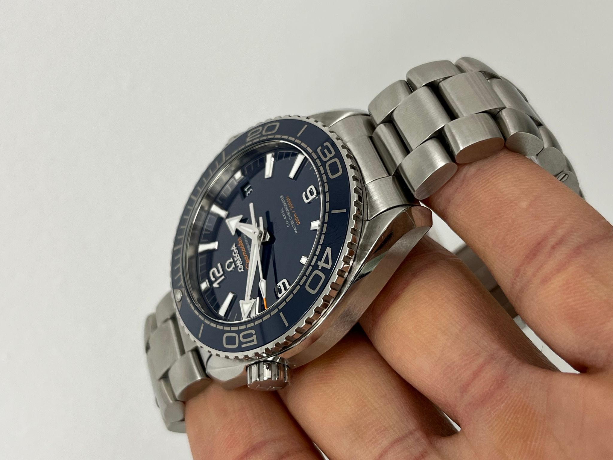 Crafted with OMEGA’s rich maritime heritage in mind, the Seamaster Planet Ocean 600M Master Chronometer is a perfect blend of style and performance. This exceptional dive watch features a 43.5mm stainless steel case with a scratch-resistant sapphire crystal, showcasing a striking blue ceramic dial with bold Arabic numerals and a date window at 3 o’clock. Complementing the dial, the blue ceramic unidirectional bezel with OMEGA’s Liquidmetal™ diving scale enhances both function and aesthetics. Designed for serious underwater exploration, it boasts an impressive 600-meter (2000 feet) water resistance, a helium escape valve, and an alveol screw-in caseback. The stainless steel bracelet is equipped with a patented extendable foldover clasp for a secure and comfortable fit. Powering this timepiece is the OMEGA Master Chronometer Calibre 8900, visible through the transparent caseback, having successfully passed METAS’ rigorous certification tests to ensure the highest standards of precision, performance, and magnetic resistance. This example comes watch only.