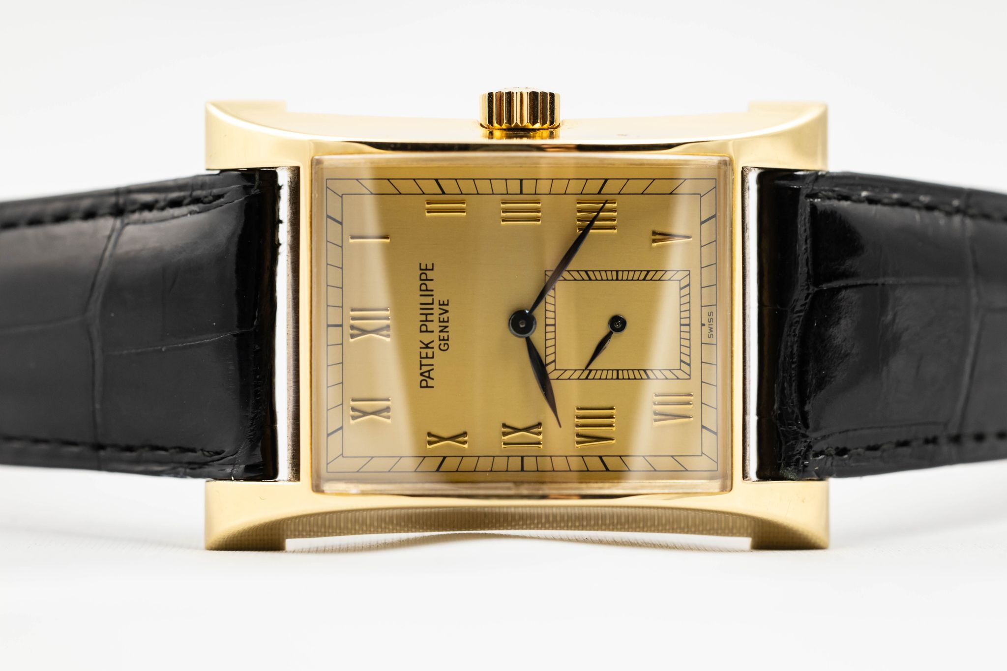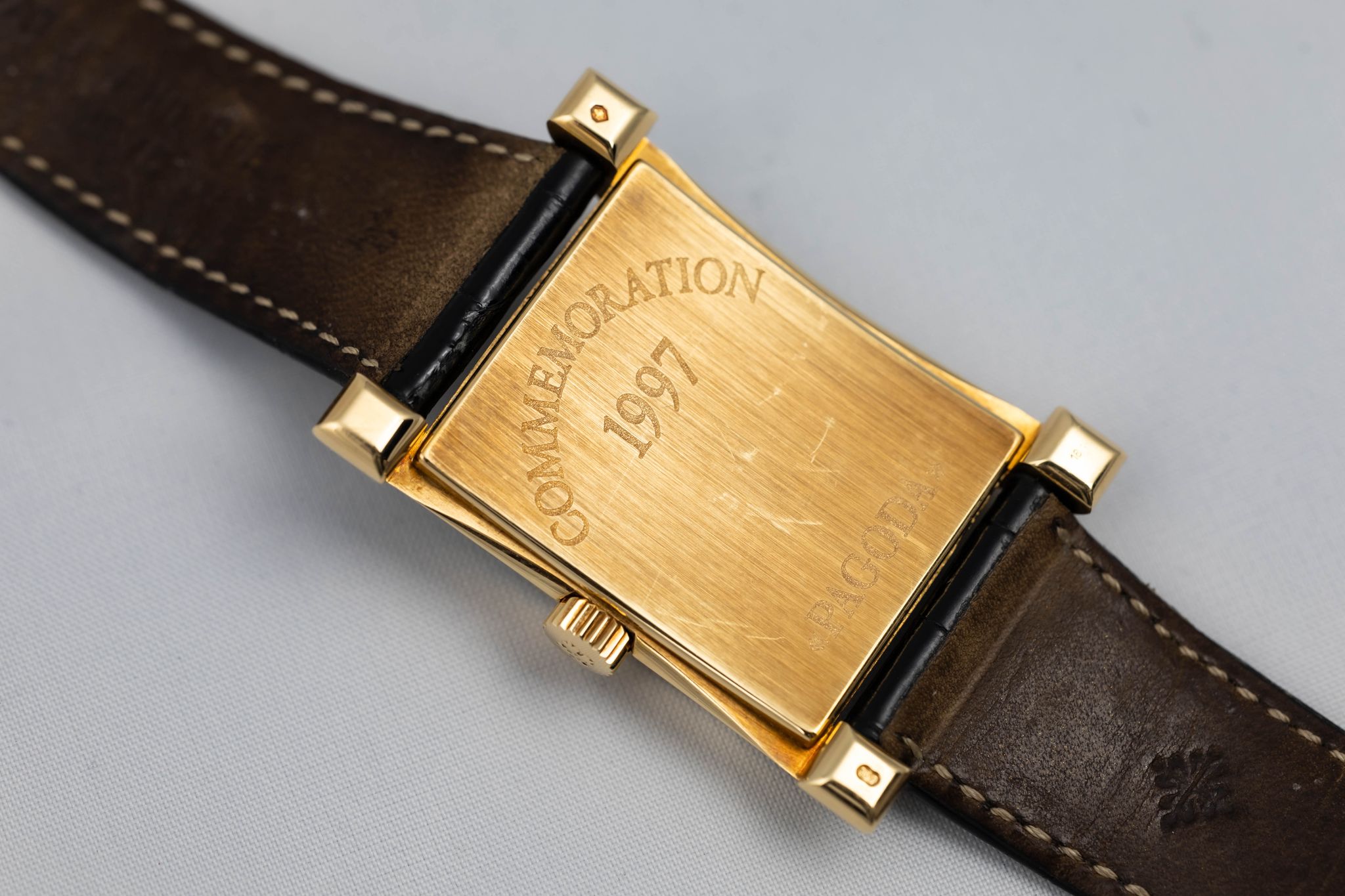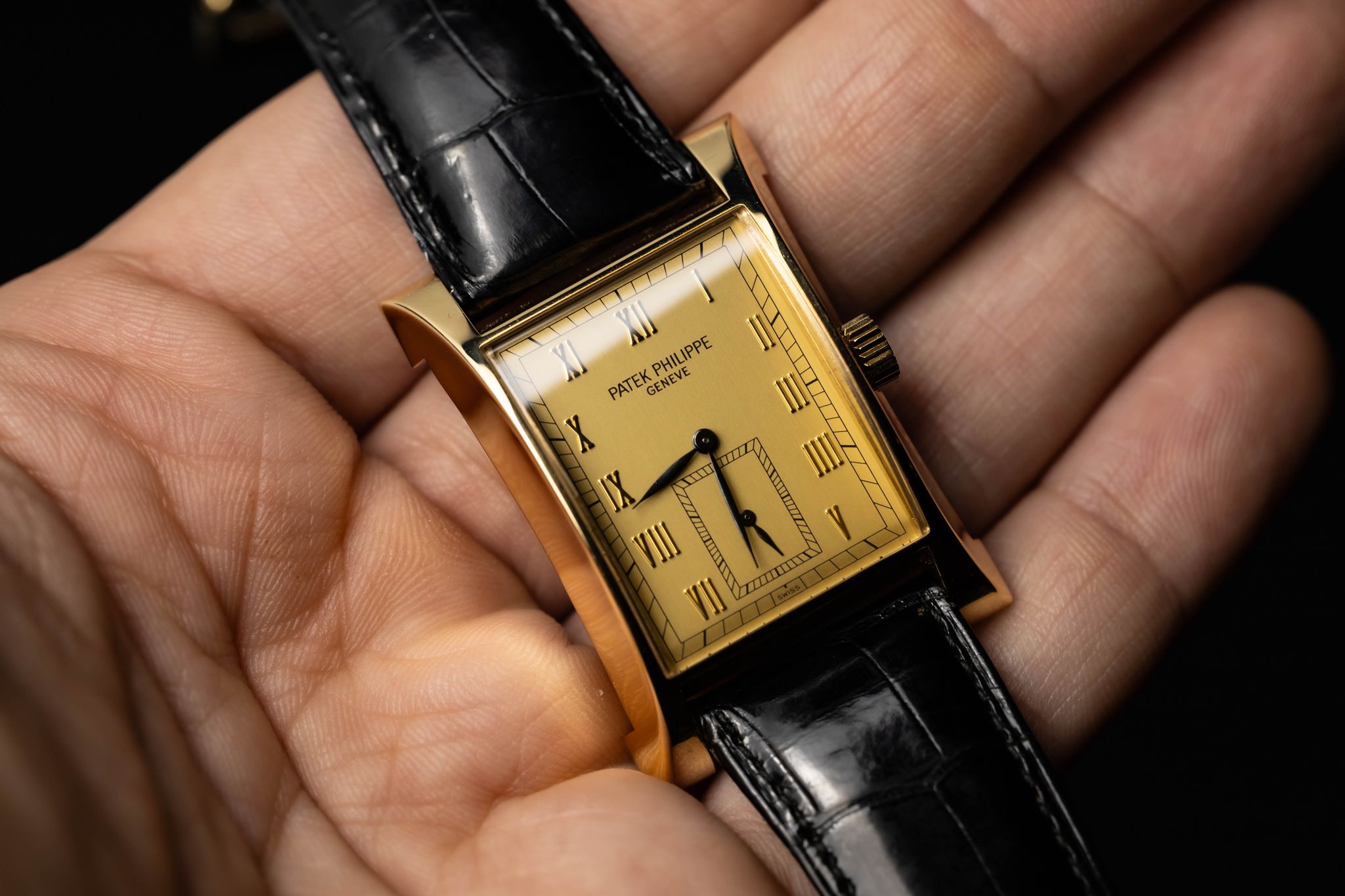 The Patek Philippe Reference 5500 Pagoda was produced in 1997 in a limited run to commemorate the opening of Patek Philippe's new watchmaking center in Geneva, Switzerland. Only 2,000 pieces were made: 1,100 in yellow gold, 500 in pink gold, 250 in white gold, and 150 in platinum. The watch features an elegantly curved rectangular case, inspired by the original 1950s Patek Philippe Reference 2441.