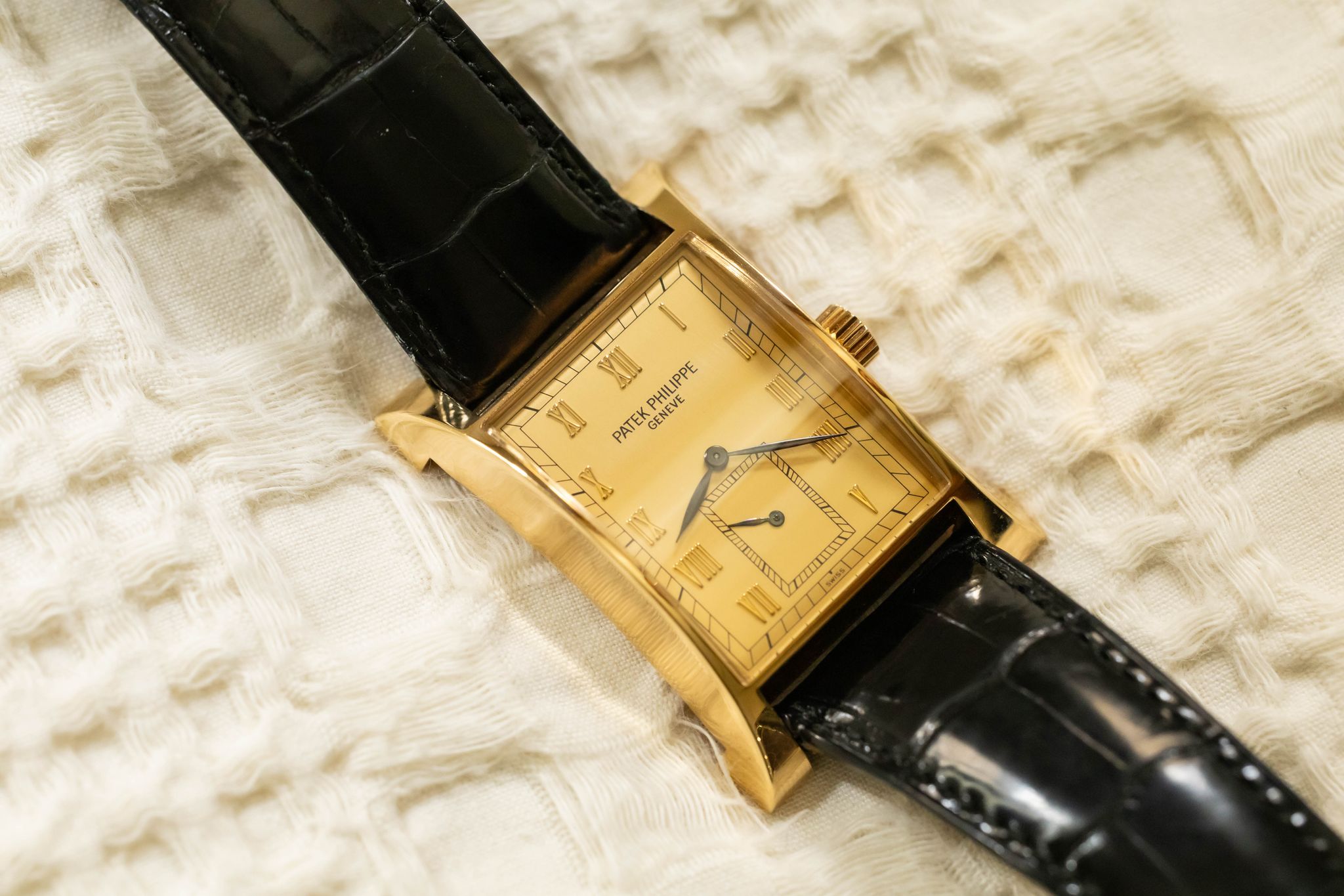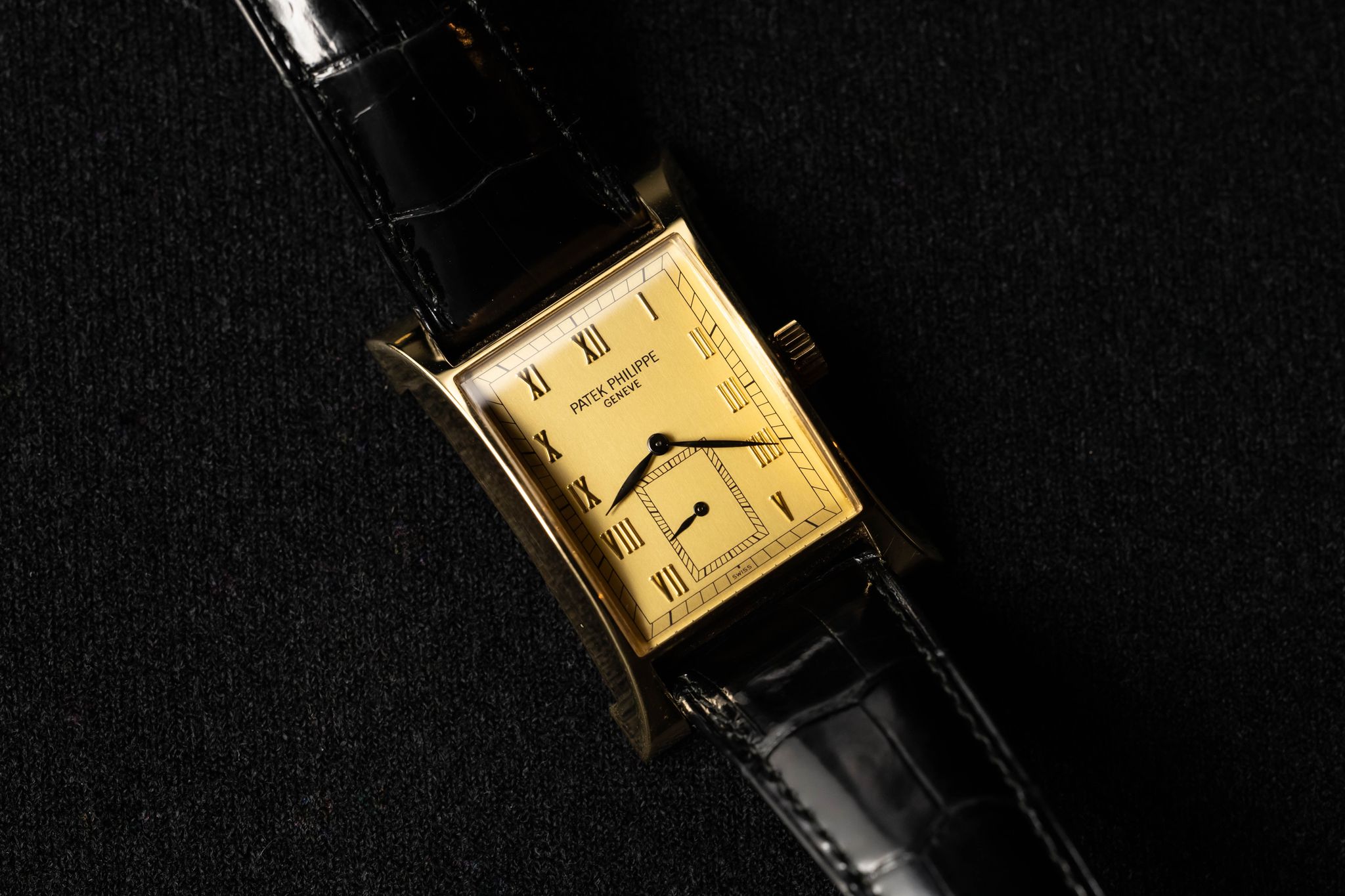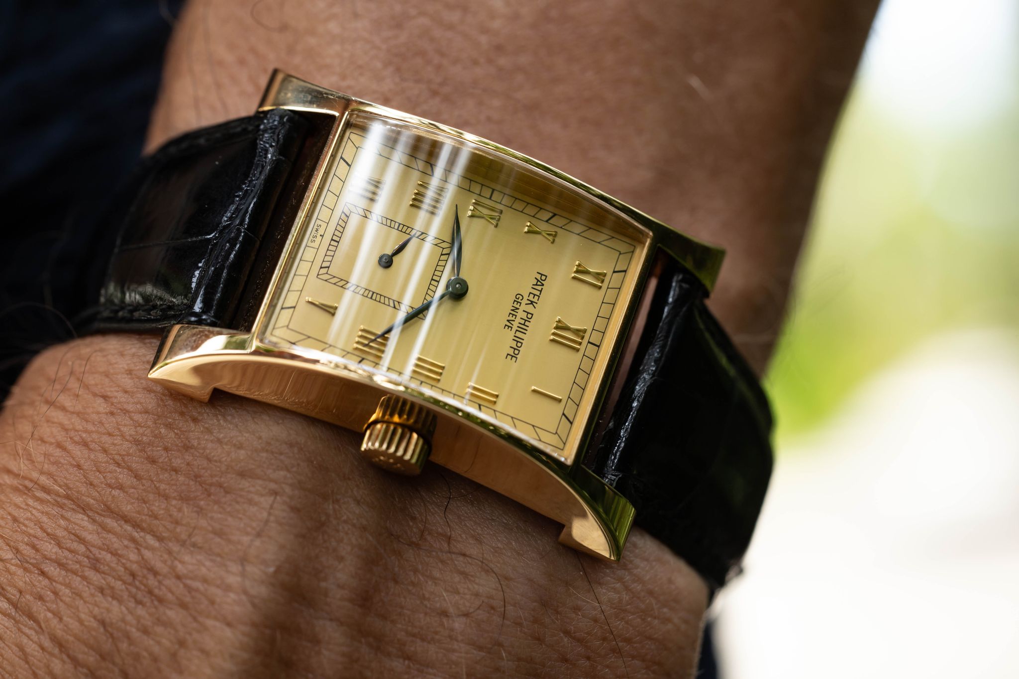 The Patek Philippe Reference 5500 Pagoda was produced in 1997 in a limited run to commemorate the opening of Patek Philippe's new watchmaking center in Geneva, Switzerland. Only 2,000 pieces were made: 1,100 in yellow gold, 500 in pink gold, 250 in white gold, and 150 in platinum. The watch features an elegantly curved rectangular case, inspired by the original 1950s Patek Philippe Reference 2441.