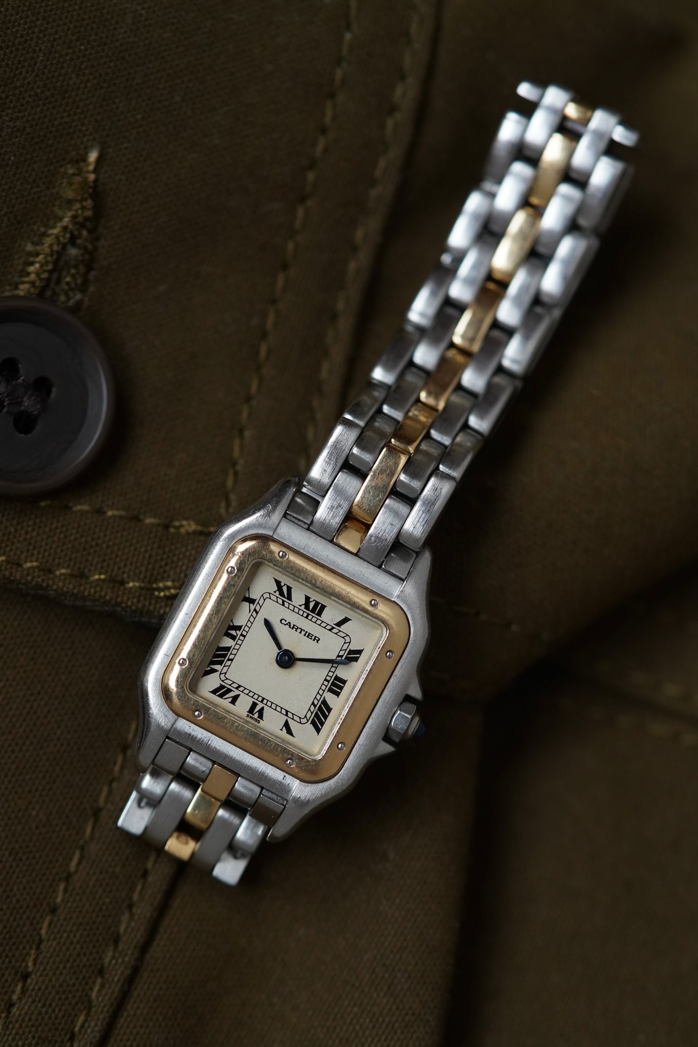 In working and unpolished conditions, the watch features an elegant one row of golden beads with a creamy ivory dial. Live now, only @avocadovintagewatches.
