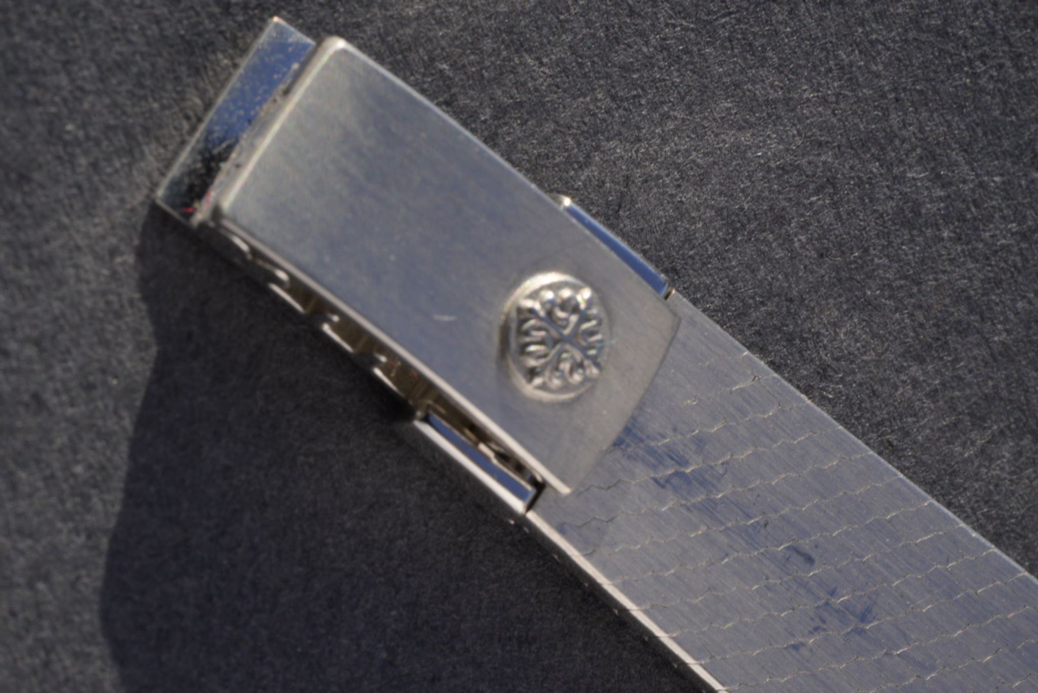 Integrated 18K white gold bracelet with signed clasp, length approximately 16 cm.